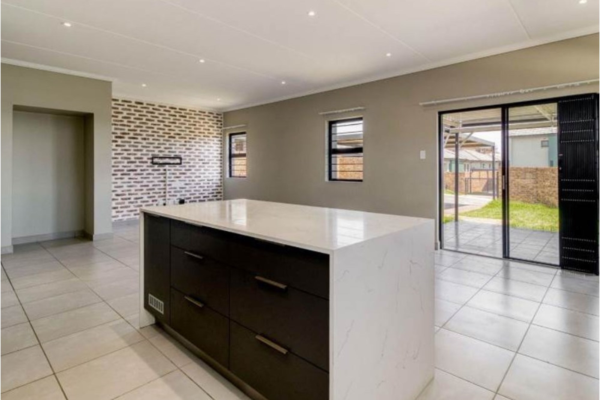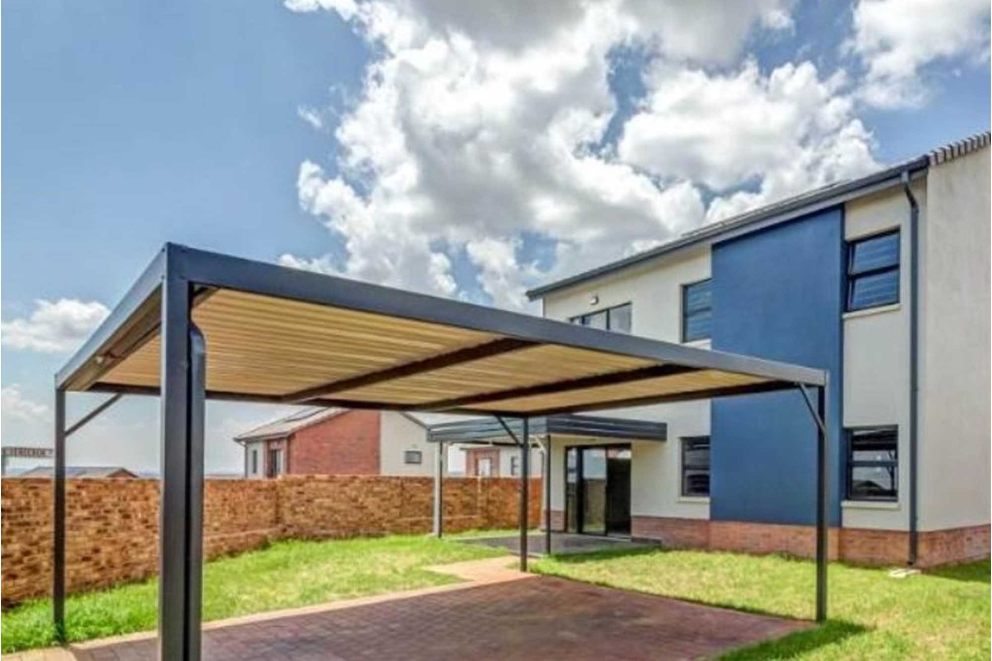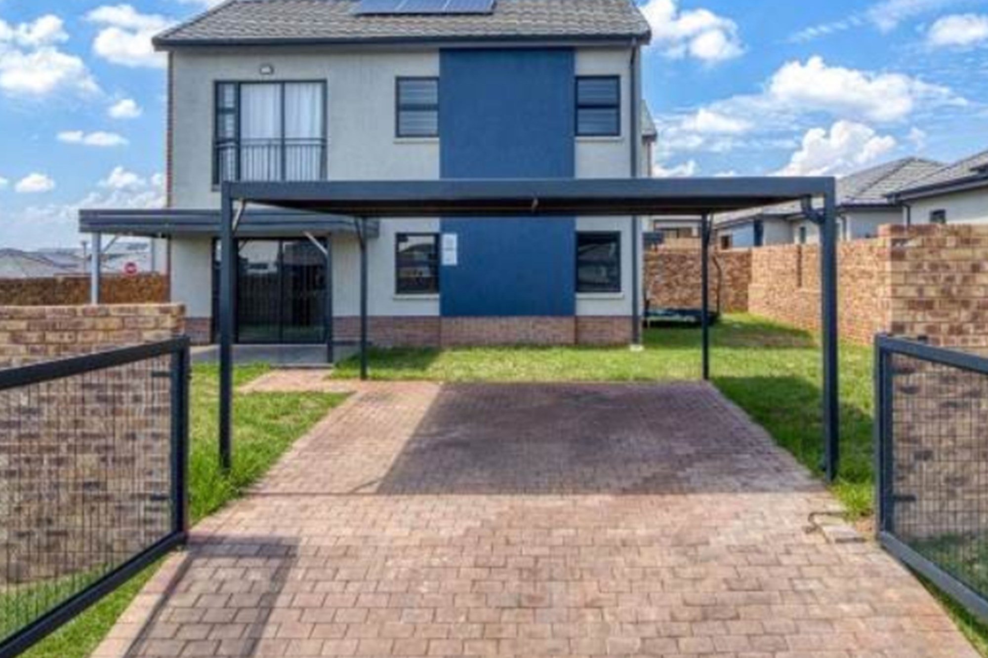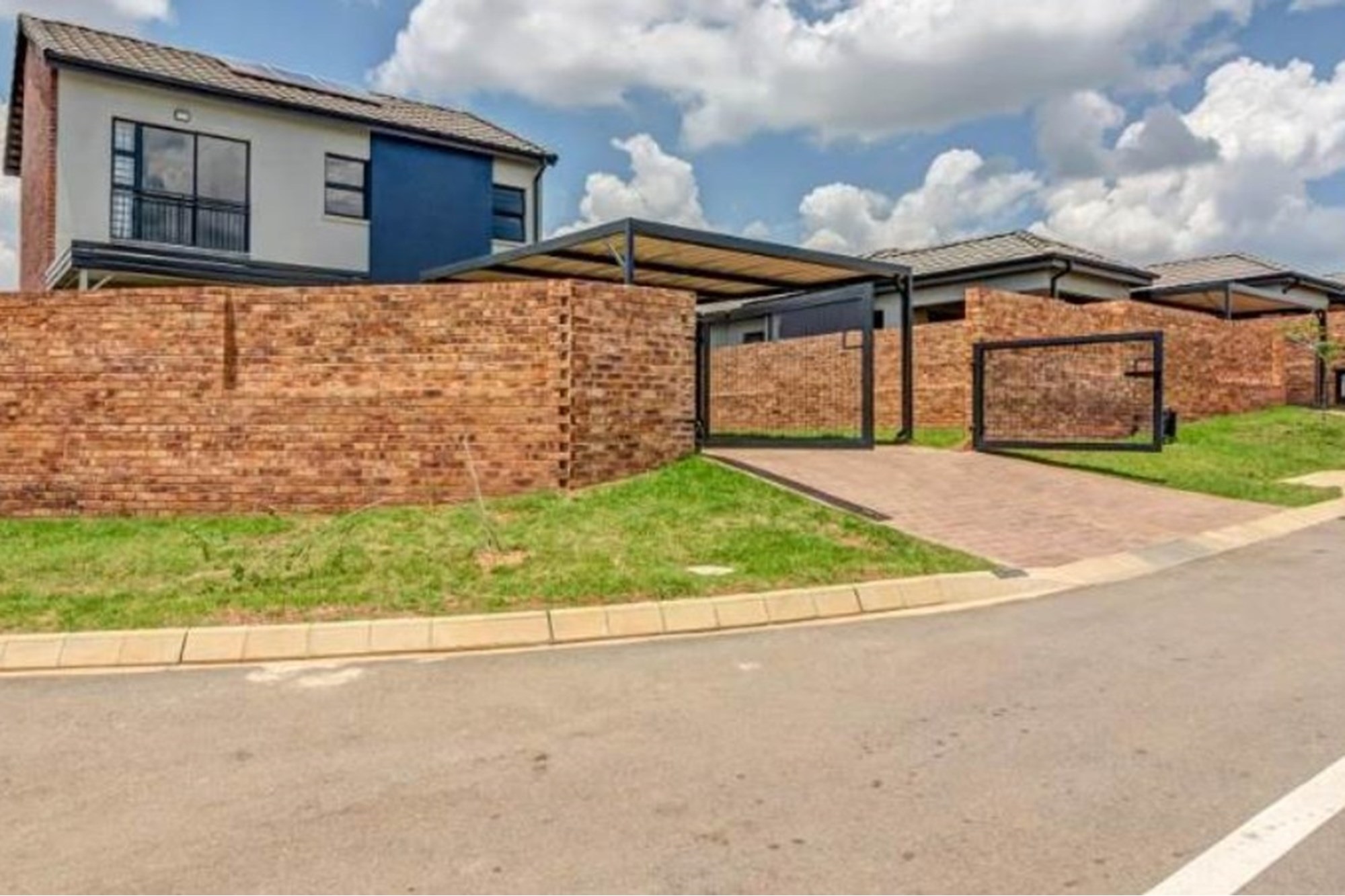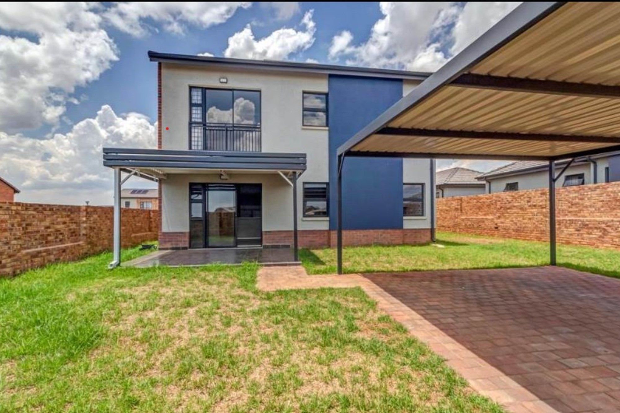 Welcome to your dream home in the sought-after residential area of Nietgedacht AH, Gauteng, South Africa. This stunning, contemporary 3-bedroom, 2-bathroom house is new to the market and eagerly awaits its next owner. Nestled in a safe location at 2 Lenchiwe, this property, built in February 2018, boasts a modern design crafted with a blend of brick, concrete, glass siding, and stone, exuding elegance and robustness.