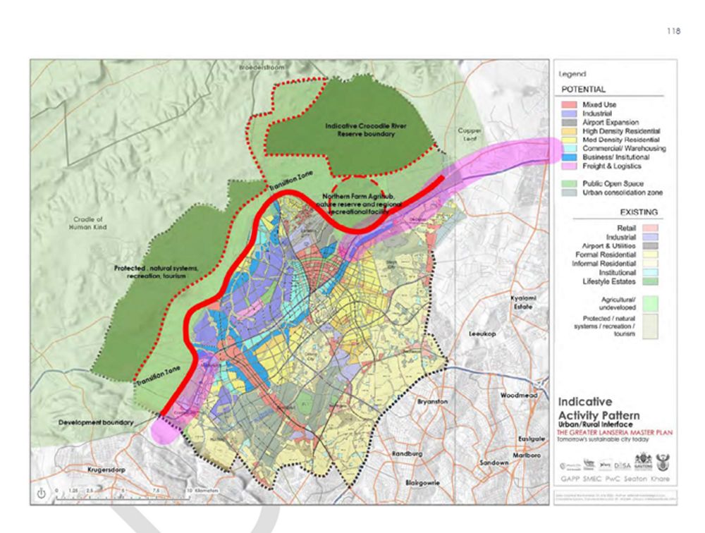 The zoning status of the site is currently unspecified; however, it is included in the Lanseria Megacity Development Framework plan. This vacant land is primed for development and has the potential to expand to 40 hectares by acquiring neighboring properties.