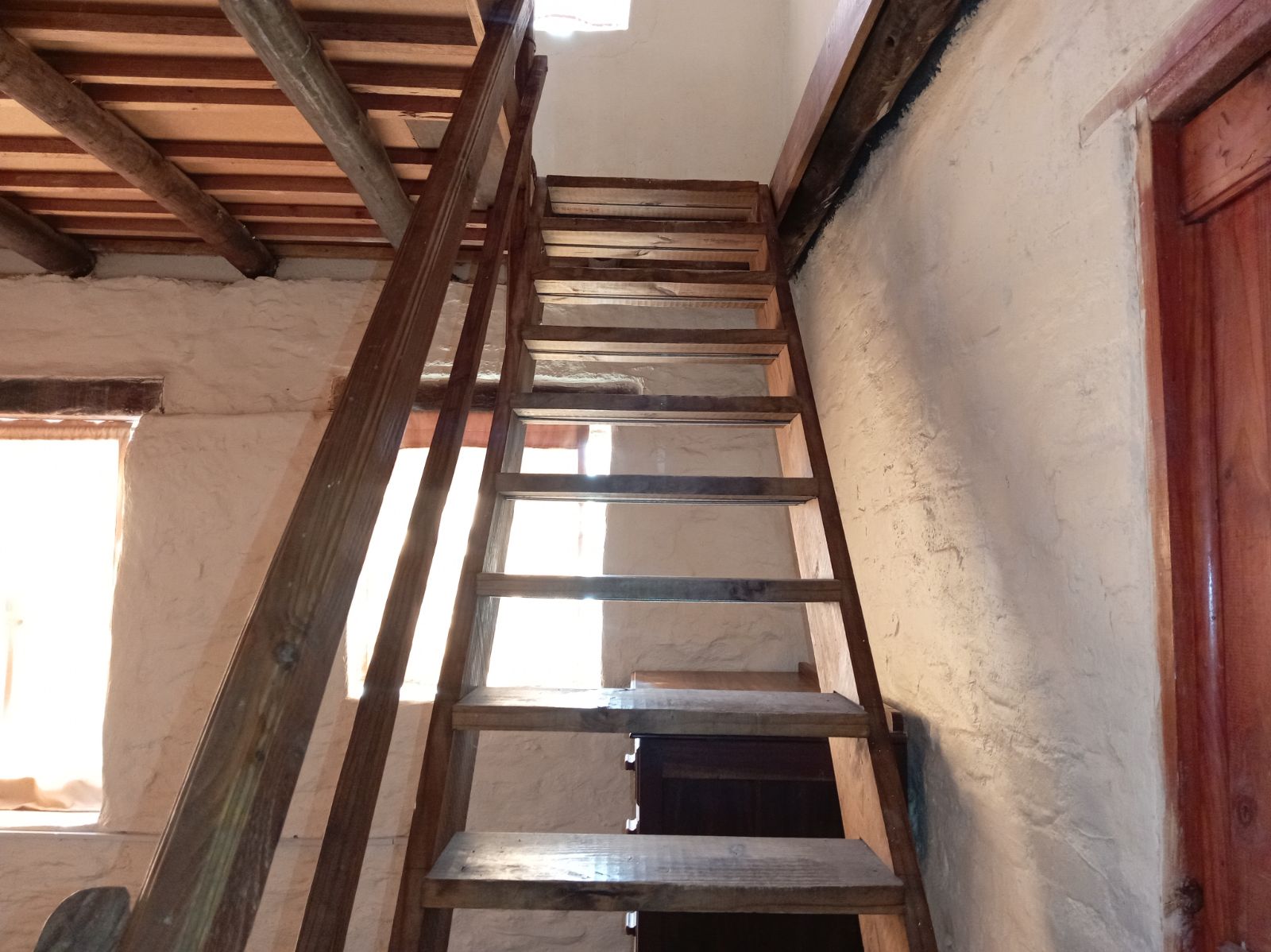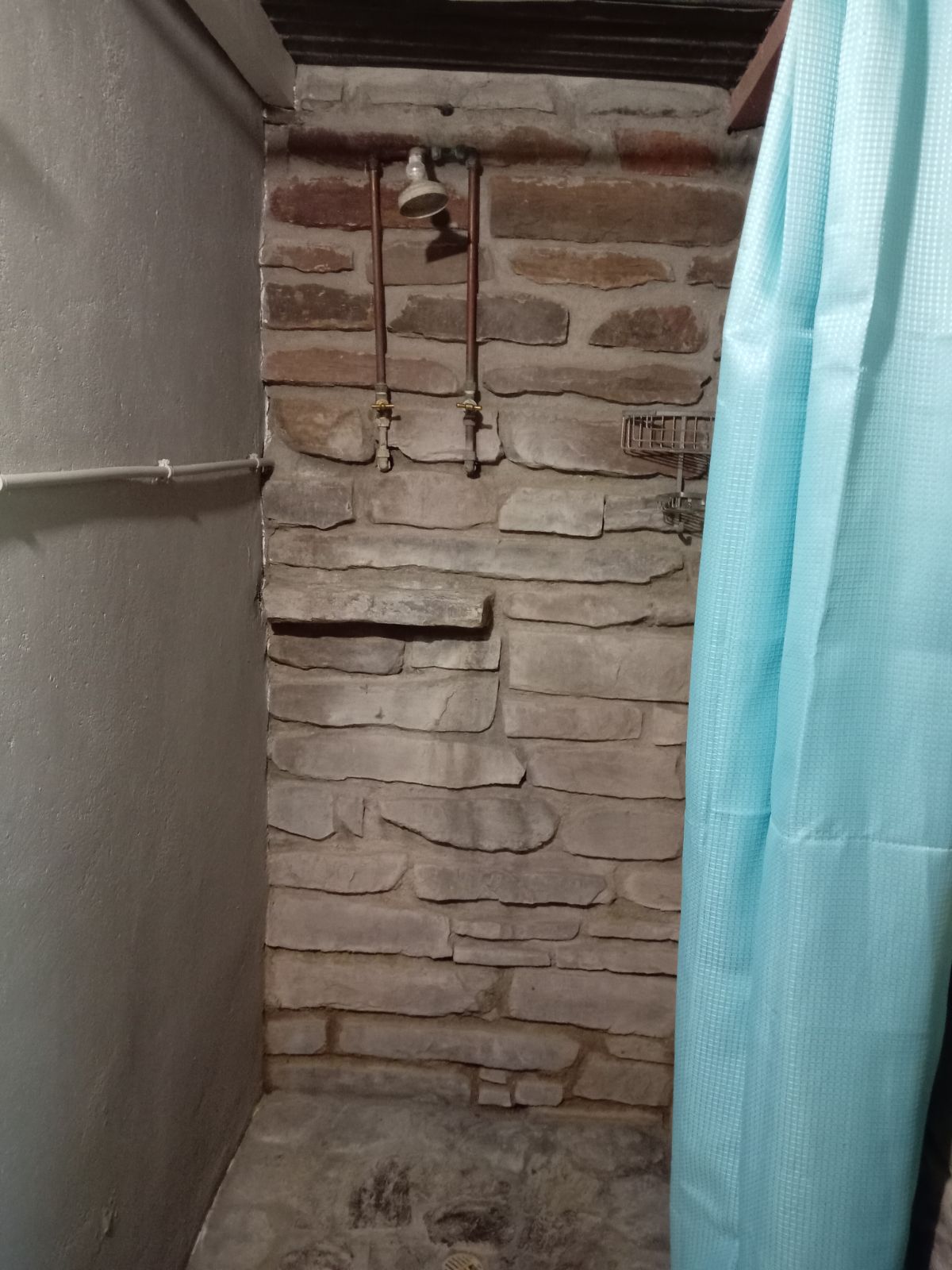 This character-filled duplex features a large open-plan living area with a cozy hot coal stove, perfect for cold winters. The ground floor also includes a bathroom with shower, toilet, and basin. Upstairs, you’ll find a spacious sleeping area leading out to a charming veranda with a staircase down to a private garden – ideal for relaxing in a peaceful setting.