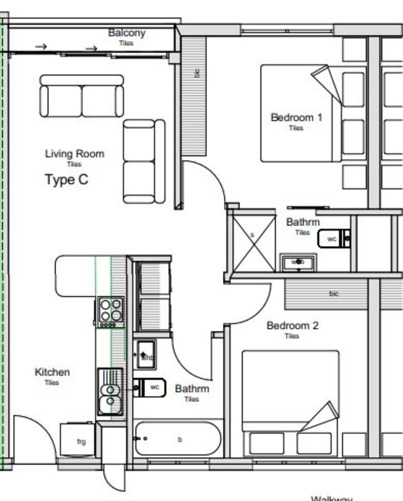 This well-positioned two-bedroom, two-bathroom apartment on the first floor of 127@Brooklyn offers convenient access without sacrificing privacy. The main bedroom features an en-suite bathroom, while the second bathroom is ideal for guests or shared living.