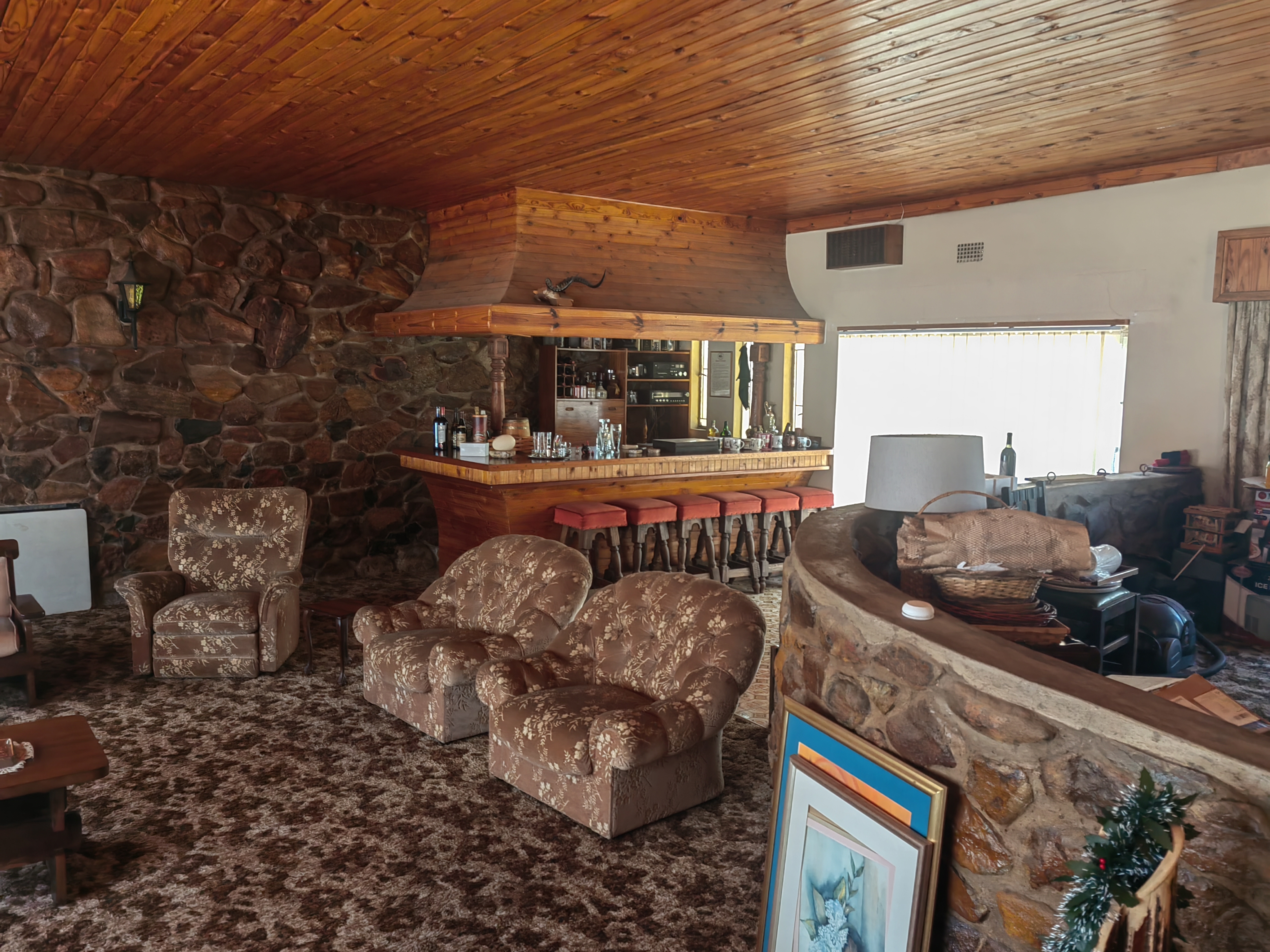 Big lounge with dining area with build in bar