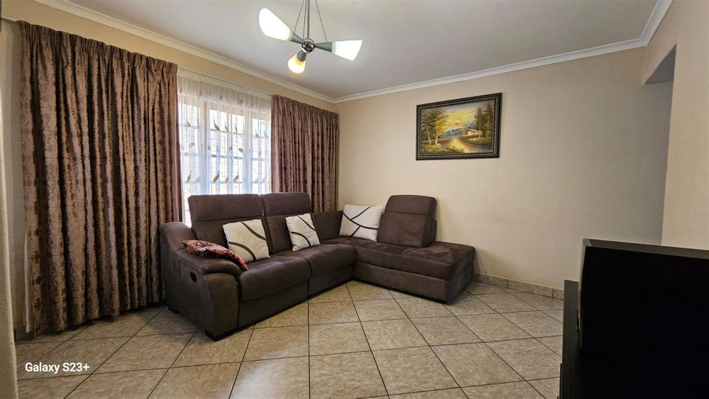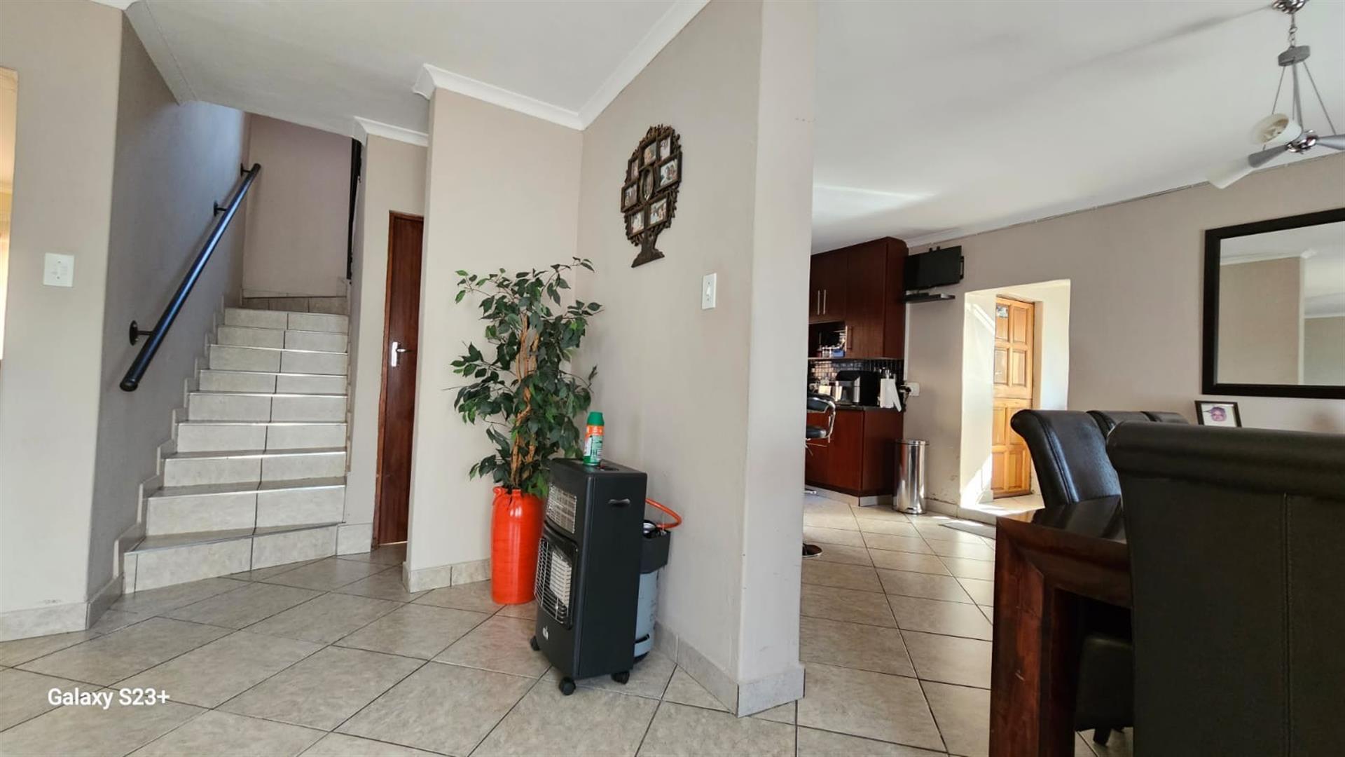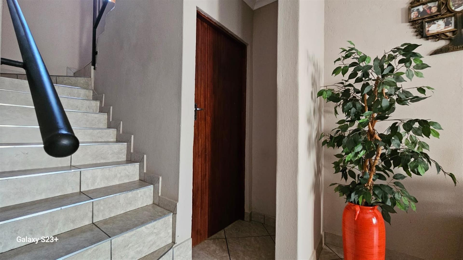 Discover the epitome of luxury living in the heart of Pretoria North Ninapark Gauteng with this exquisite three bedroom, double storey-style house, perfectly nestle, designed for those who appreciate elegance and comfort, this spacious big square meter home provides an idyllic retreat for families or hosting guests. Boasting a total of large square meters, this property offers ample space and endless possibilities for outdoor living in a safe, exclusive location, six open parking bay, pit build in braai the study provides the perfect space for remote work place or an office, as you enter the property, you will be greeted by spacious lounge, allowing for seamless flow throughout the main living area, the main house features bedroom upstairs with balcony and lovely views plus a walk in closet , in-suits, bathroom,
