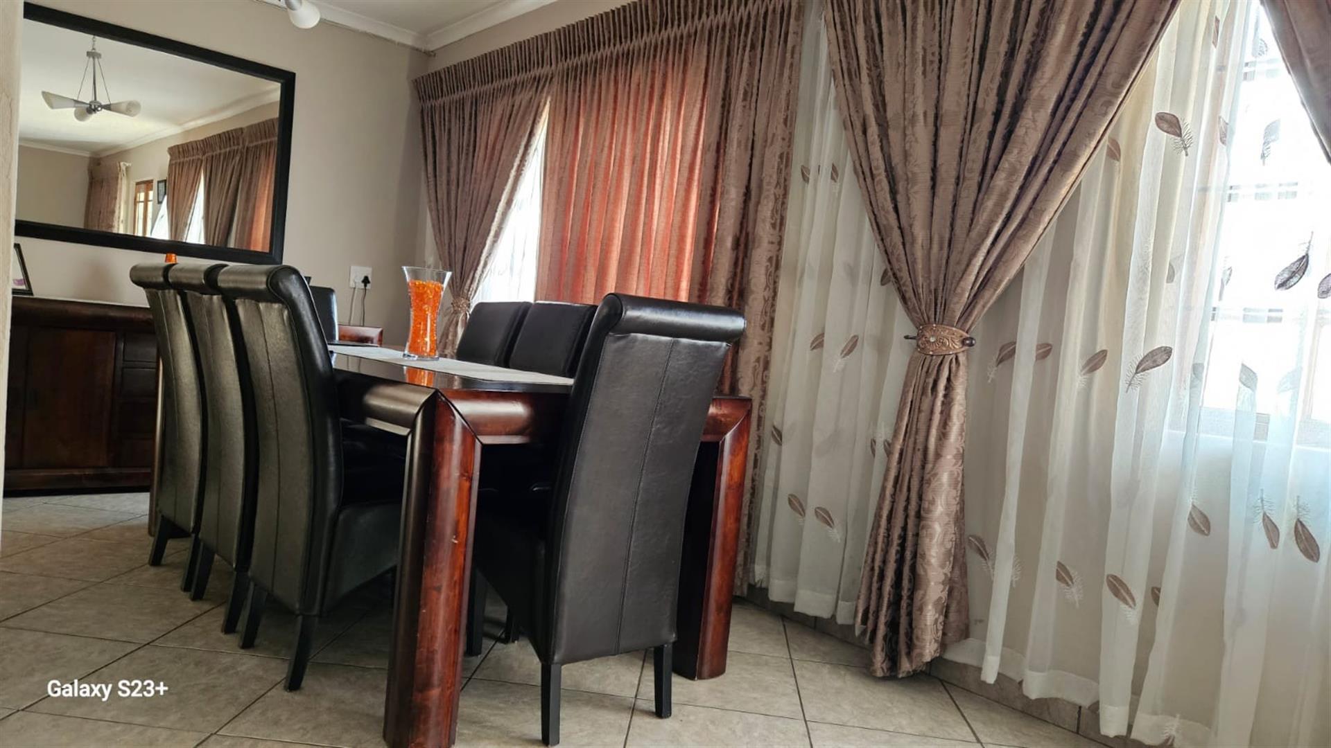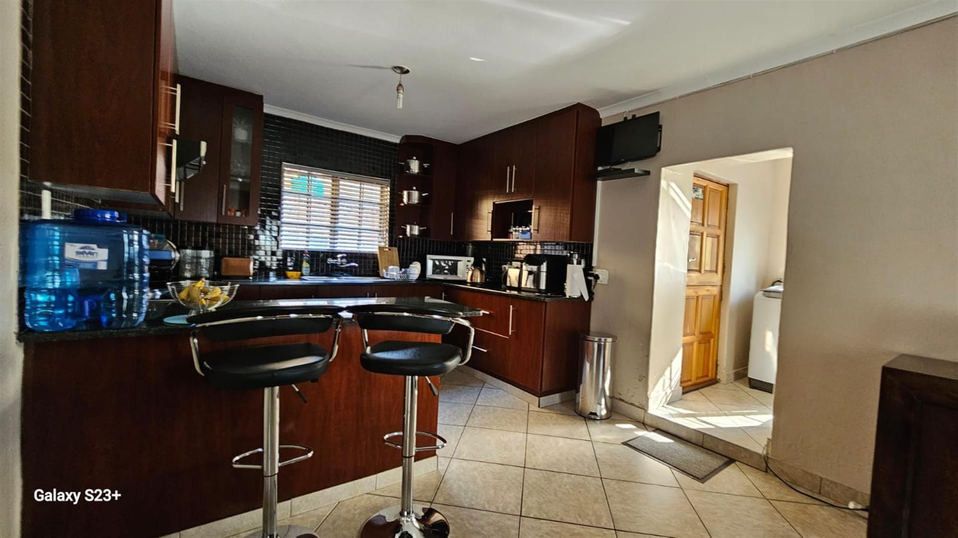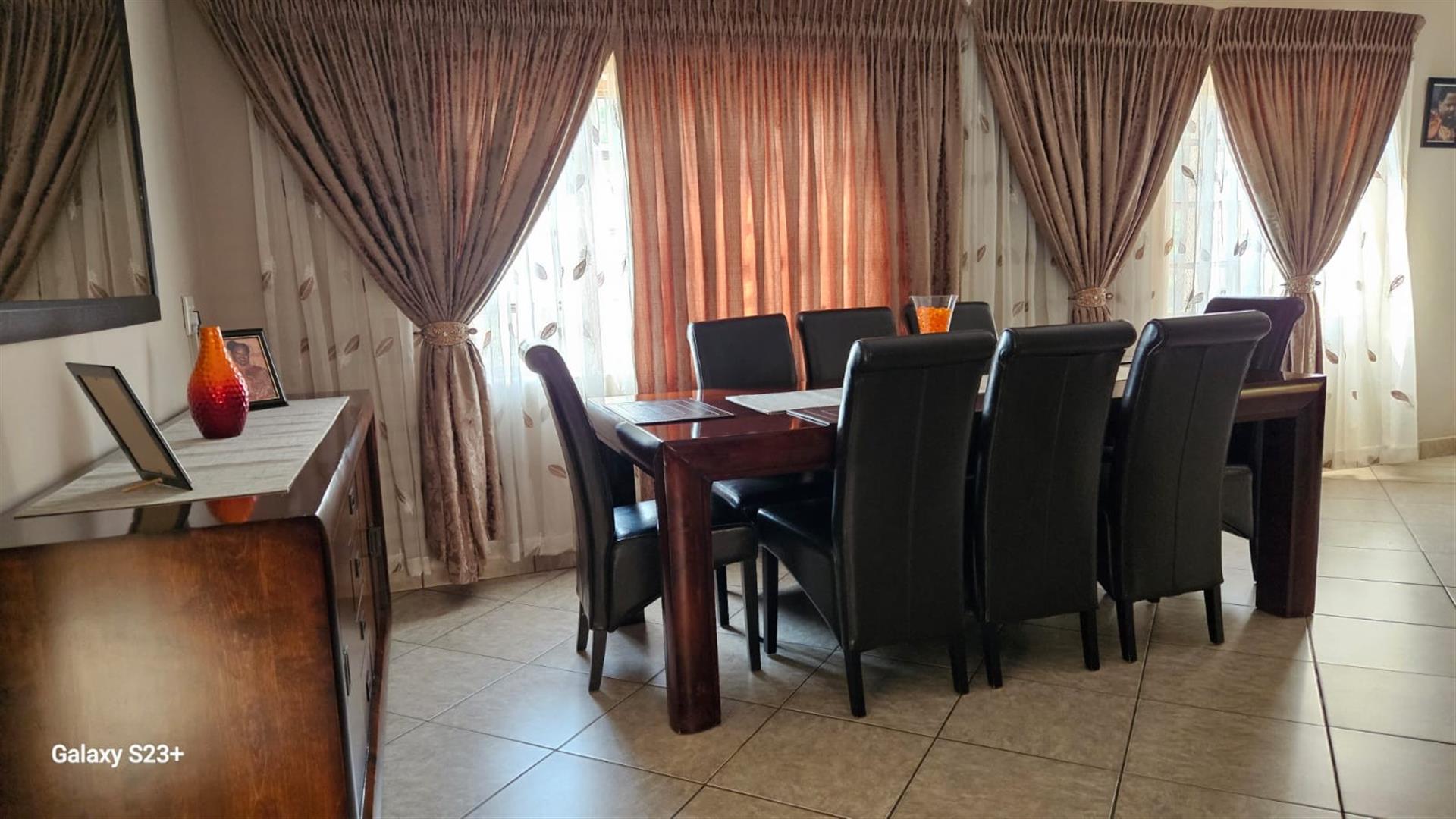 Discover the epitome of luxury living in the heart of Pretoria North Ninapark Gauteng with this exquisite three bedroom, double storey-style house, perfectly nestle, designed for those who appreciate elegance and comfort, this spacious big square meter home provides an idyllic retreat for families or hosting guests. Boasting a total of large square meters, this property offers ample space and endless possibilities for outdoor living in a safe, exclusive location, six open parking bay, pit build in braai the study provides the perfect space for remote work place or an office, as you enter the property, you will be greeted by spacious lounge, allowing for seamless flow throughout the main living area, the main house features bedroom upstairs with balcony and lovely views plus a walk in closet , in-suits, bathroom,