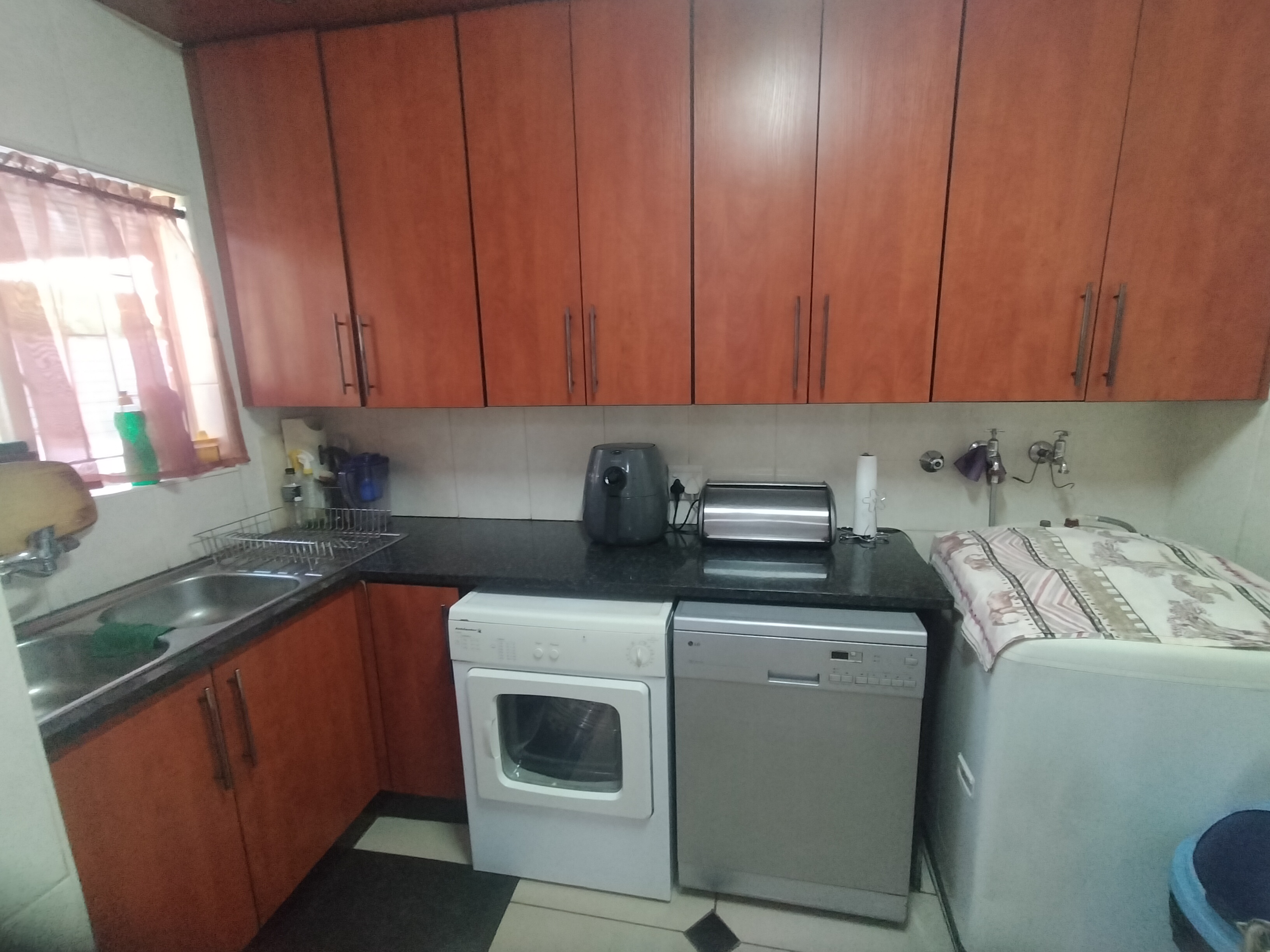 Discover this beautifully maintained 4-bedroom home in the tranquil and sought-after area of Ninapark. Offering 2 bathrooms, including a wheelchair-friendly ensuite in the main bedroom with a walk-in wardrobe, as well as a convenient guest toilet, this property is perfect for comfortable family living. The spacious lounge and dining area is open to a covered patio, which is ideal for relaxing or entertaining. The modern kitchen boasts granite countertops, a breakfast counter, and a separate scullery for added convenience. With a face brick exterior and tiled roof, this home is both stylish and low-maintenance.