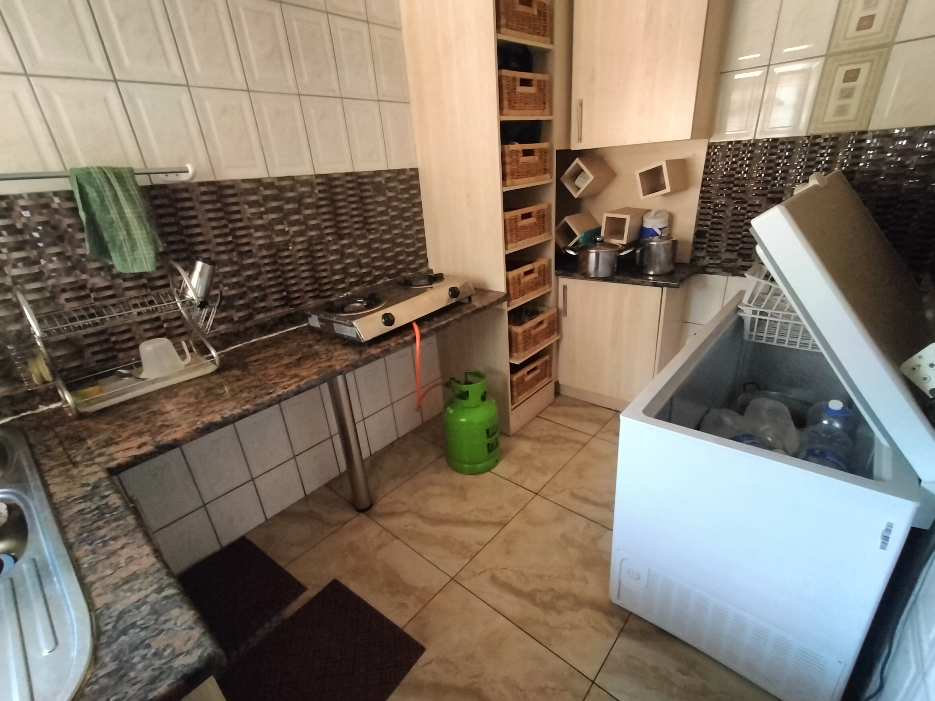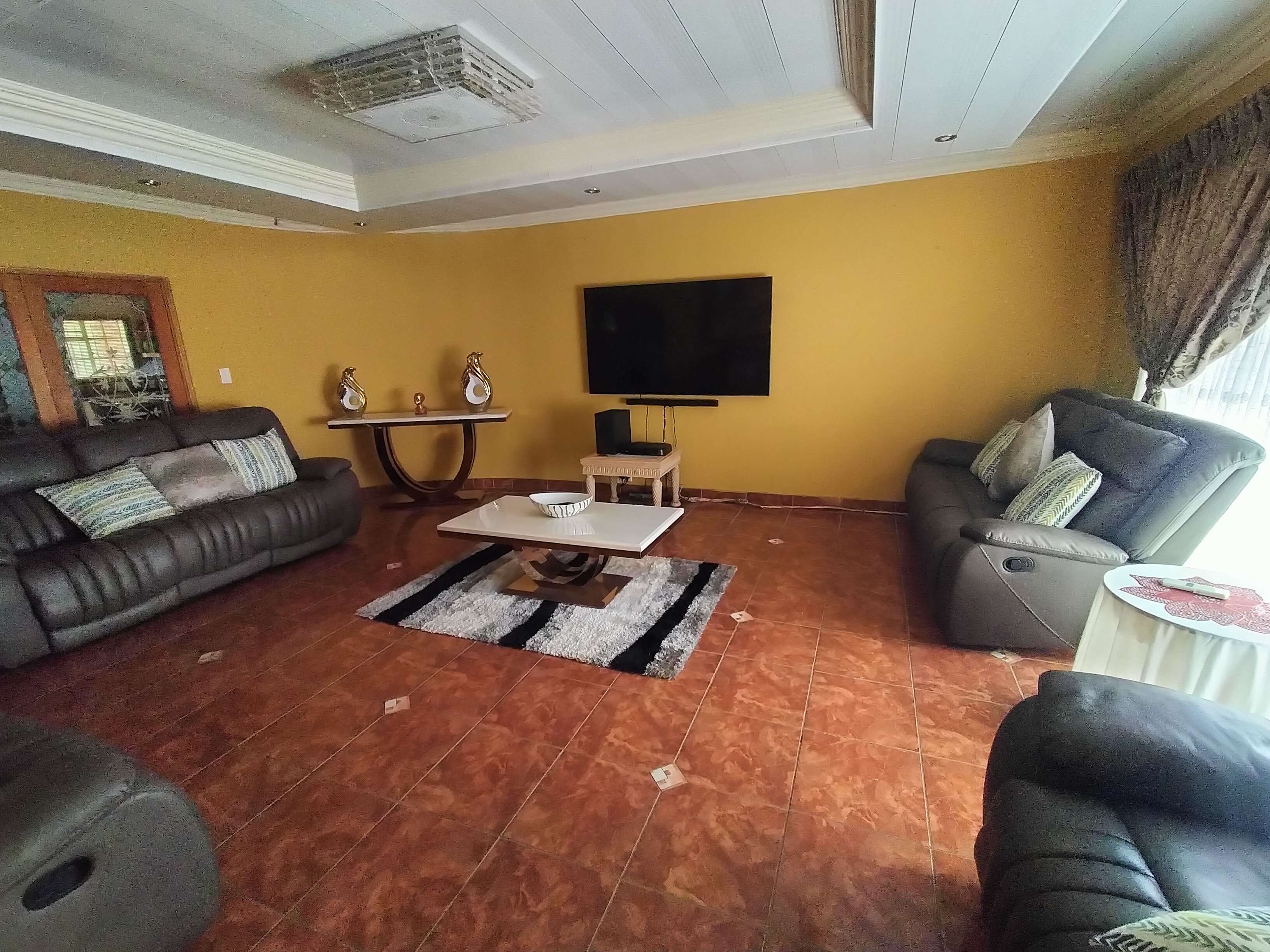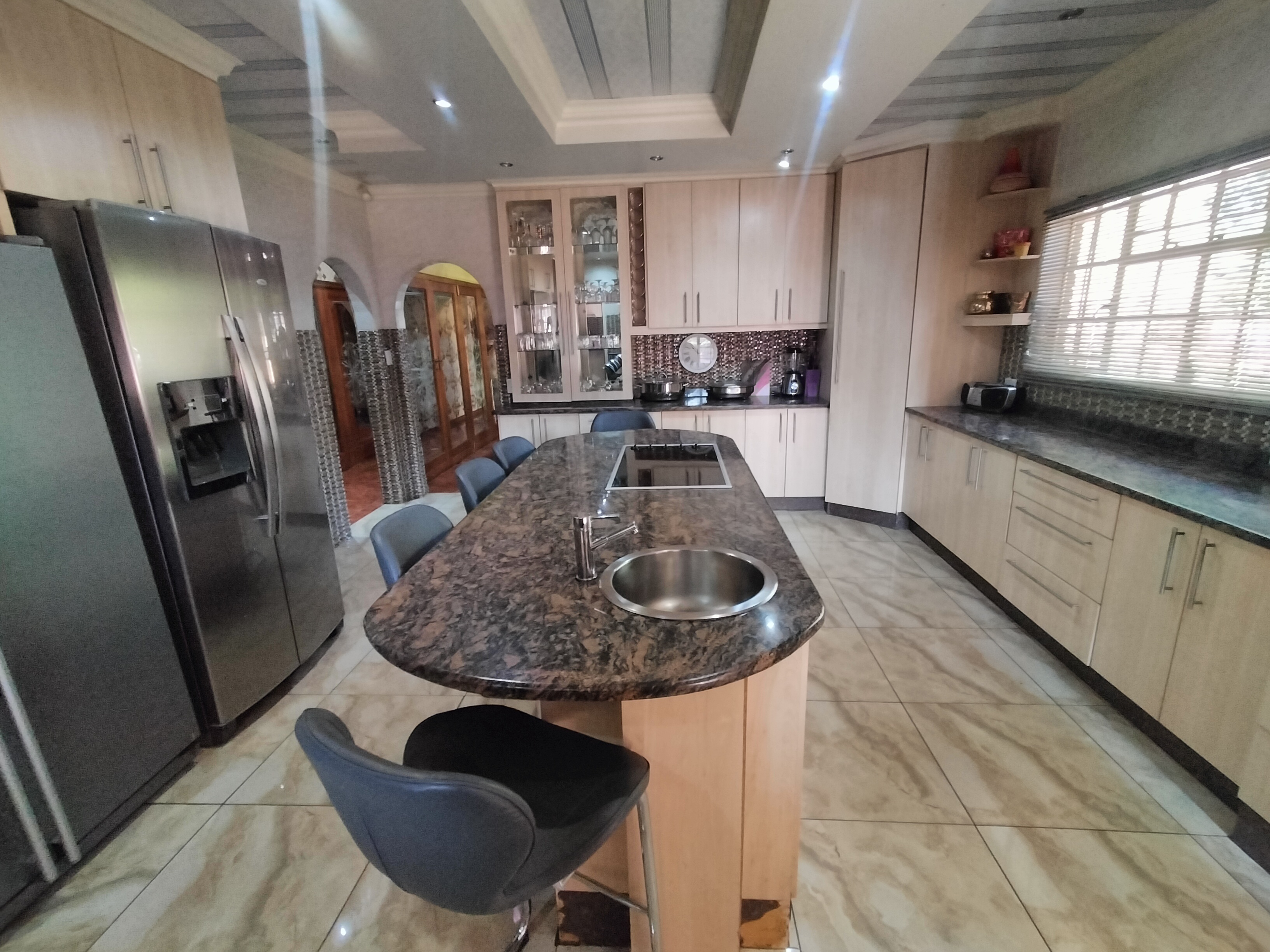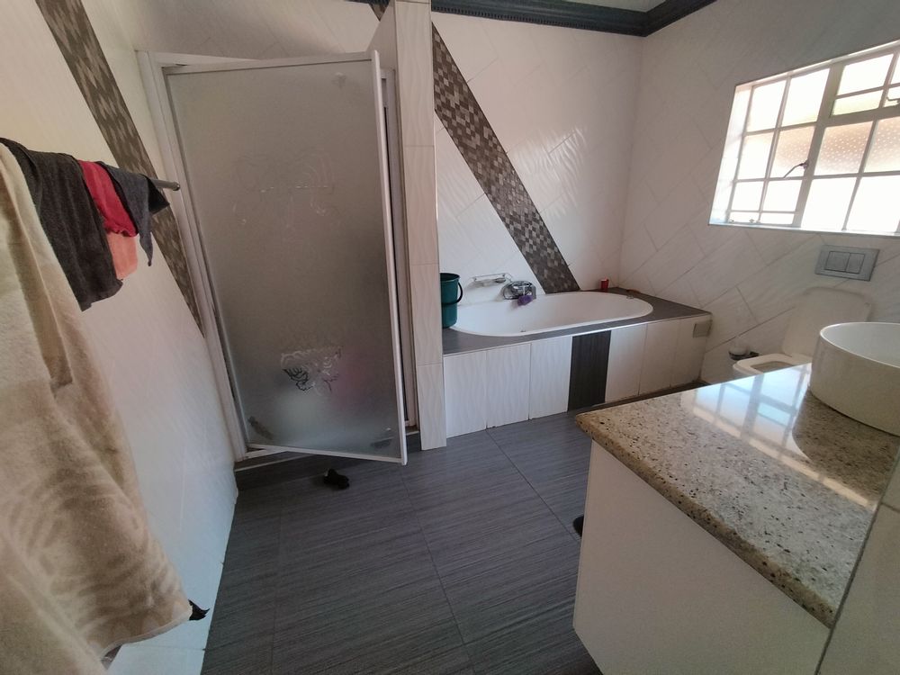 This spacious 6-bedroom, 4-bathroom residence in the sought-after suburb of Ninapark offers a blend of comfort, elegance, and functionality on a generous 1500m2 erf. Designed for family living, the home features a large lounge, dining area, TV room, and a private study. The heart of the home is the modern island-style kitchen with granite tops, a pantry, scullery, and outside laundry, complemented by a neat and timeless facebrick design with a tiled roof.