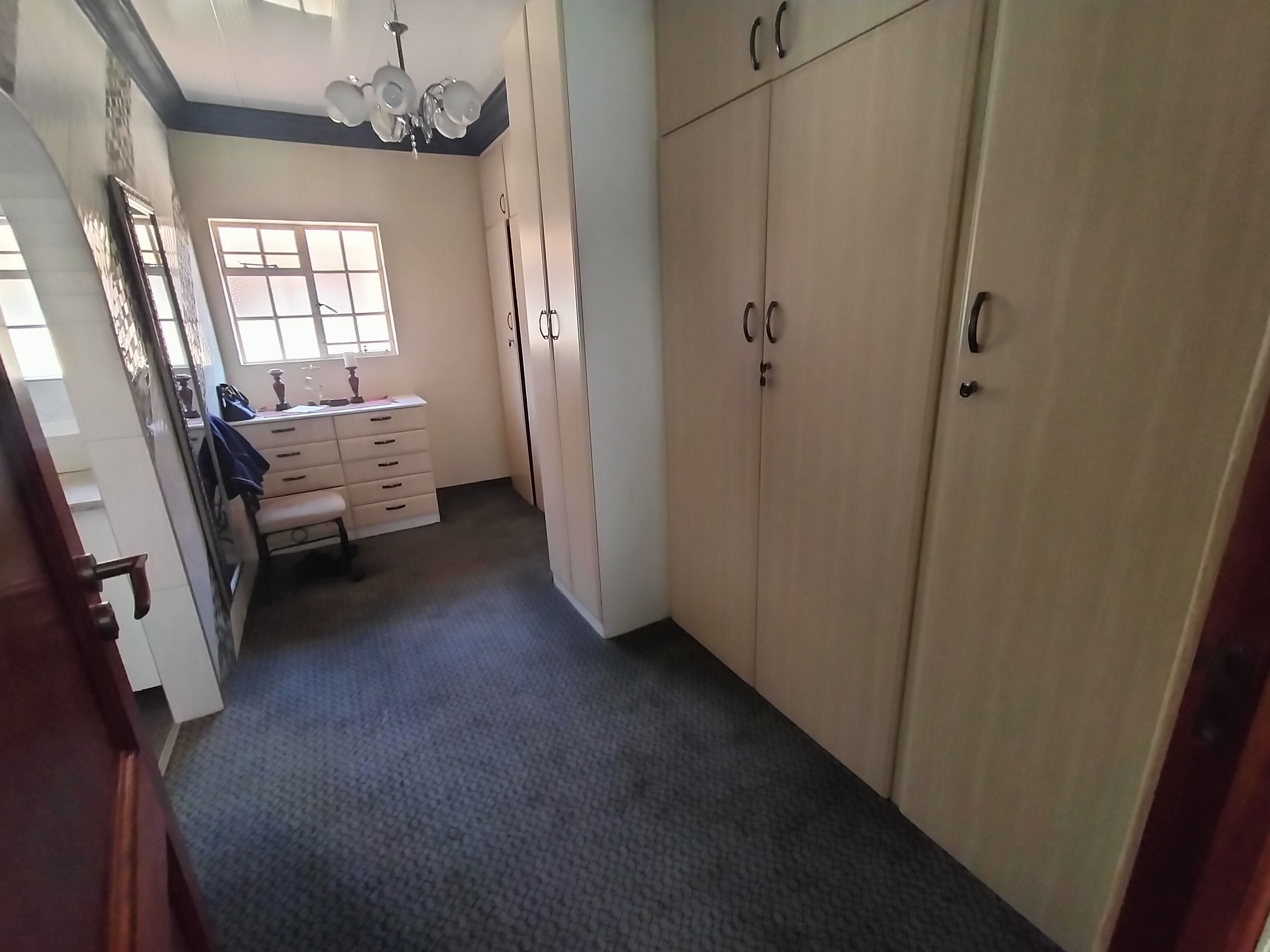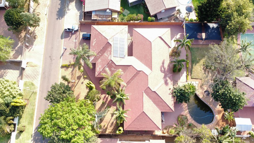 Outdoors, the property boasts a sparkling pool, borehole with irrigation, and ample parking with 3 garages, 2 entrances, and shadeport carports for 4 cars. The main bedroom impresses with a large walk-in wardrobe and stylish en-suite bathroom. Well-maintained by the same owners for 20 years, this home is set in an upmarket and quiet area close to schools, shopping centres, and major transport routes, making it a rare find for the discerning buyer.