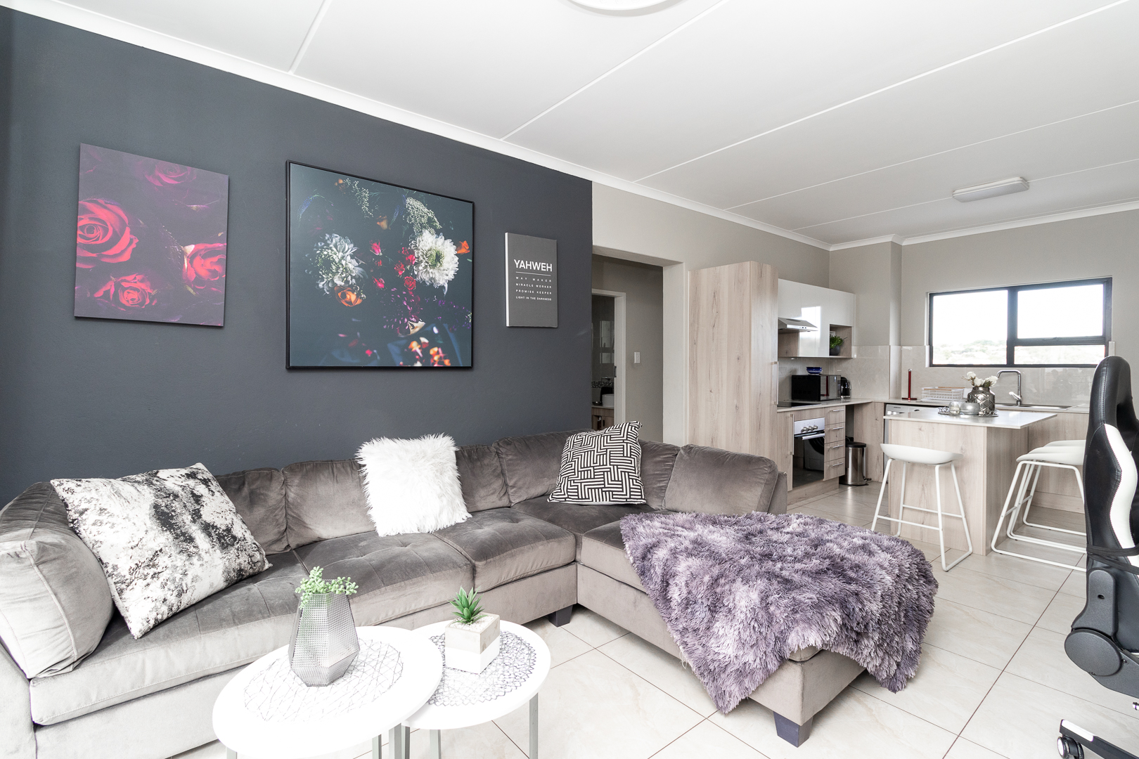 Enter this bright and cosy two-bedroomed apartment with modern finishes, located in the heart of a well-maintained and secure complex, where natural light pours into all areas. Ideal for a first time home buyer, work-from-home professional or a young couple.
