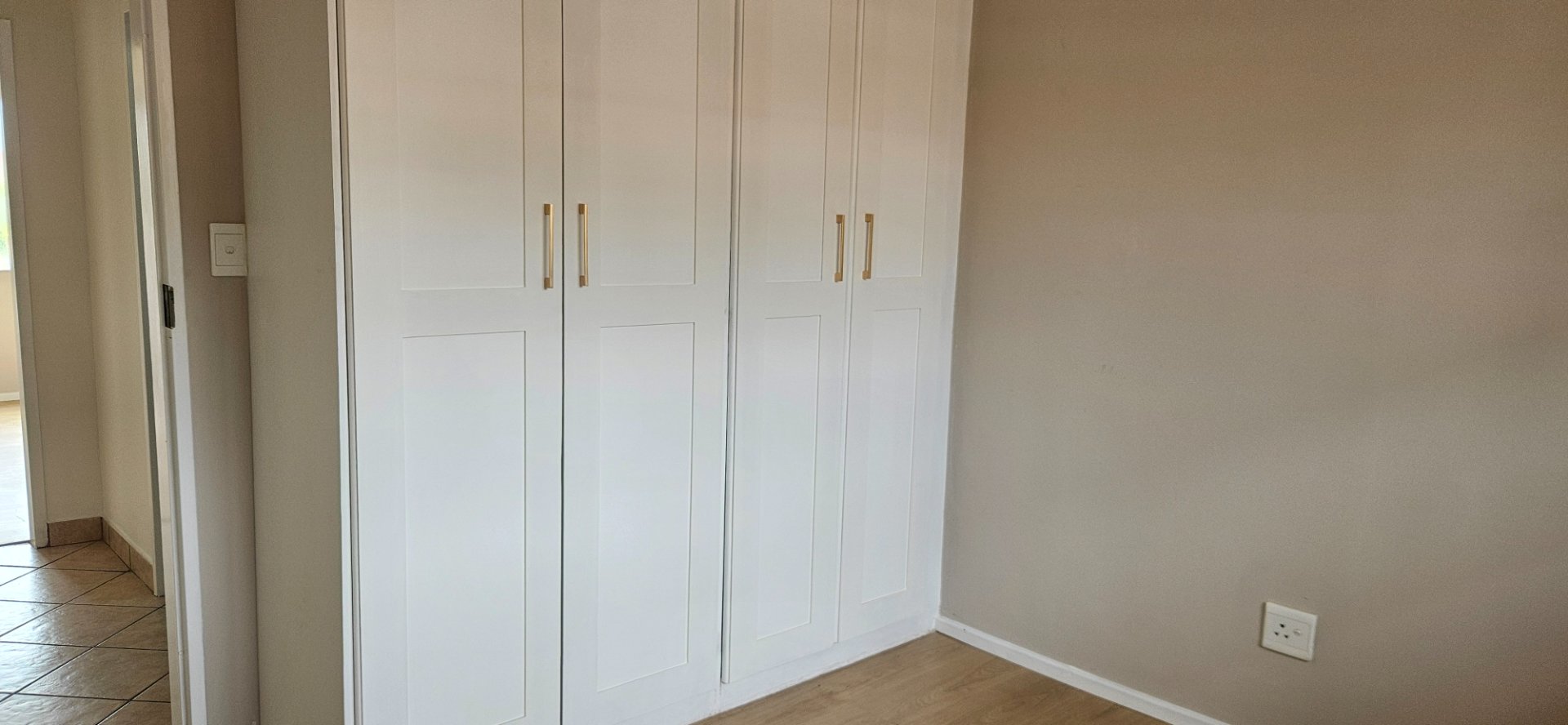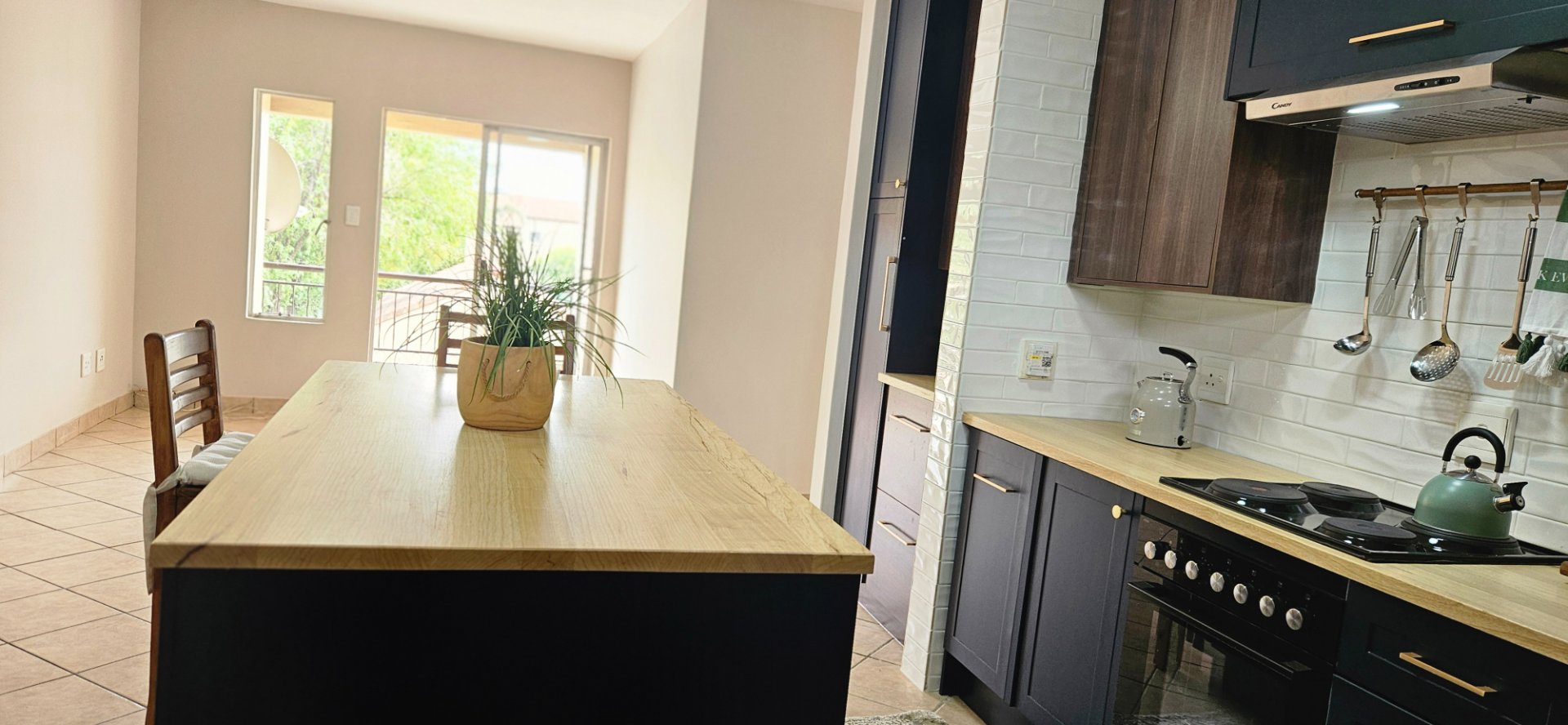 This spacious 2-bedroom, 2-bathroom unit offers modern comfort and style. One bathroom features a shower, while the other includes a bath and shower combination. Both bedrooms are generously sized with built-in cupboards. The brand-new kitchen is a standout feature — equipped with a stove, coffee station, large island with ample working space, room for two appliances, and plenty of cupboard space. The open-plan lounge leads onto a balcony with a built-in braai, ideal for entertaining.