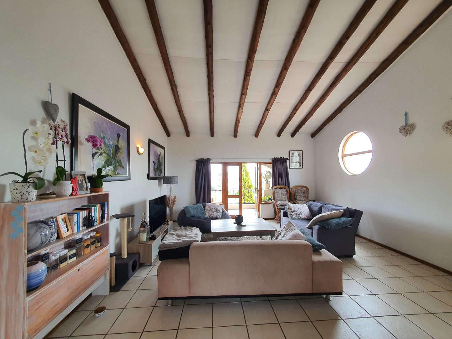 -Spacious open-plan lounge with high wood ceilings and modern laminated flooring
