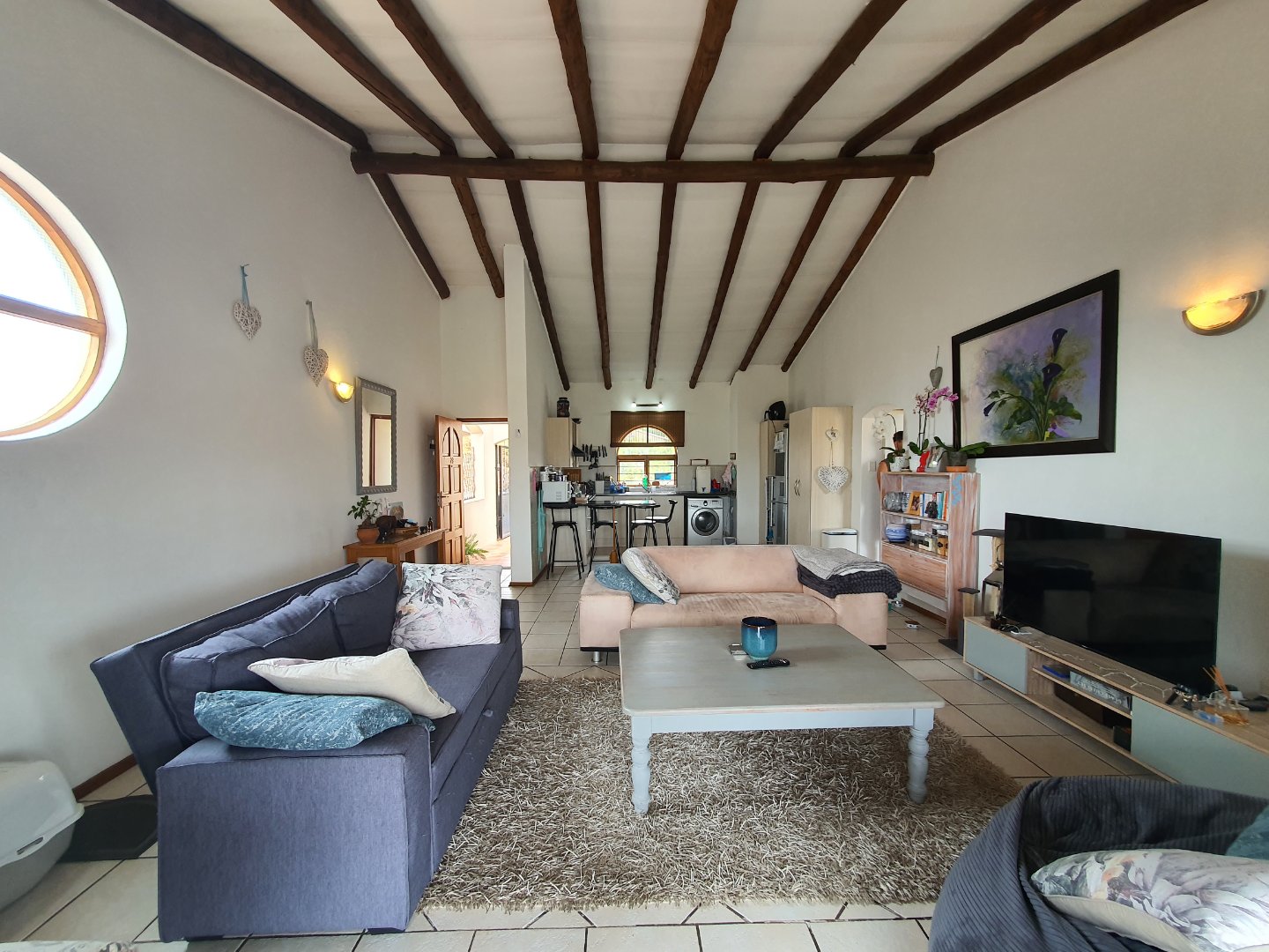 -Covered balcony with a built-in braai and granite-top table, ideal for entertaining