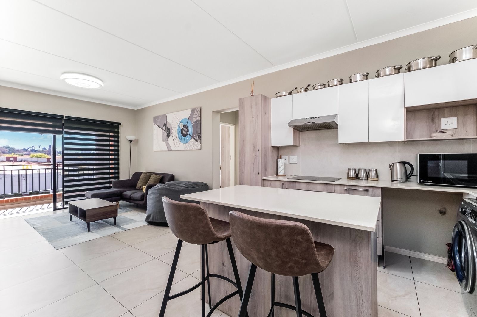 The open plan design leads from the kitchen to the lounge which opens up to the spacious balcony