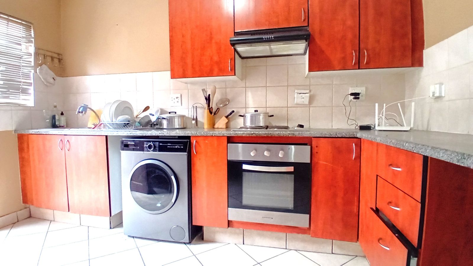 Located deep in the heart of the Tuscan-styled Telford Court in Noordhang, this warm and well-equipped unit offers 2 bedrooms upstairs - the main bedroom comfortably fitting a king-sized bed - and 2 bathrooms upstairs, including a full bathroom in the main en-suite.