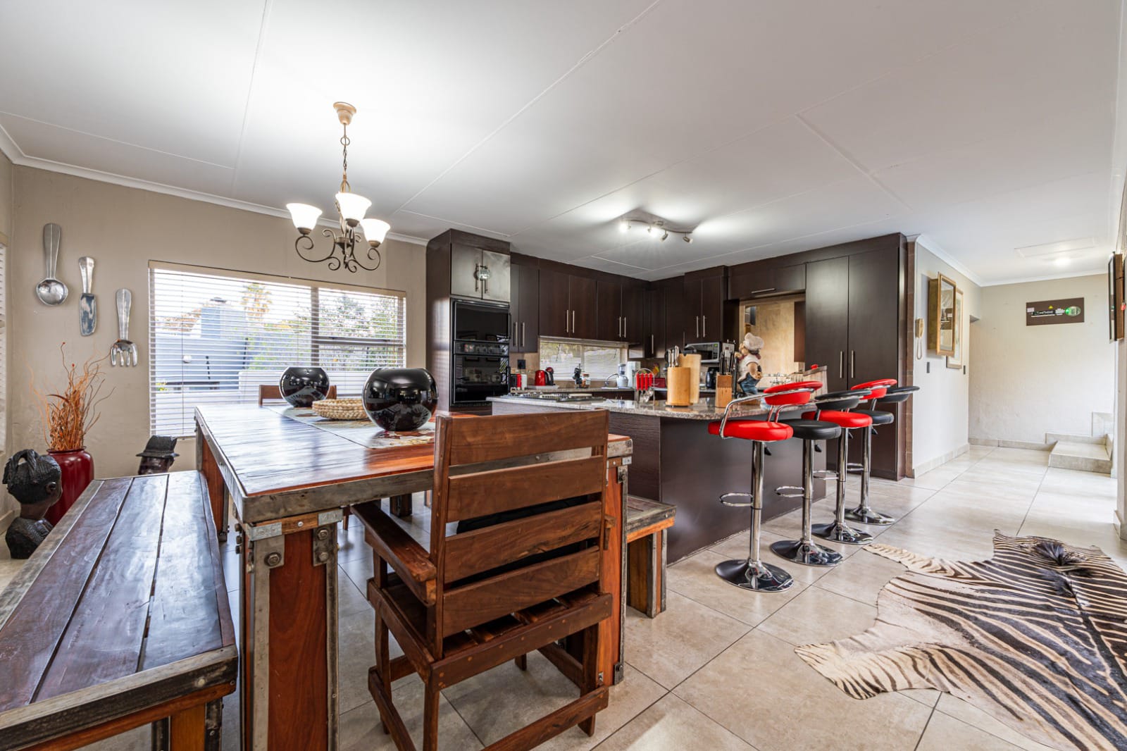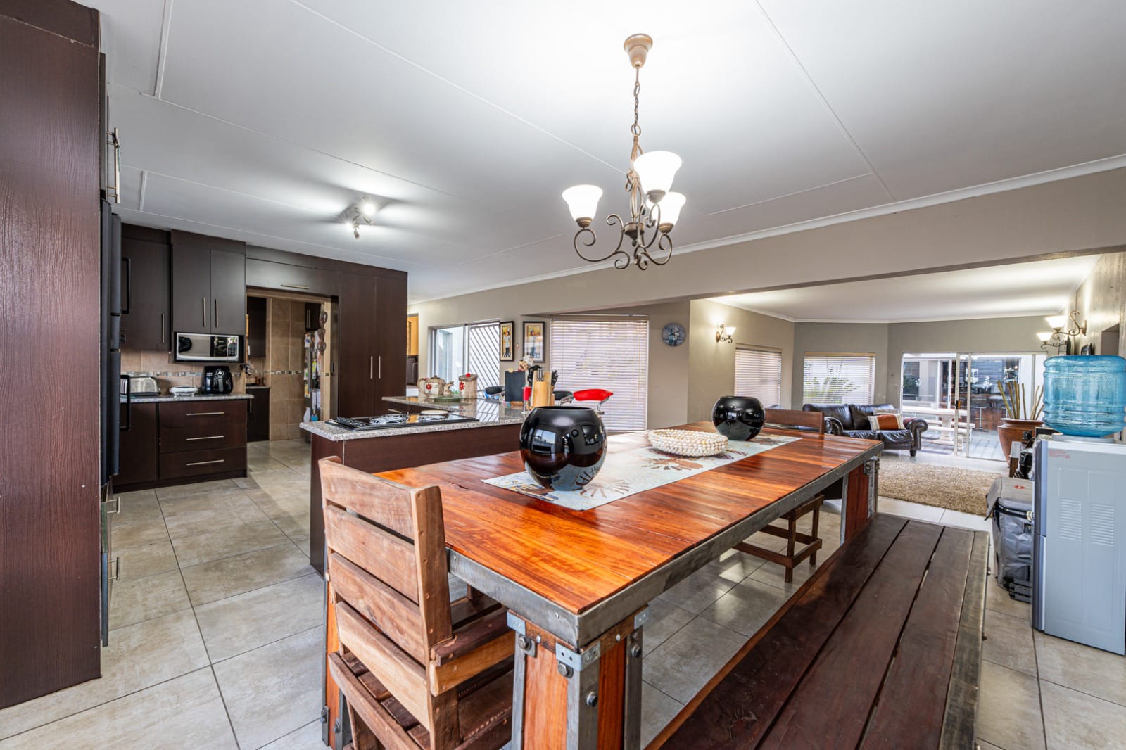 Modern kitchen with scullary. Open plan kitchen that flows into dining room and lounge. Seperate lounge and study with sliding doors opening to the swimming pool area.