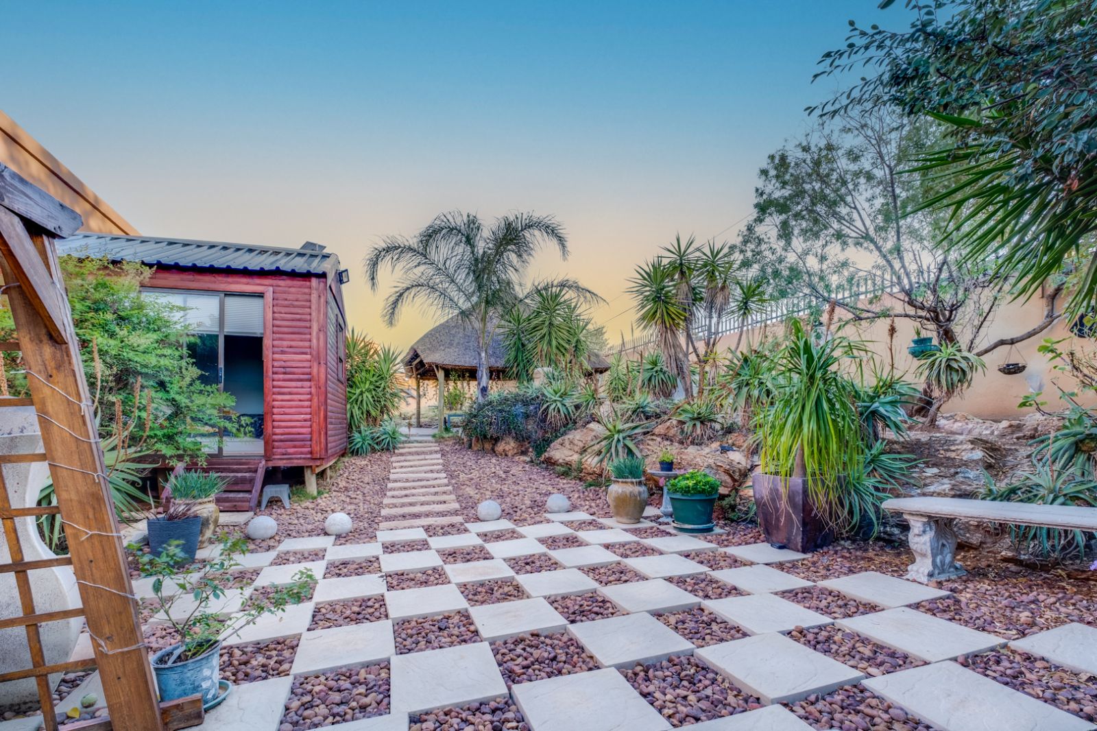 Practicality meets sustainability with solar panels that provide energy efficiency and peace of mind, while the double garage and four-car carport ensure ample parking and convenience for the modern family. There are two Wendy Huts of which one has been converted into a helpers quarters with its own shower and toilet and the second one adds extra value, serving as additional storage or a creative utility space for hobbies or gardening.