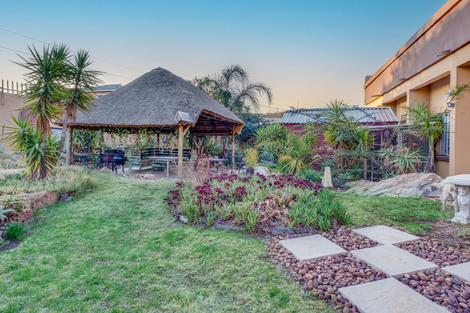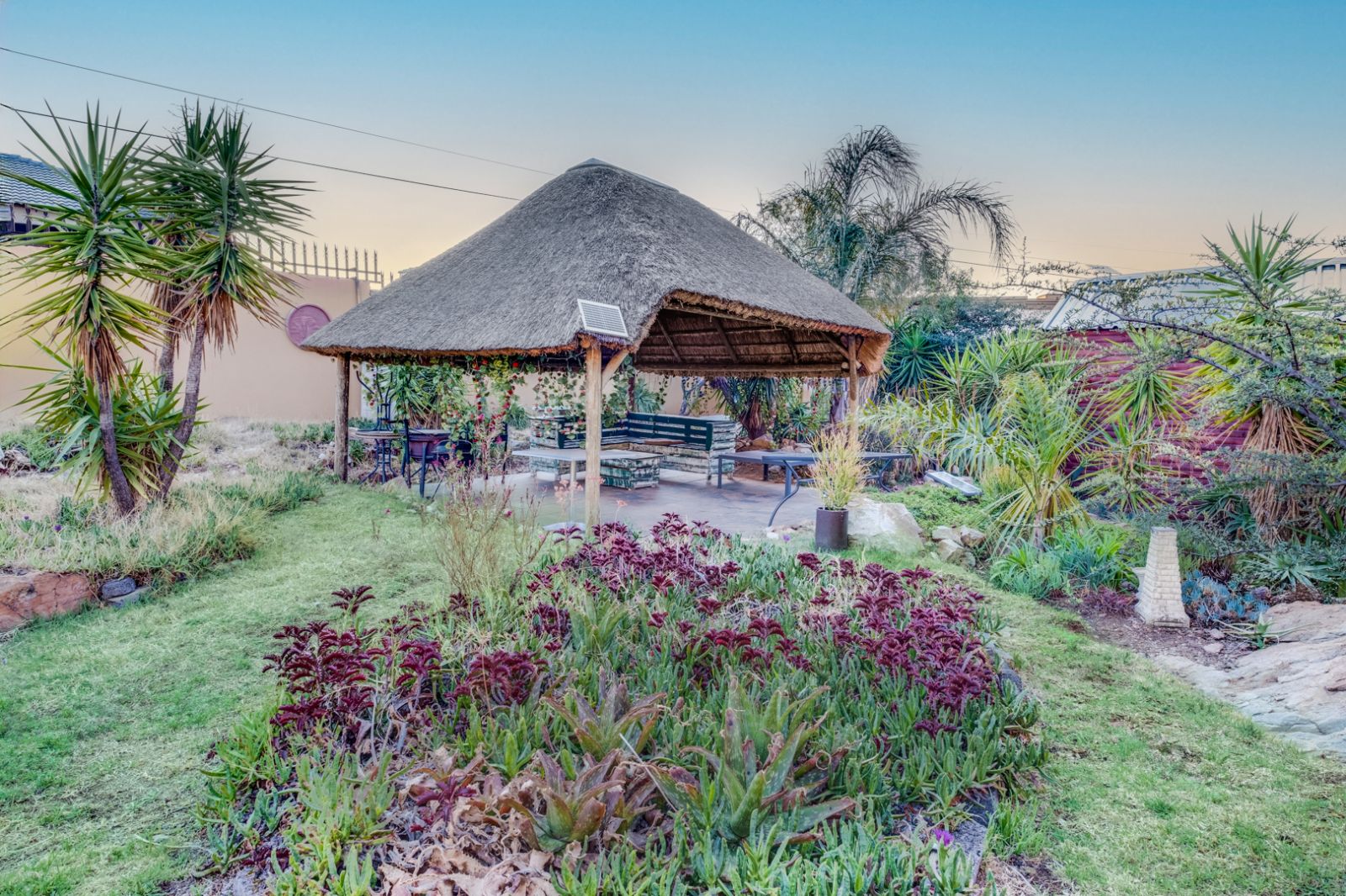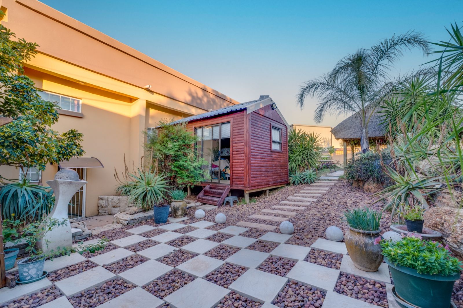 Practicality meets sustainability with solar panels that provide energy efficiency and peace of mind, while the double garage and four-car carport ensure ample parking and convenience for the modern family. There are two Wendy Huts of which one has been converted into a helpers quarters with its own shower and toilet and the second one adds extra value, serving as additional storage or a creative utility space for hobbies or gardening.