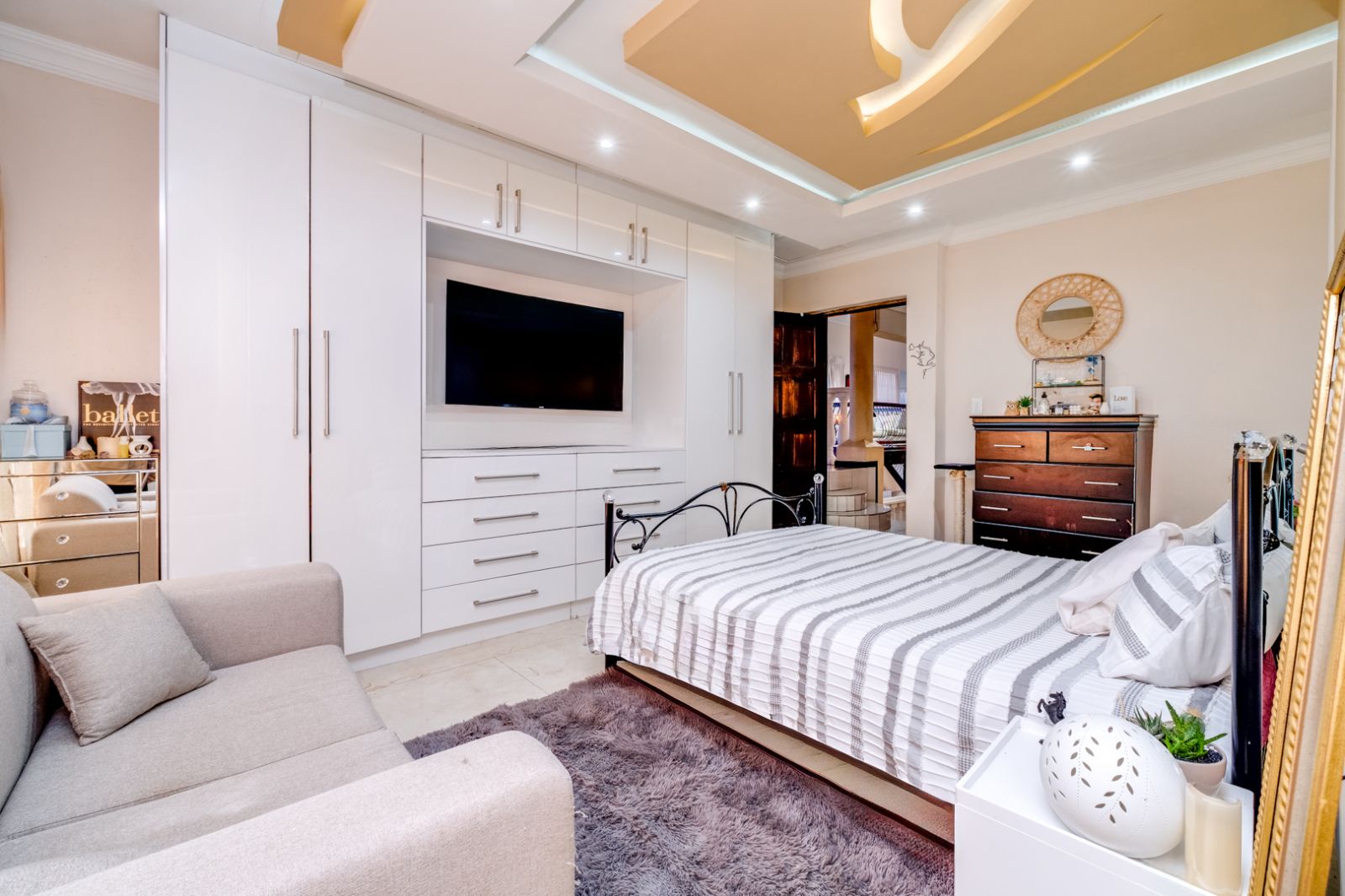 The home boasts four beautifully appointed bedrooms, each designed with ample built-in cupboards and an abundance of natural light. A fifth bedroom, perfectly positioned to take in the sweeping views, offers endless versatility — ideal as a stylish teen pad, a peaceful work-from-home office, or a serene private study. Every bedroom is complemented by its own modern en-suite bathroom, ensuring privacy and convenience for family members and guests alike.