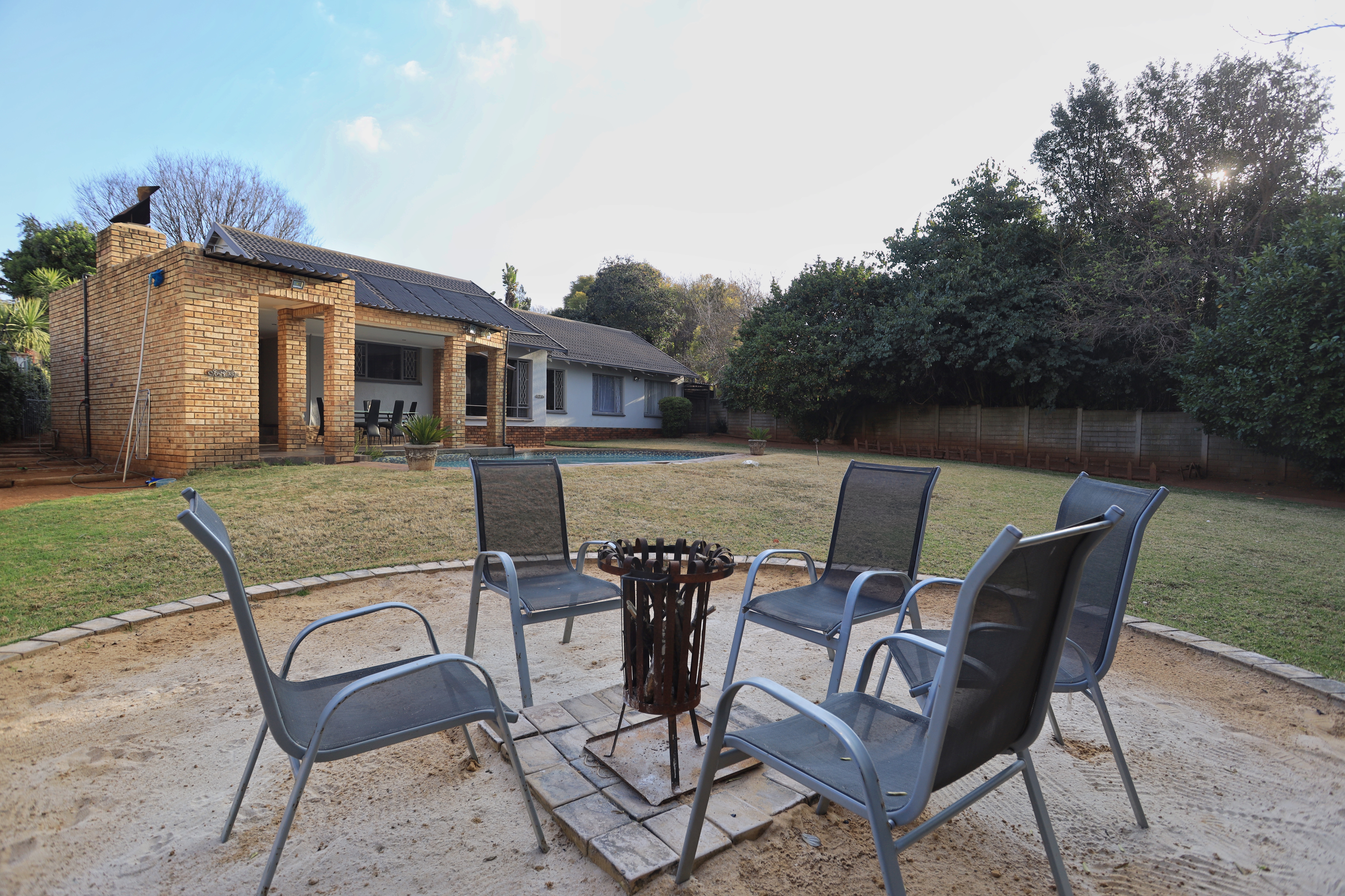 Step through the welcoming entrance hall into a spacious lounge and open-plan dining area, flowing effortlessly into a stylish bar and entertainment space. Large sliding doors open onto a covered patio with a built-in braai, overlooking a sparkling heated swimming pool and a generous garden—perfect for kids to play freely. Enjoy unforgettable evenings around the boma under the stars, creating memories by the fire.