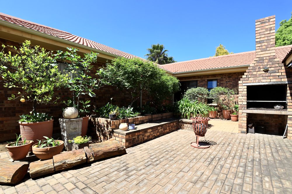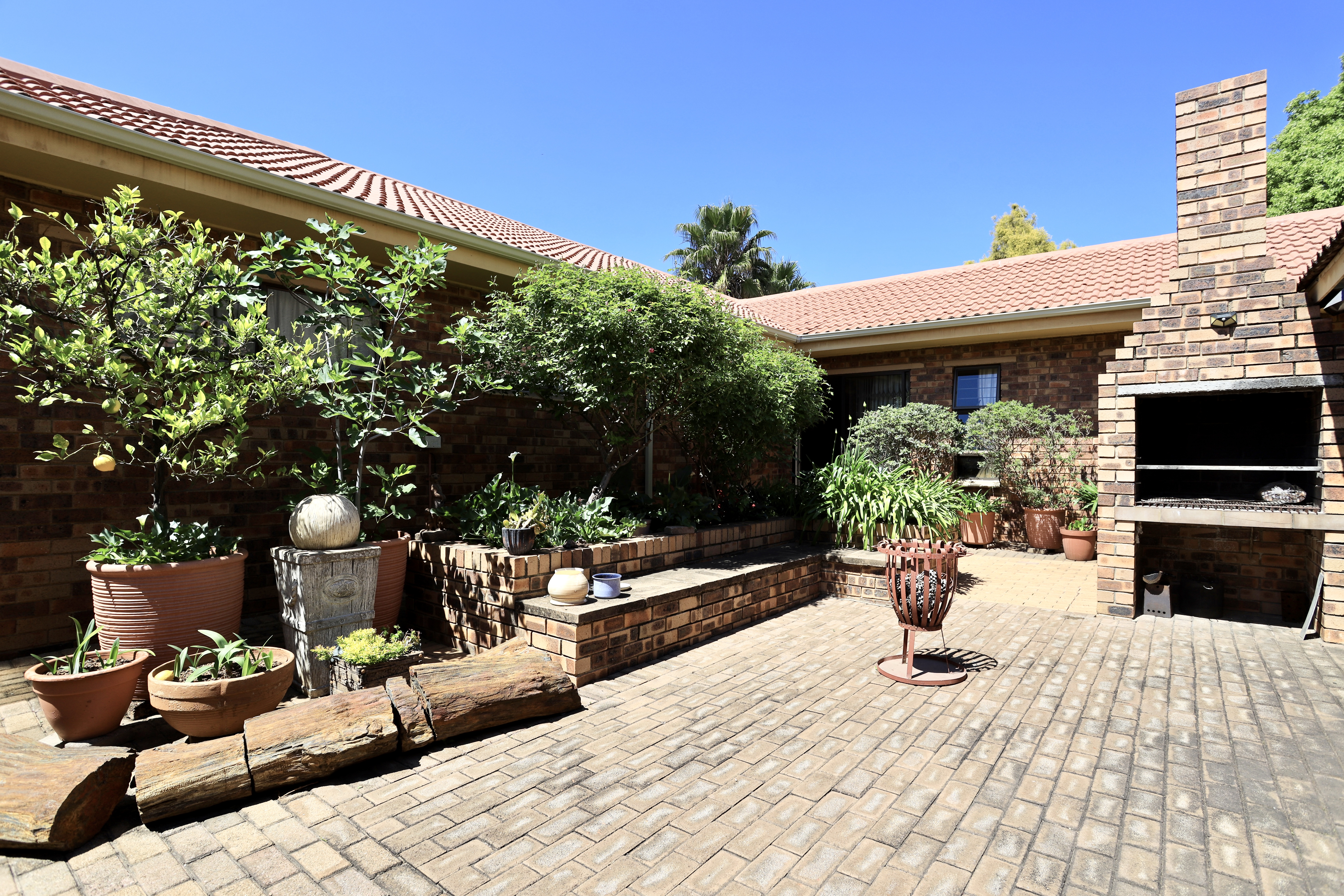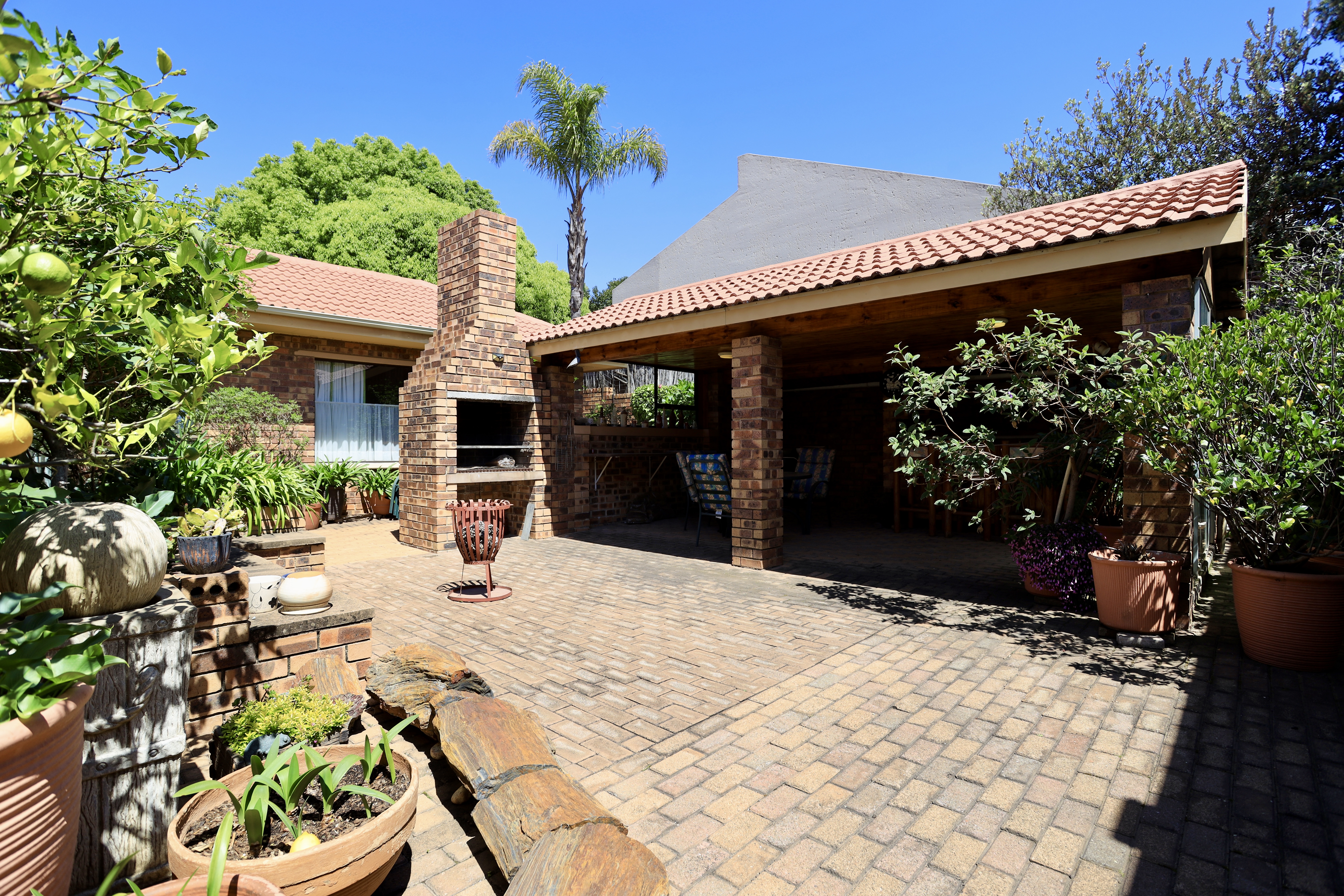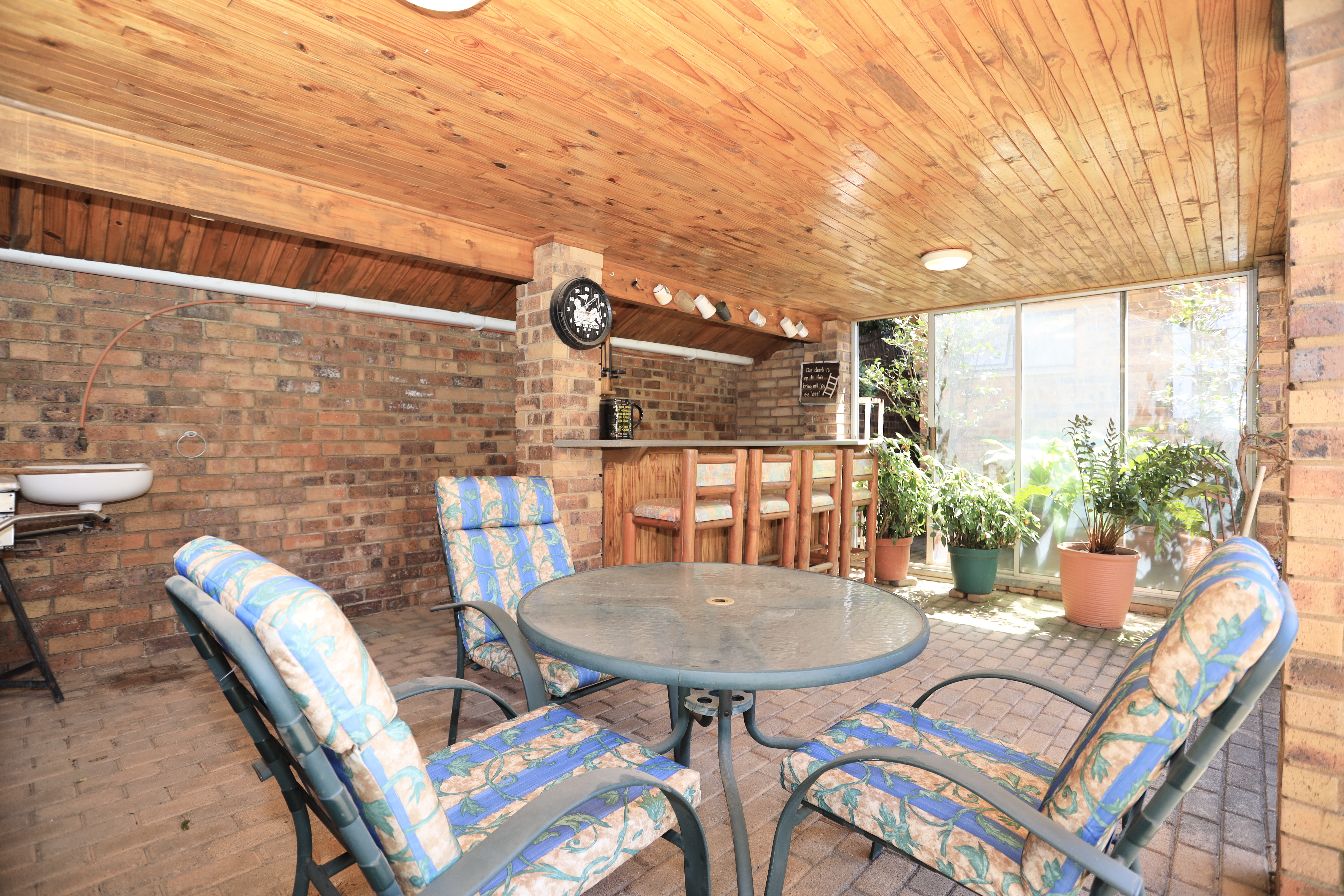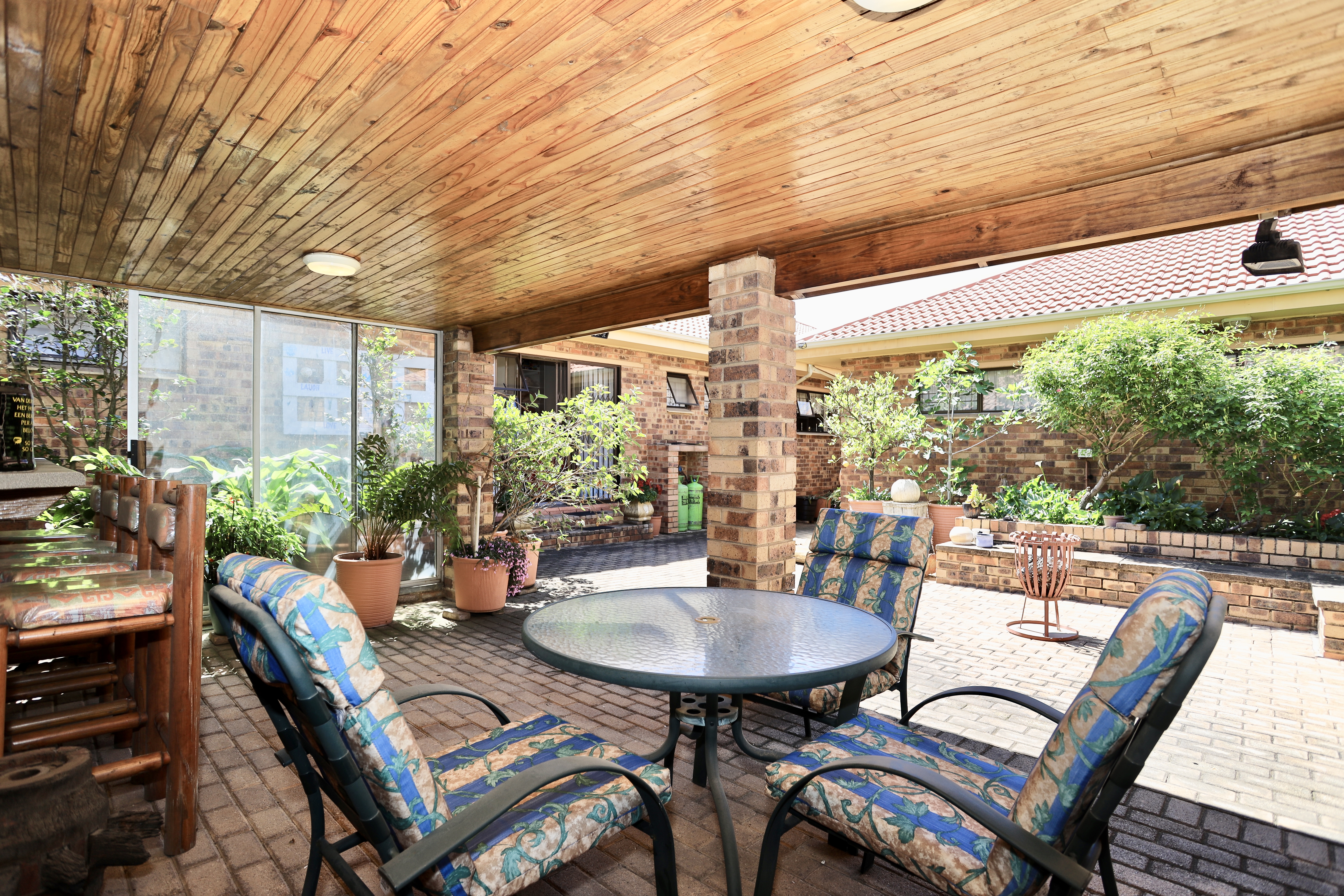 For entertainment, the lapa with a built-in braai and bar creates an ideal space for weekend get-togethers and celebrations. The separate flatlet includes an open-plan kitchen and lounge, along with a large bedroom and bathroom, making it perfect for guests, extended family, or even as a source of rental income. Parking is plentiful with four garages—two of which are automated—plus a double carport. The property features a borehole with a 2,500L JoJo tank equipped with a filtration system and a sprinkler system, ensuring easy maintenance. For added security, you'll find an electric fence, alarm system, and 3-phase electricity for peace of mind.