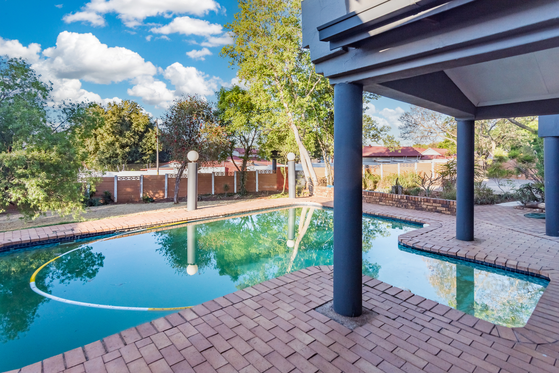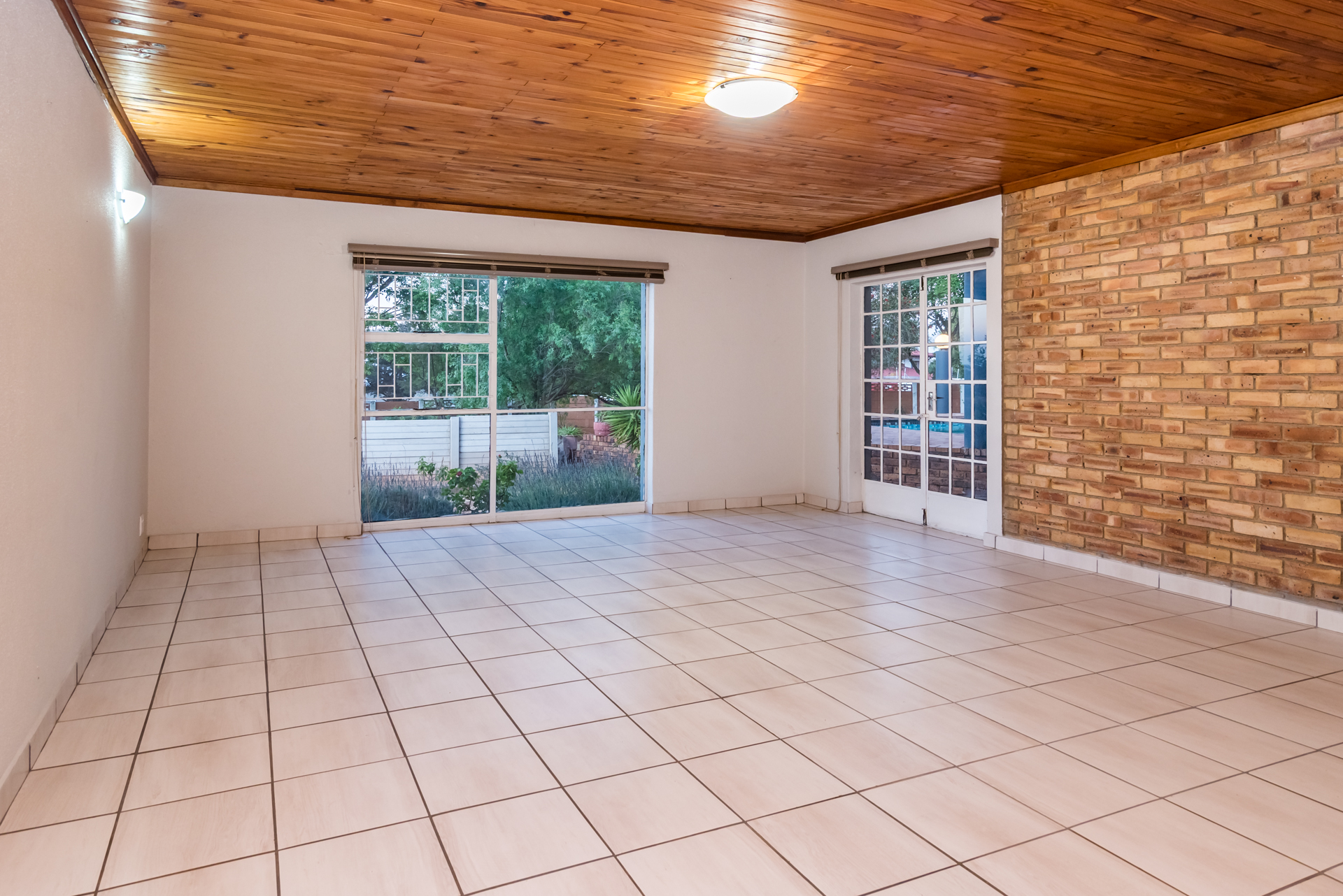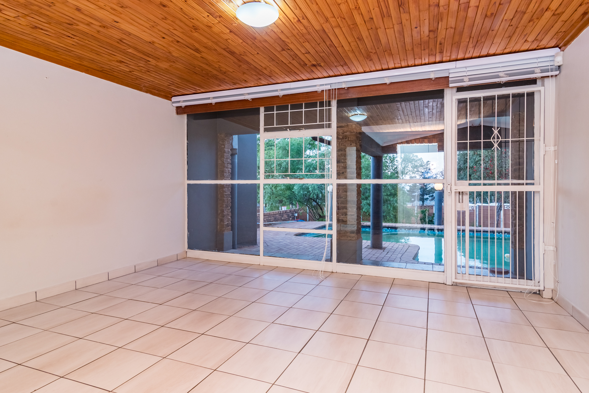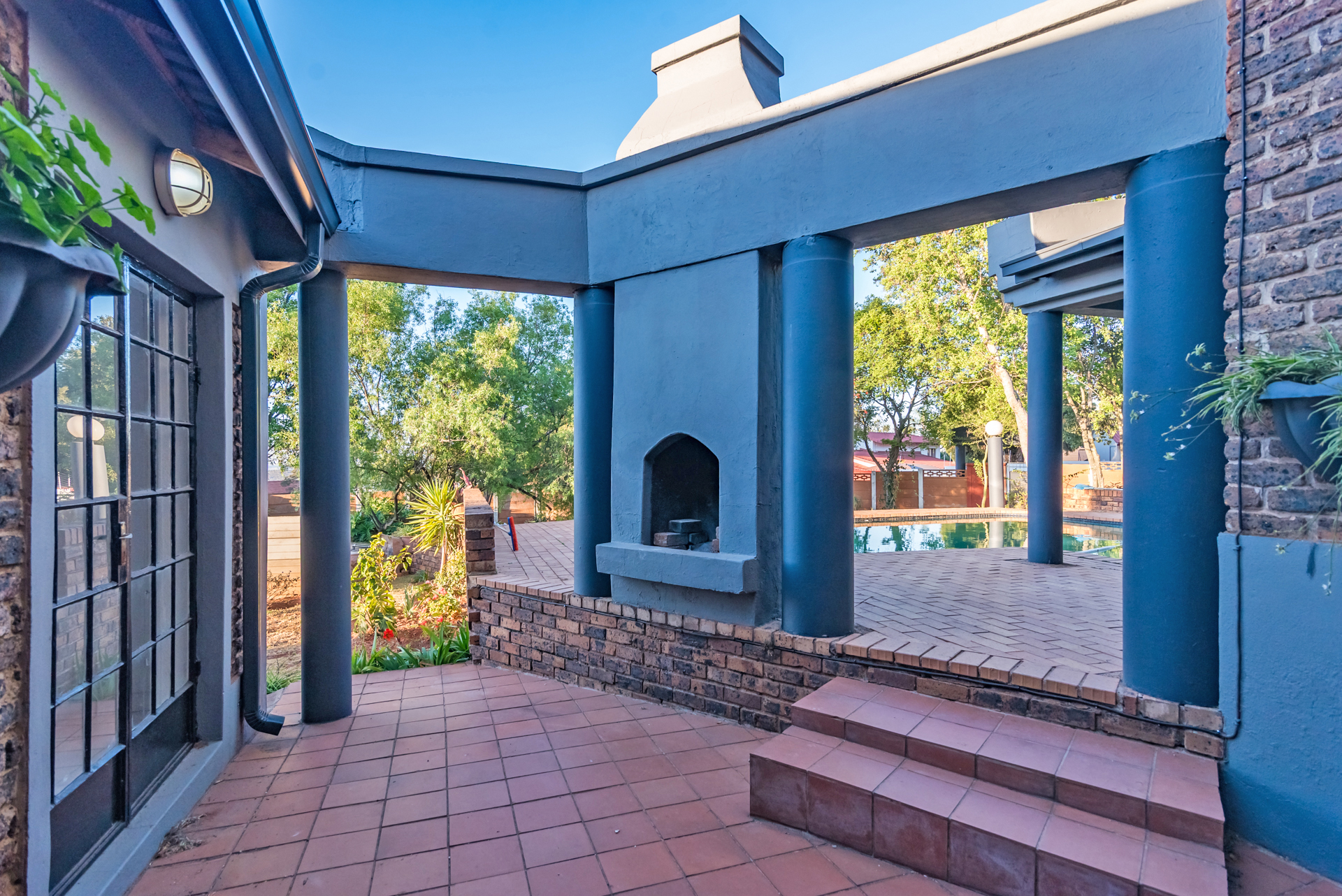 The living and dining areas are designed with functionality in mind, and while the spaces are more defined than open-plan, they create a sense of order and purpose throughout the home. From here, the property extends outward to the outdoor entertainment space, where a built-in braai and pool set the perfect scene for summer gatherings, weekend braais, and relaxed family time.