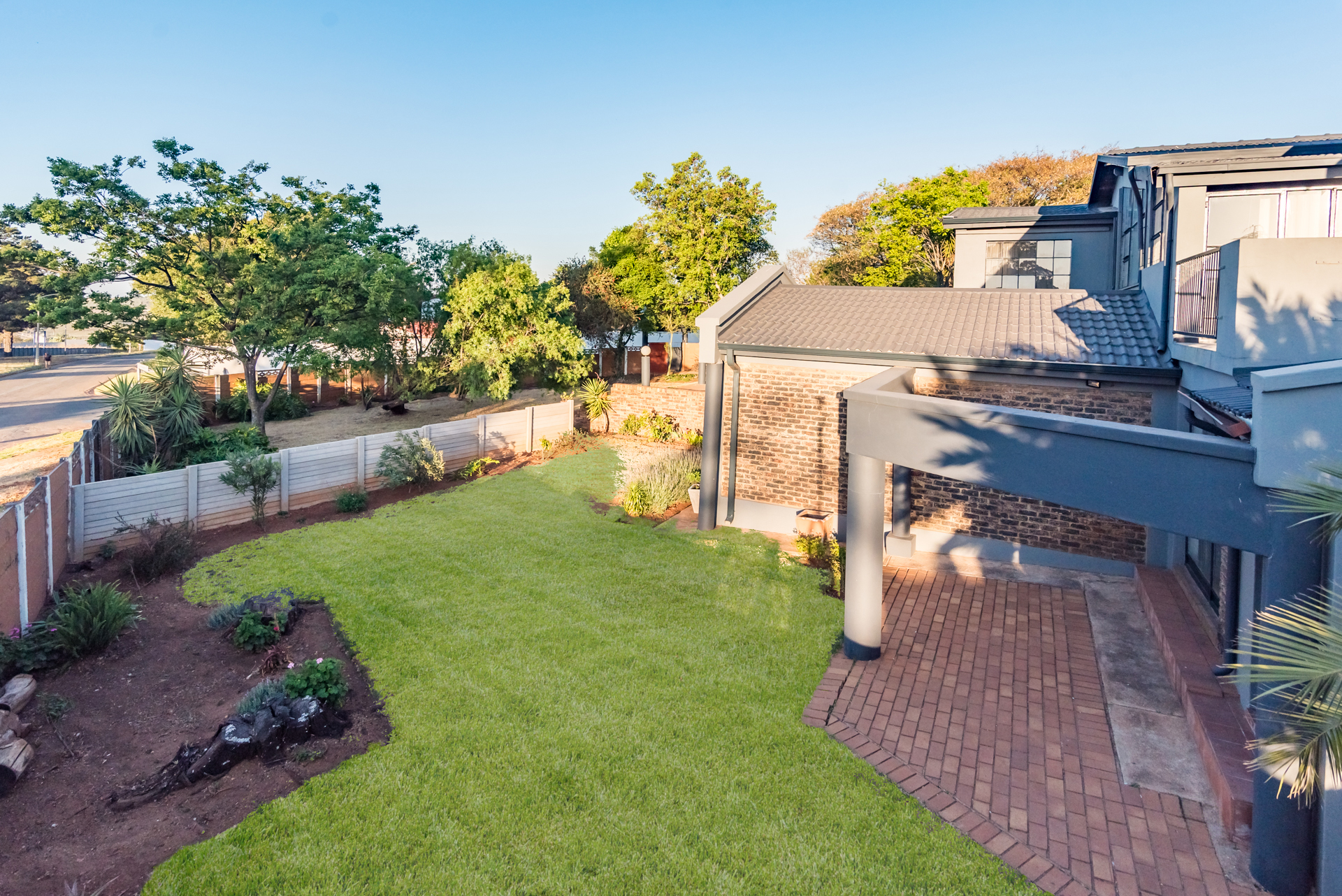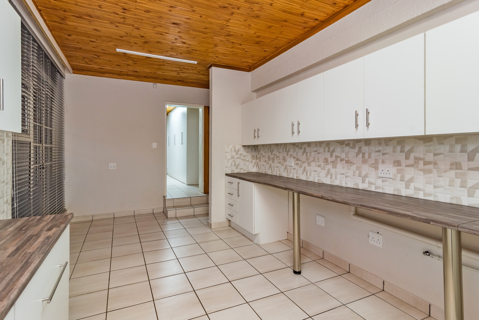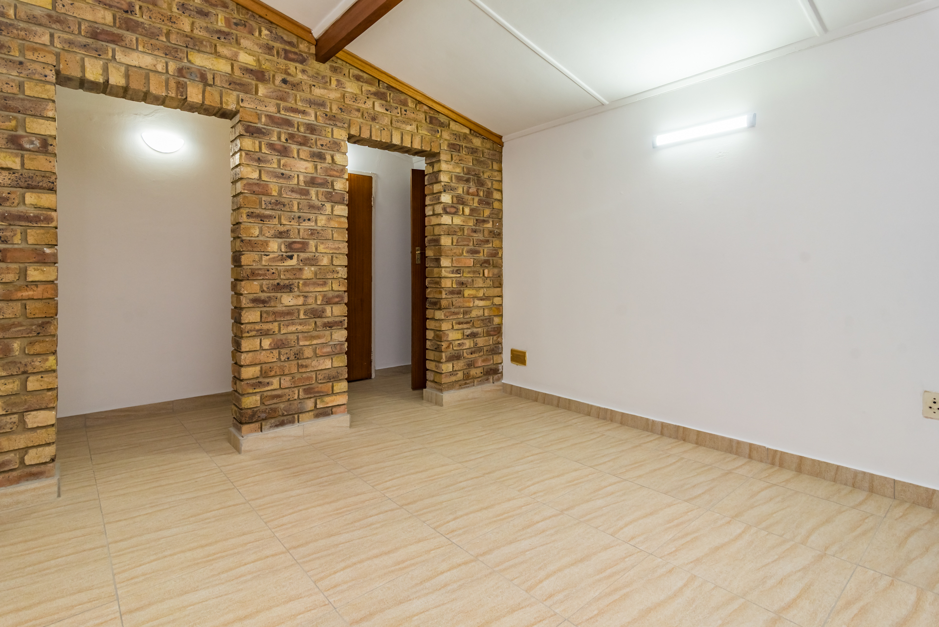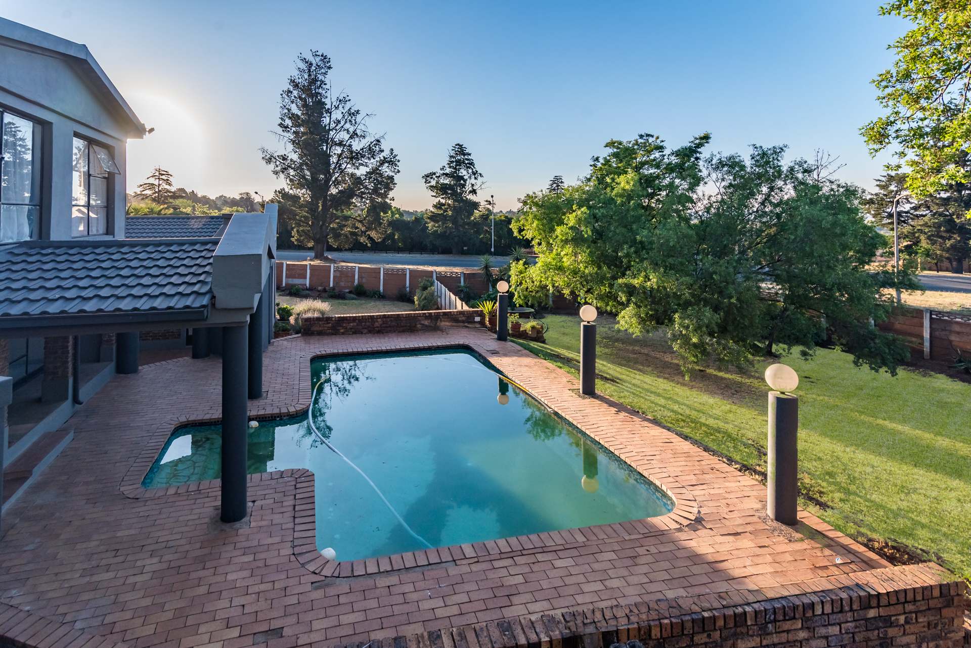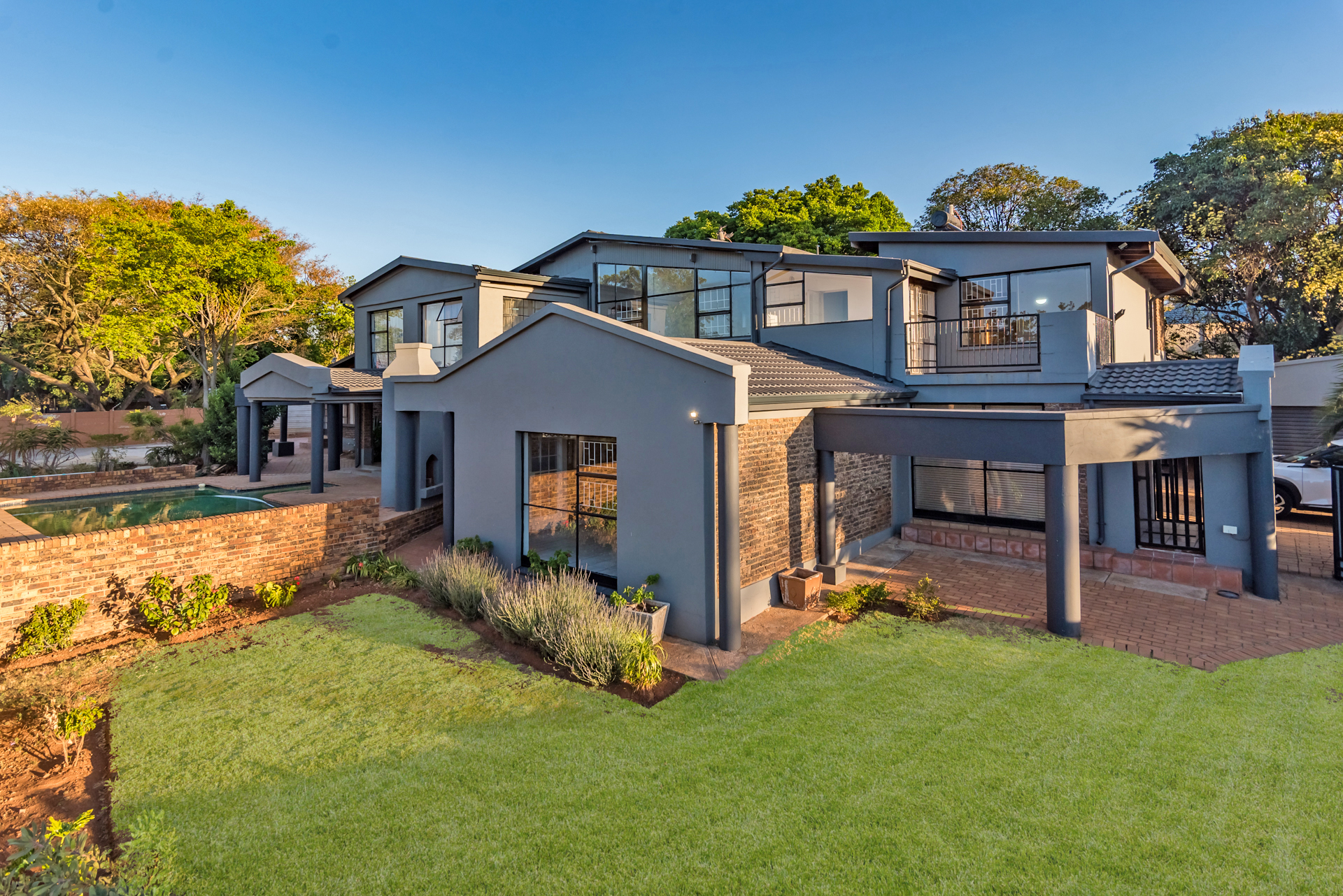 The living and dining areas are designed with functionality in mind, and while the spaces are more defined than open-plan, they create a sense of order and purpose throughout the home. From here, the property extends outward to the outdoor entertainment space, where a built-in braai and pool set the perfect scene for summer gatherings, weekend braais, and relaxed family time.