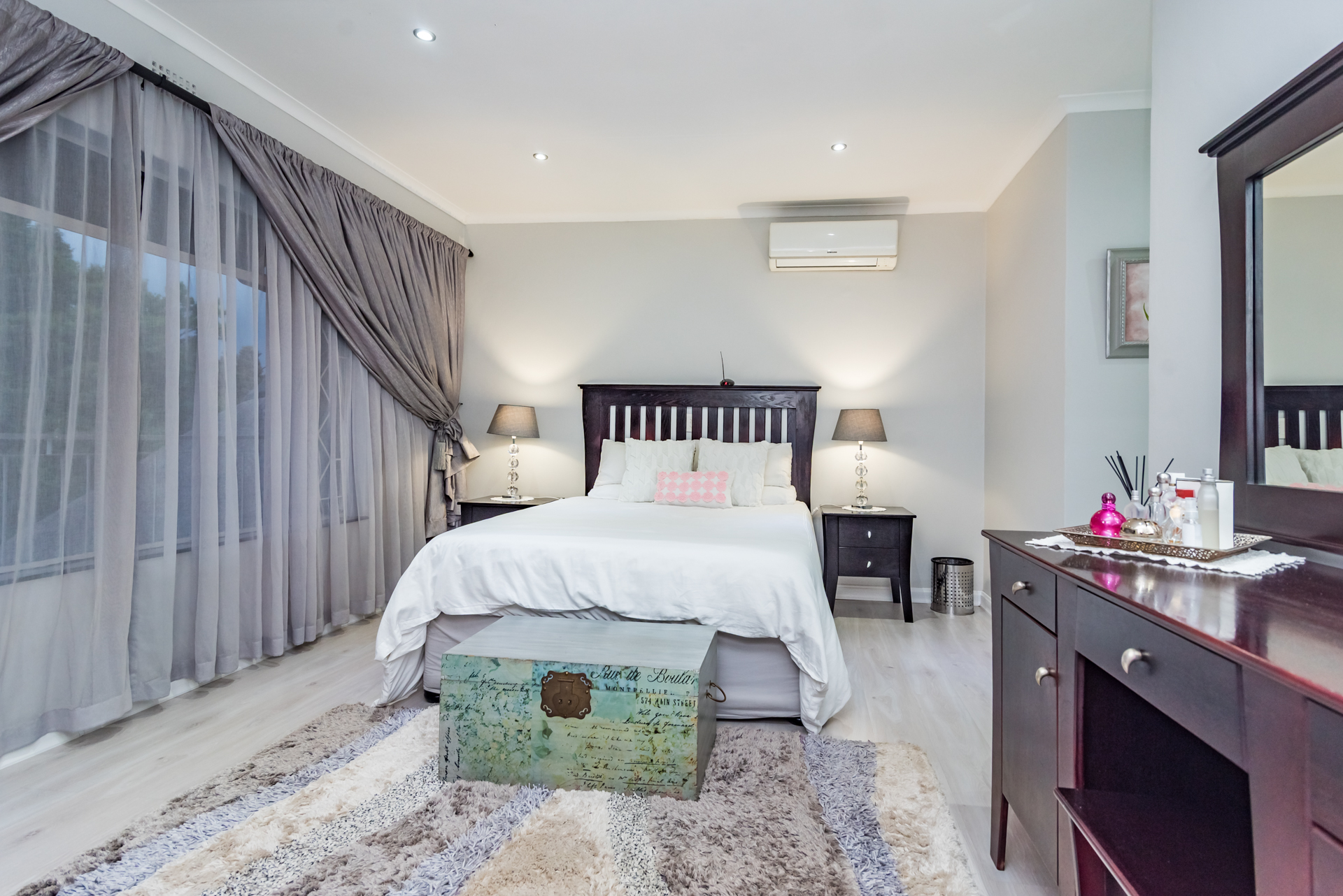 Outside, you’ll find a lapa with a built-in braai, a bar area, and a second lounge made for Saturday sport — basically, the ultimate weekend setup. The balcony overlooks the pool and landscaped garden, which together create the perfect backdrop for lazy summer afternoons or sundowners with friends. It’s a home that was made for good company and good times.