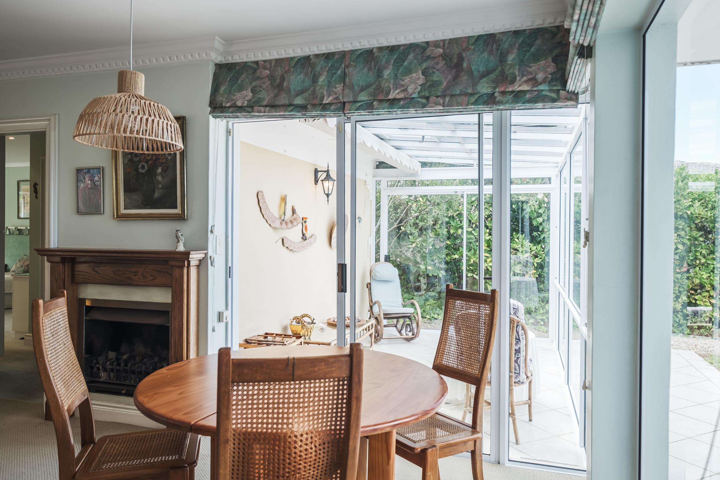 The open-plan living areas flow effortlessly, creating a warm and welcoming atmosphere. Large windows invite in natural light and garden views, enhancing the sense of space and calm.