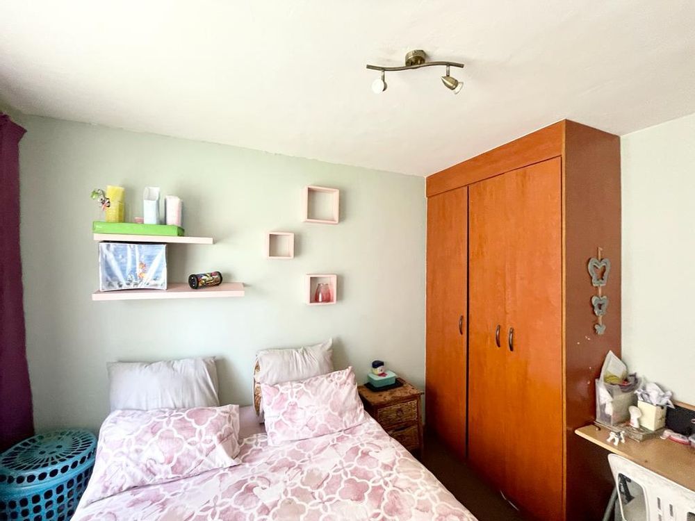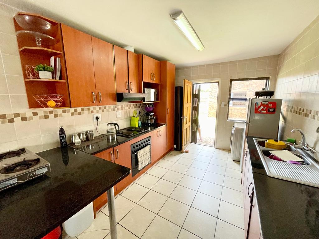 Open plan kitchen with built in cupboards plus granite tops, under counter oven with a four plate stove plus extraction fan. Kitchen also has a washing machine connection. Open plan kitchen overlooks an open plan living area. Two bedrooms with with built in cupboards with wall to wall carpets.