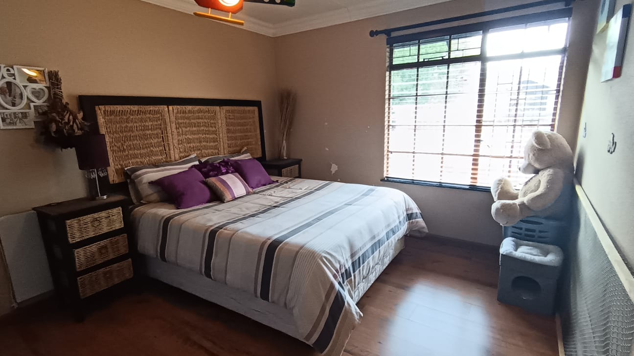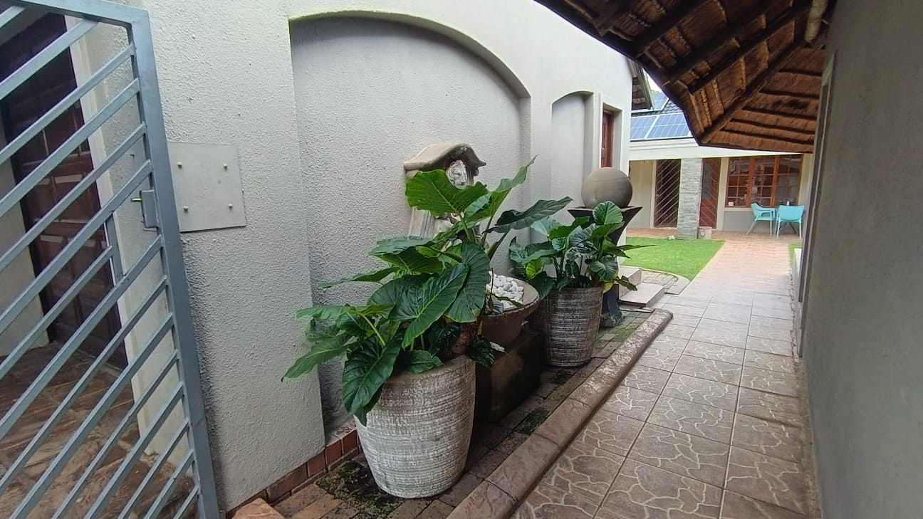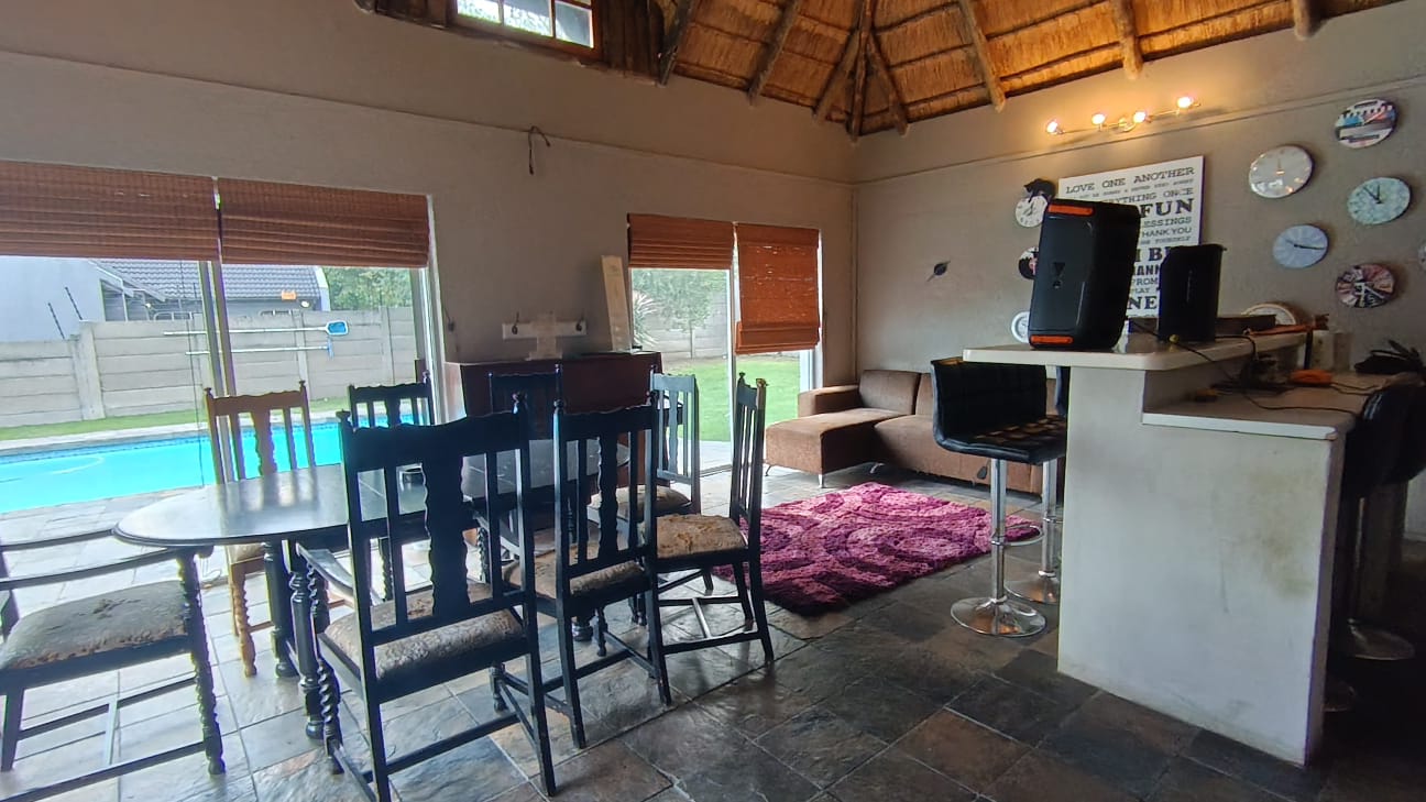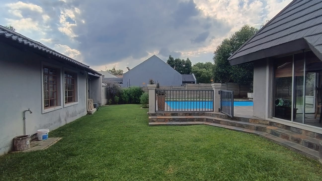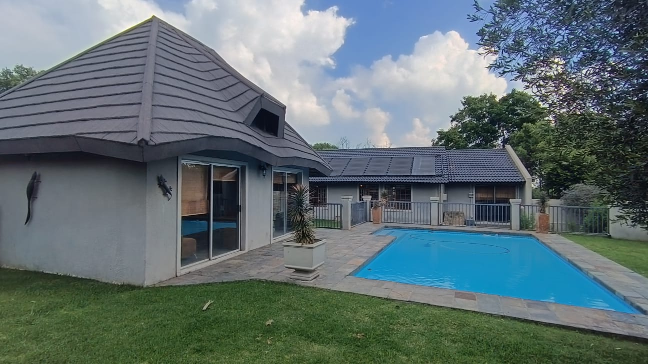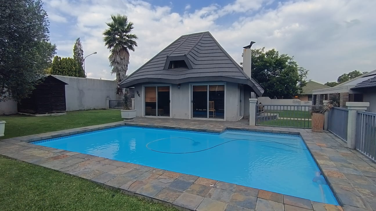 This neat, well-maintained, and move-in-ready family home offers the perfect combination of space, comfort, luxury, and exceptional entertainment features—ideal for modern family living. The home boasts four well-sized bedrooms and two full bathrooms, including a main en-suite. A separate study (or gym/home office) provides the ideal work-from-home solution, while a linen closet adds extra practicality. Living spaces are warm and inviting, featuring a large open-plan lounge, dining area, and kitchen, designed for effortless flow and everyday comfort. The lounge is fitted with a Jet Master fireplace, perfect for cozy evenings. The north-facing orientation ensures optimal natural light throughout the home. Stylish finishes include tiled and laminated flooring, fitted blinds, and a skylight. The modern kitchen offers granite countertops, a gas stove, and a separate scullery, making it both functional and elegant. Exceptional Entertainment & Outdoor Living Step outside and experience a true entertainer’s haven: Thatched lapa with Harvey tiles Built-in braai and built-in bar Large heated swimming pool with 6 solar panels Covered patio overlooking a tranquil, well-established garden Power, Water & Extras 5kW inverter system with 4.8kW battery and 9 solar panels 2,500L JoJo water tank Fibre-ready Domestic quarters Two Wendy houses (storage & garden tools) Parking & Security Double automated garage Carport for up to 5 vehicles Automated access gate This spacious, versatile property offers everything a family could want—luxury, convenience, and outstanding entertainment spaces—all set on a generous 1,025 sqm stand. This is truly a move-in-and-stay home. Don’t snooze... you’ll lose!