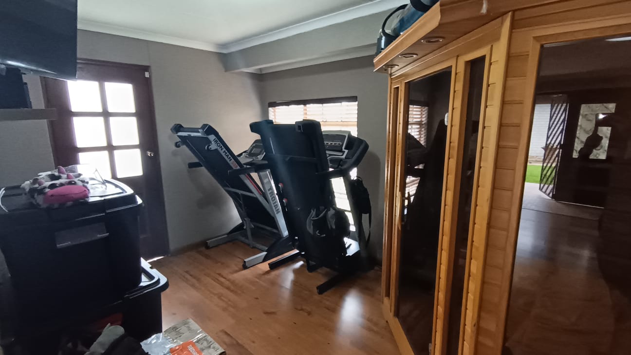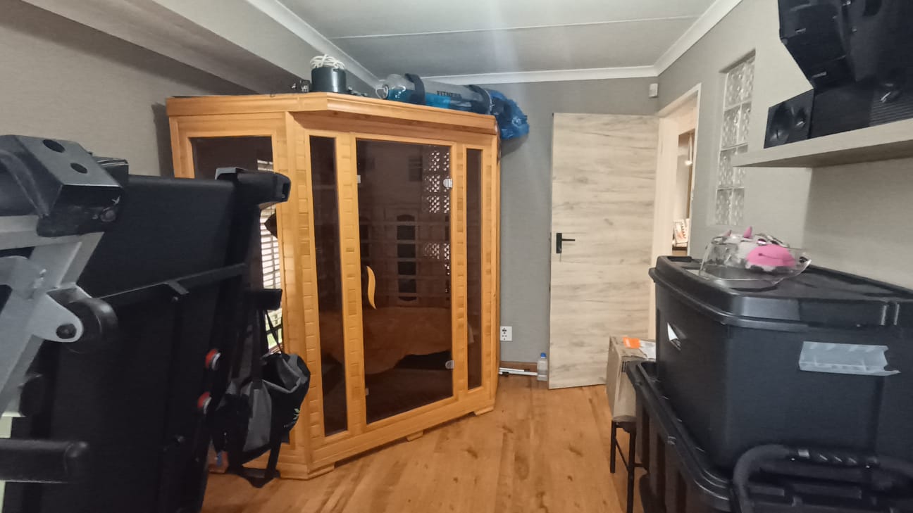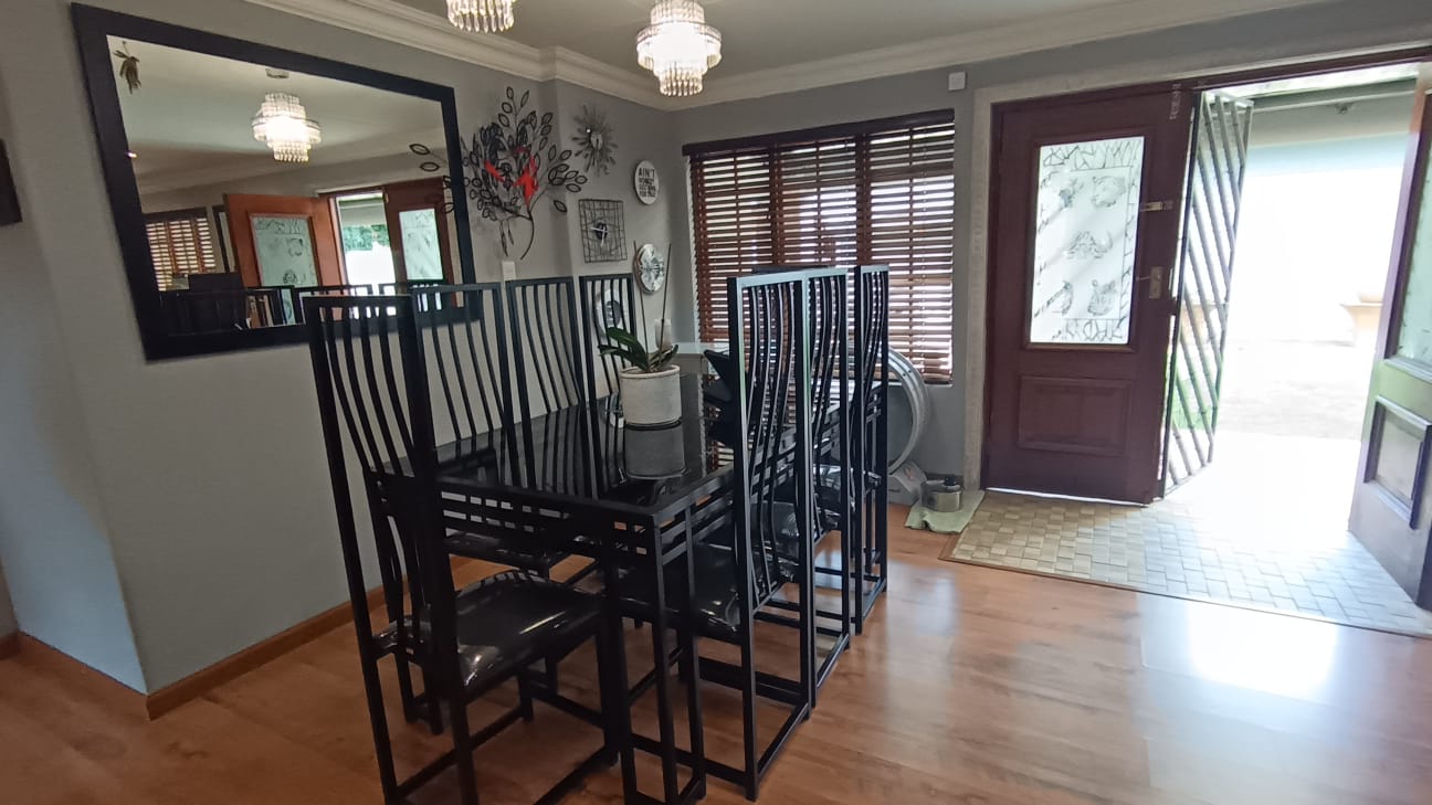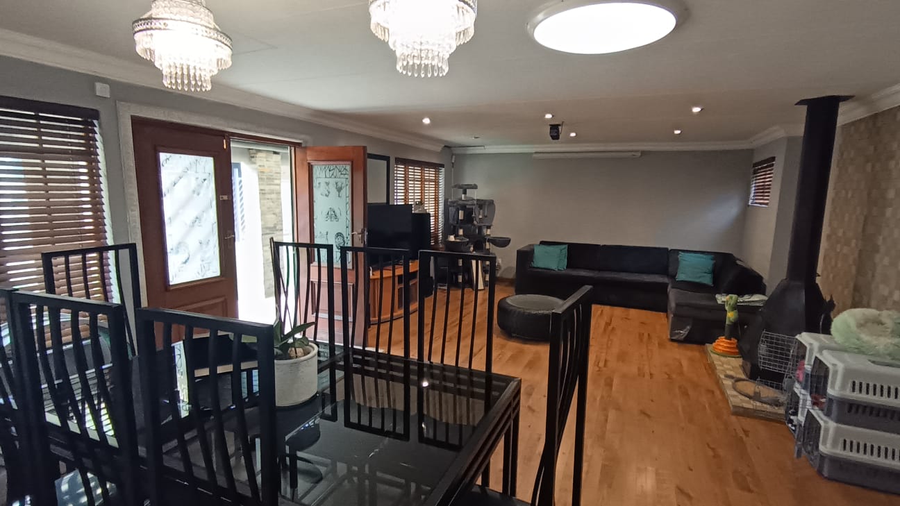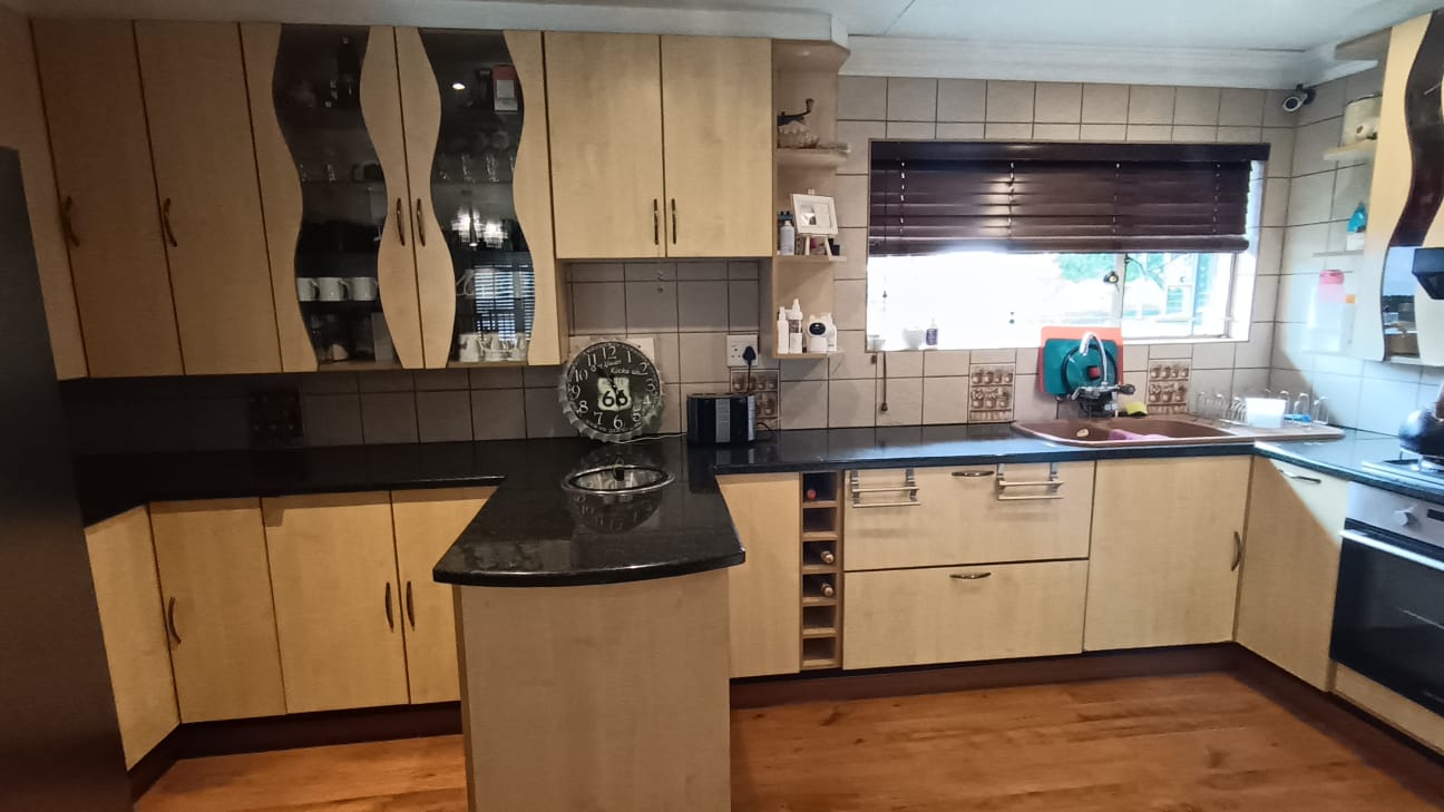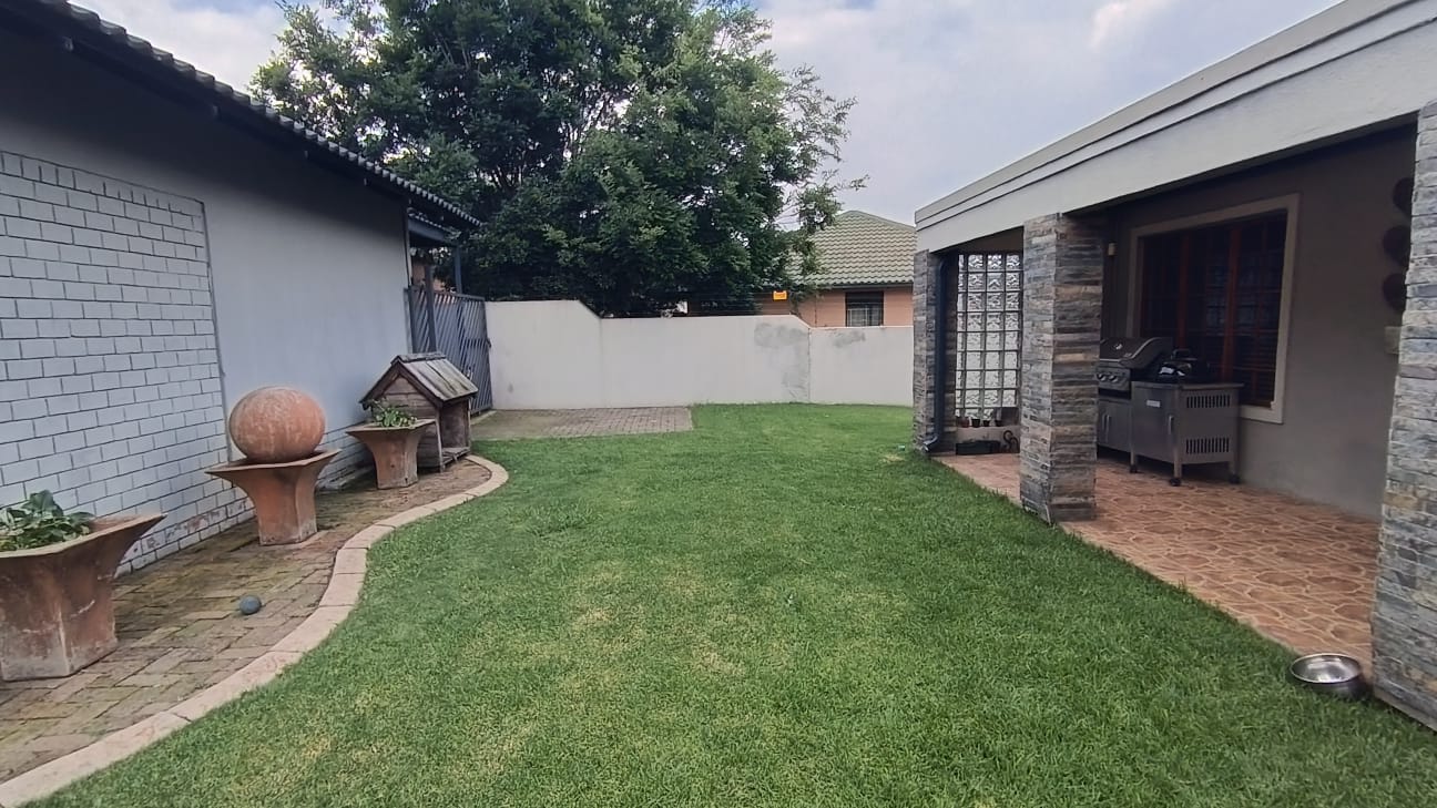 This neat, well-maintained, and move-in-ready family home offers the perfect combination of space, comfort, luxury, and exceptional entertainment features—ideal for modern family living. The home boasts four well-sized bedrooms and two full bathrooms, including a main en-suite. A separate study (or gym/home office) provides the ideal work-from-home solution, while a linen closet adds extra practicality. Living spaces are warm and inviting, featuring a large open-plan lounge, dining area, and kitchen, designed for effortless flow and everyday comfort. The lounge is fitted with a Jet Master fireplace, perfect for cozy evenings. The north-facing orientation ensures optimal natural light throughout the home. Stylish finishes include tiled and laminated flooring, fitted blinds, and a skylight. The modern kitchen offers granite countertops, a gas stove, and a separate scullery, making it both functional and elegant. Exceptional Entertainment & Outdoor Living Step outside and experience a true entertainer’s haven: Thatched lapa with Harvey tiles Built-in braai and built-in bar Large heated swimming pool with 6 solar panels Covered patio overlooking a tranquil, well-established garden Power, Water & Extras 5kW inverter system with 4.8kW battery and 9 solar panels 2,500L JoJo water tank Fibre-ready Domestic quarters Two Wendy houses (storage & garden tools) Parking & Security Double automated garage Carport for up to 5 vehicles Automated access gate This spacious, versatile property offers everything a family could want—luxury, convenience, and outstanding entertainment spaces—all set on a generous 1,025 sqm stand. This is truly a move-in-and-stay home. Don’t snooze... you’ll lose!