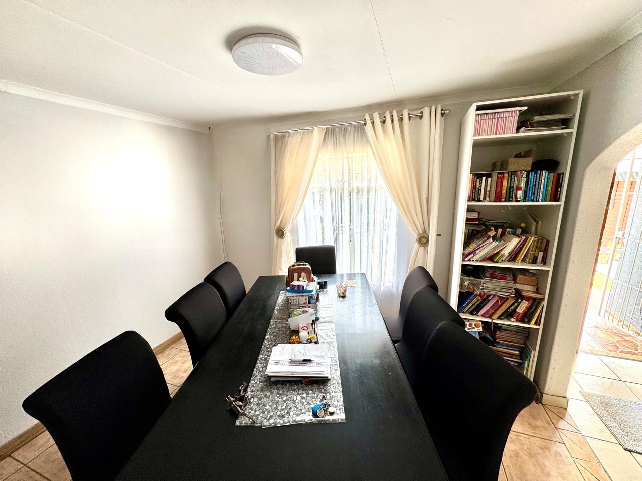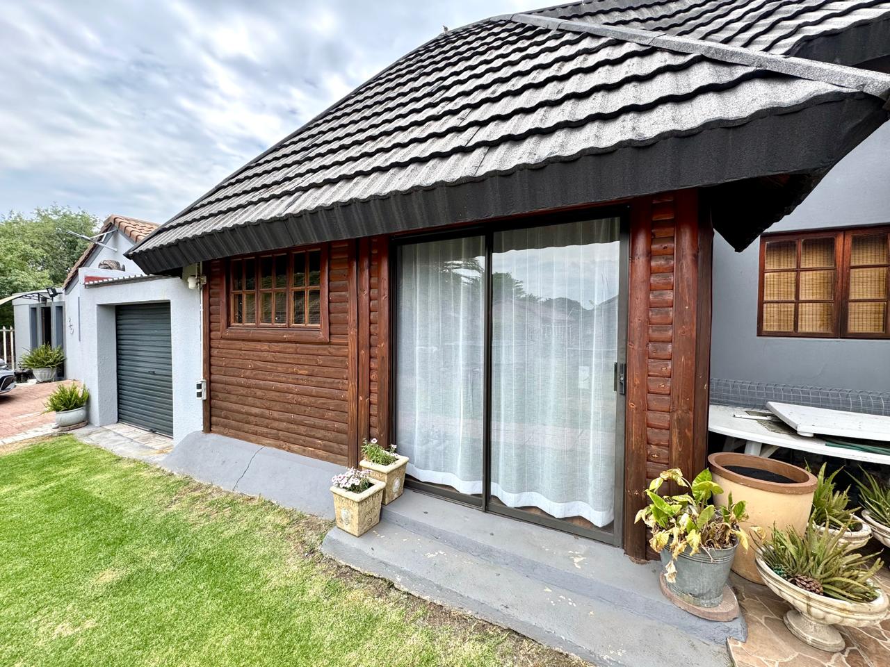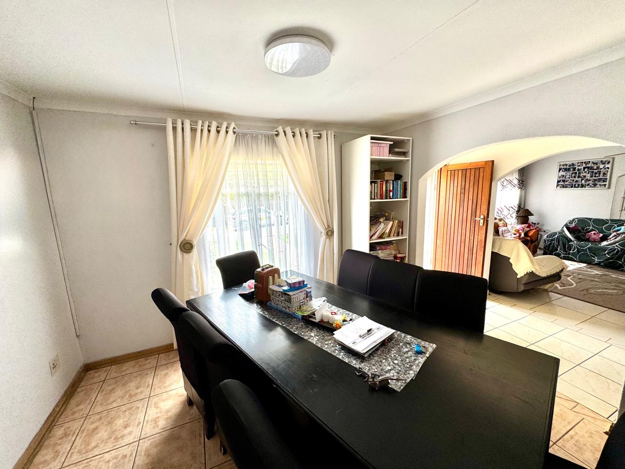 The main house welcomes you through a foyer that opens into a bright and spacious living area. The lounge provide a comfortable setting for relaxation, while the separate dining area is perfect for family gatherings. Extra living area that can be used as a tv room or study area. The kitchen is a standout feature with built in cupboards with solid granite tops. Kitchen also has a pantry cupboard that ensures ample storage space. Small laundry room in passage with washing machine connection plus shelves.