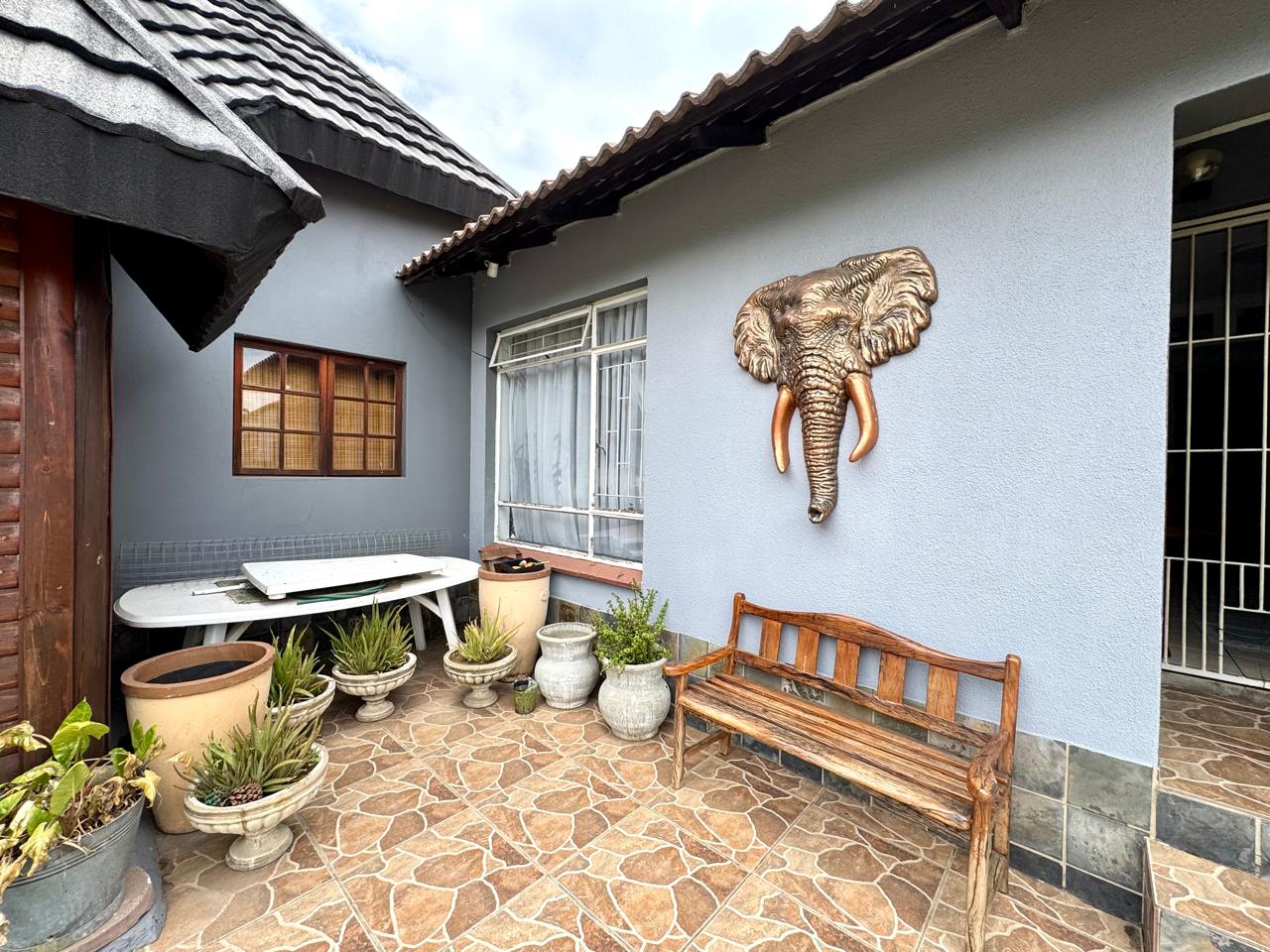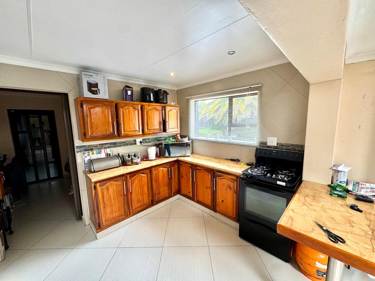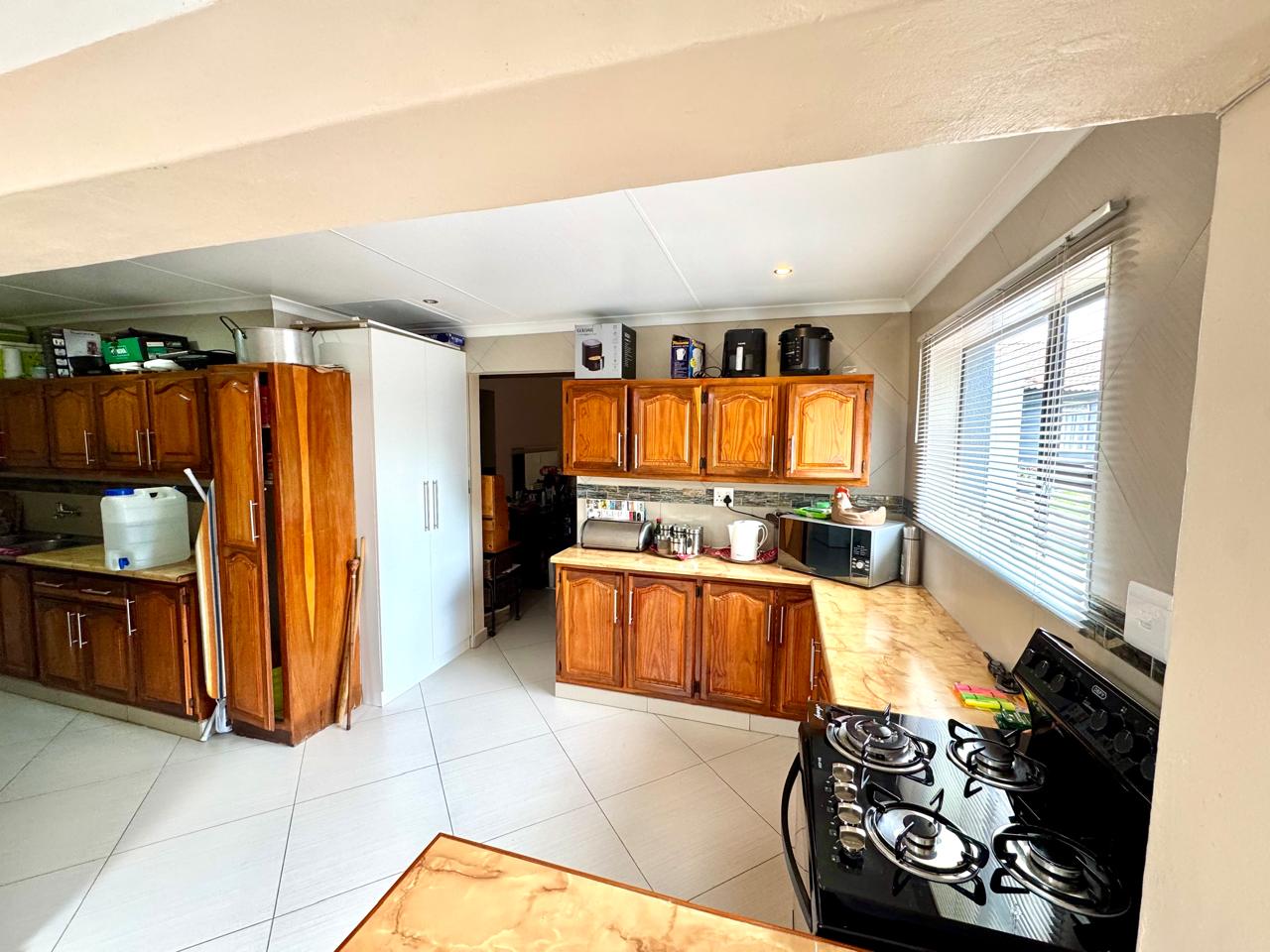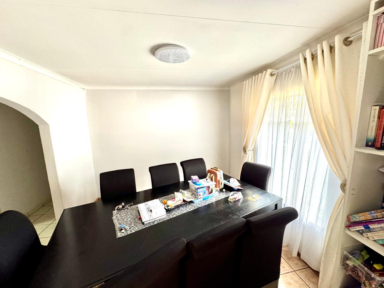 The main house welcomes you through a foyer that opens into a bright and spacious living area. The lounge provide a comfortable setting for relaxation, while the separate dining area is perfect for family gatherings. Extra living area that can be used as a tv room or study area. The kitchen is a standout feature with built in cupboards with solid granite tops. Kitchen also has a pantry cupboard that ensures ample storage space. Small laundry room in passage with washing machine connection plus shelves.