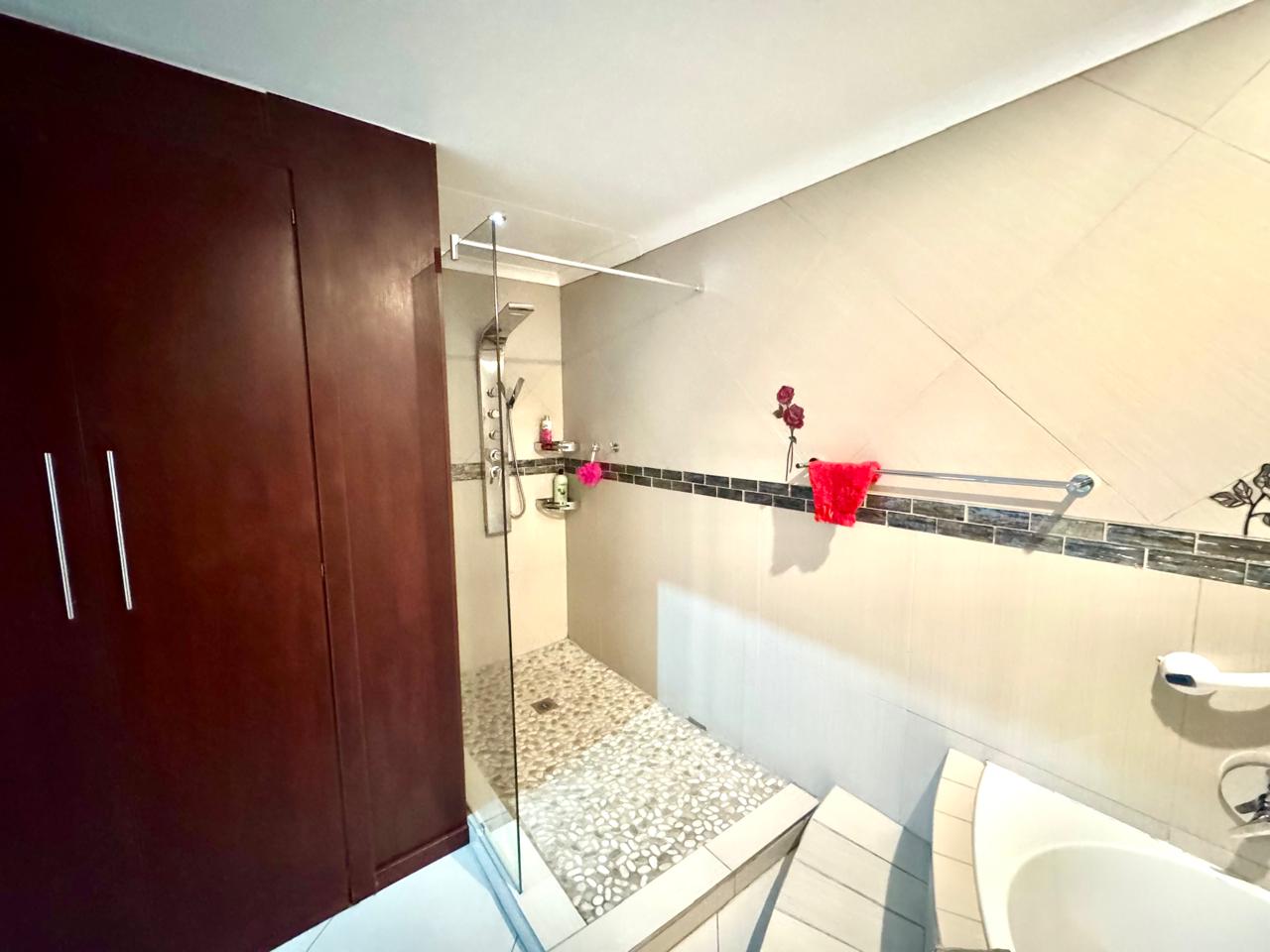 Three bedrooms with built in cupboards. Main bedroom has a walk in wardrobe. Two bathrooms, where one bathroom is the main ensuite.