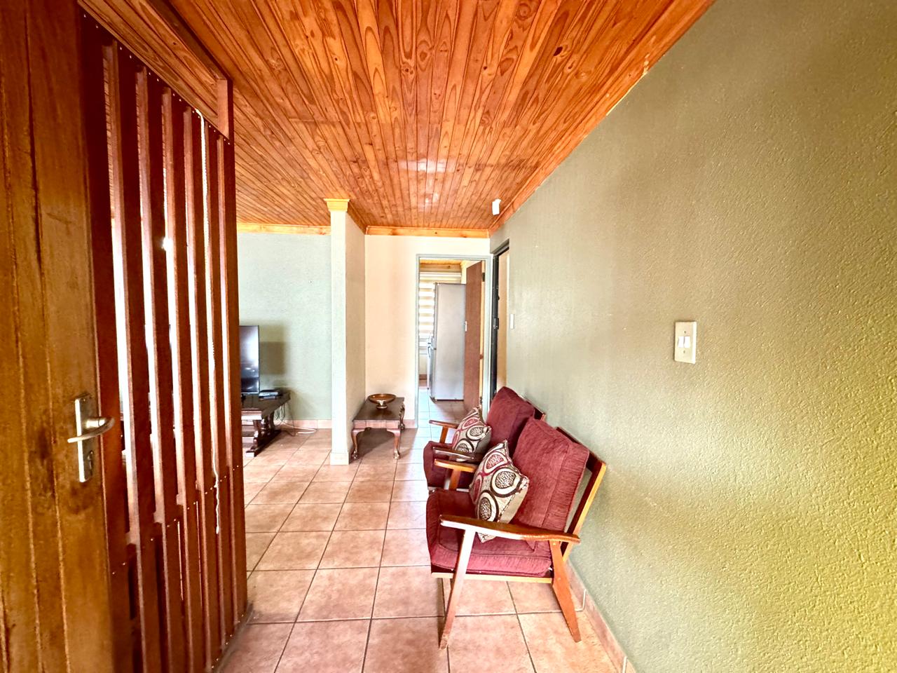 This neat and well-maintained home offers a perfect blend of comfort, functionality, and charm. The property features a beautifully laid-out garden with a lush green lawn, creating an inviting outdoor atmosphere. Inside, there are two spacious living areas, both fully tiled and enhanced with elegant wooden ceilings, modern blinds, and a Jetmaster fireplace — ideal for cozy family gatherings or entertaining guests.