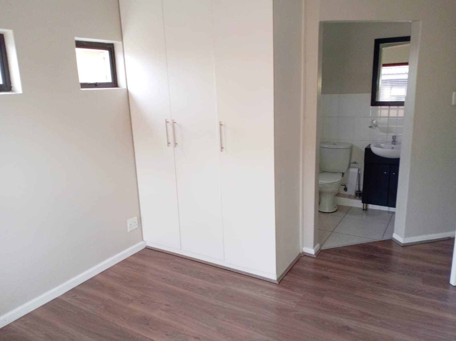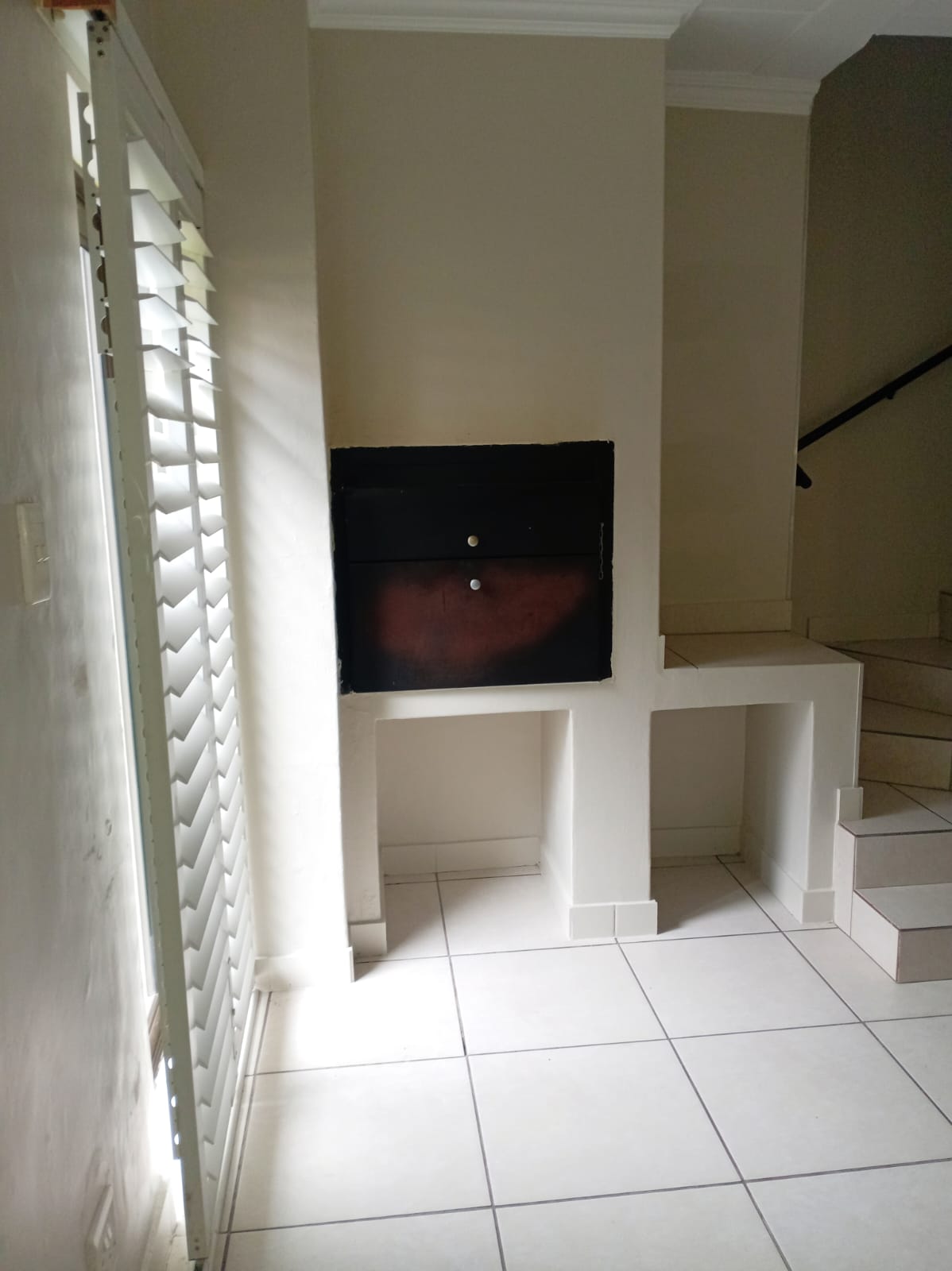 This beautifully maintained duplex offers modern, comfortable living with excellent security—perfect for families or professionals. The home features an open-plan living and dining area with an indoor braai, a modern kitchen with ample cupboard space, and three spacious bedrooms, each with its own bathroom. Additional conveniences include laminated flooring throughout, water included, prepaid electricity, and an inverter for essential backup power. The unit also offers a double garage with extra built-in cupboards, along with estate security, access control, and guards on site. Not pet-friendly. A clean, secure, and well-appointed home ready for immediate occupation.