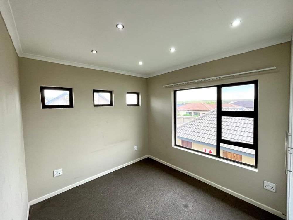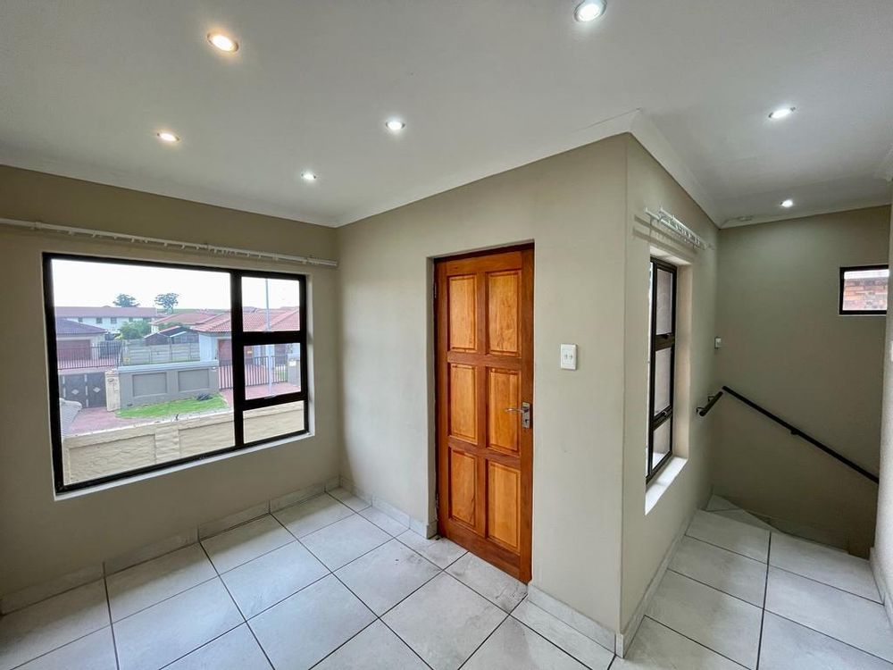 The open-plan living area on the main floor features tiled flooring, creating a seamless and easy-to-maintain space. Adding to the allure, a built-in braai enhances the property's appeal, providing a convenient option for outdoor cooking and entertaining.