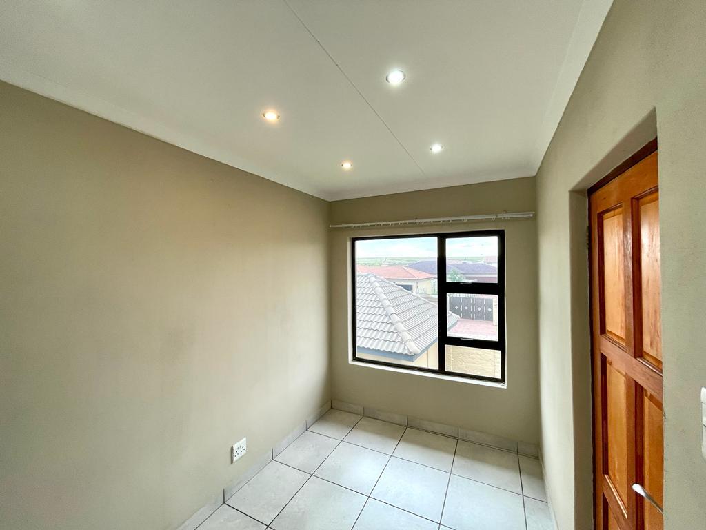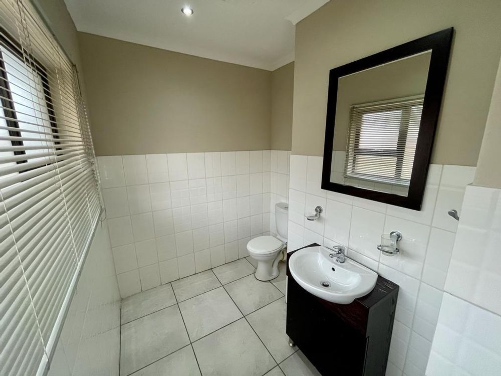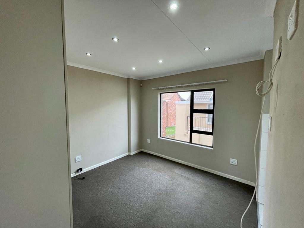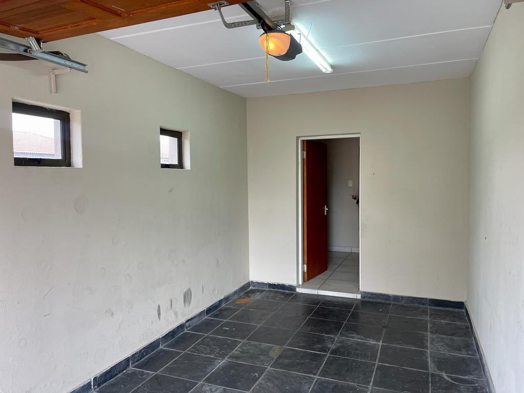 Nestled within a secure and well-kept complex, this townhouse offers a harmonious blend of safety and serenity. The well-maintained property exudes a sense of contemporary living, beginning with the open-plan kitchen that showcases modern melamine cupboards adorned with sleek granite tops. The kitchen is equipped with a four-plate electric stove, complemented by an undercounter oven and an efficient extraction fan, catering to culinary enthusiasts with a penchant for modern amenities.
