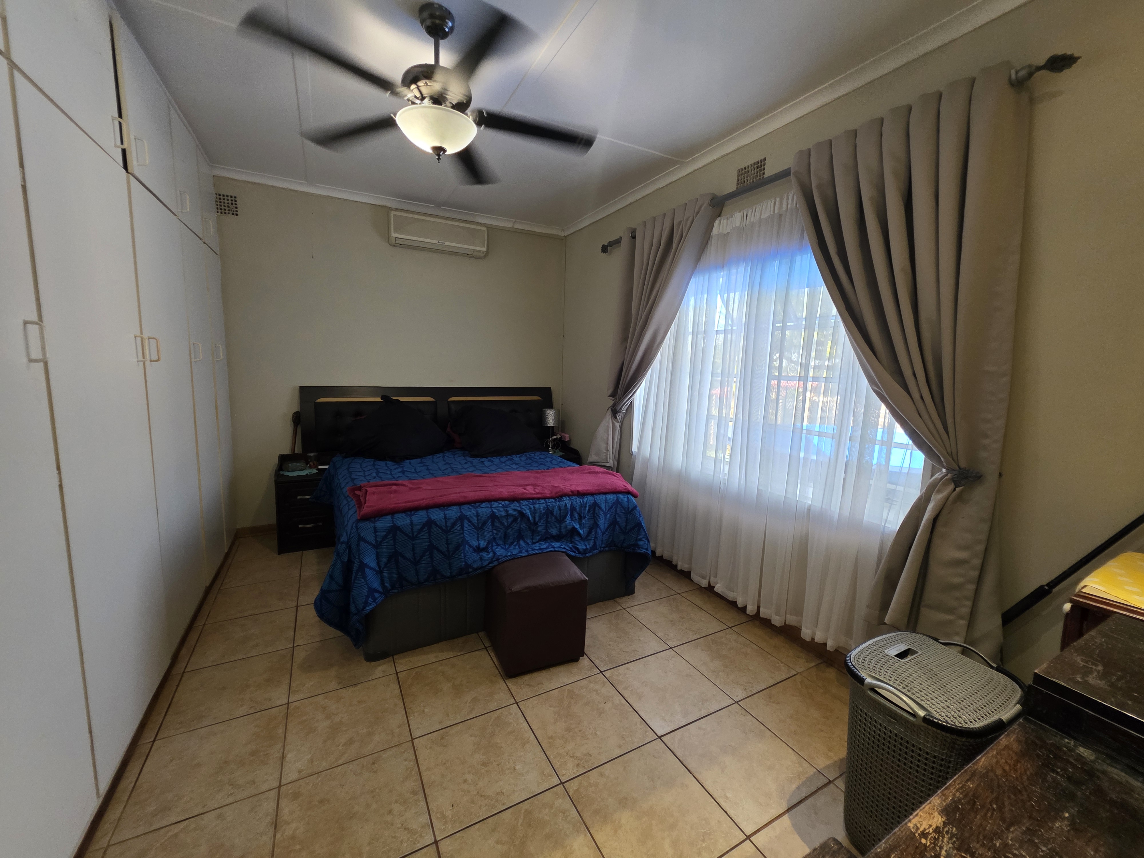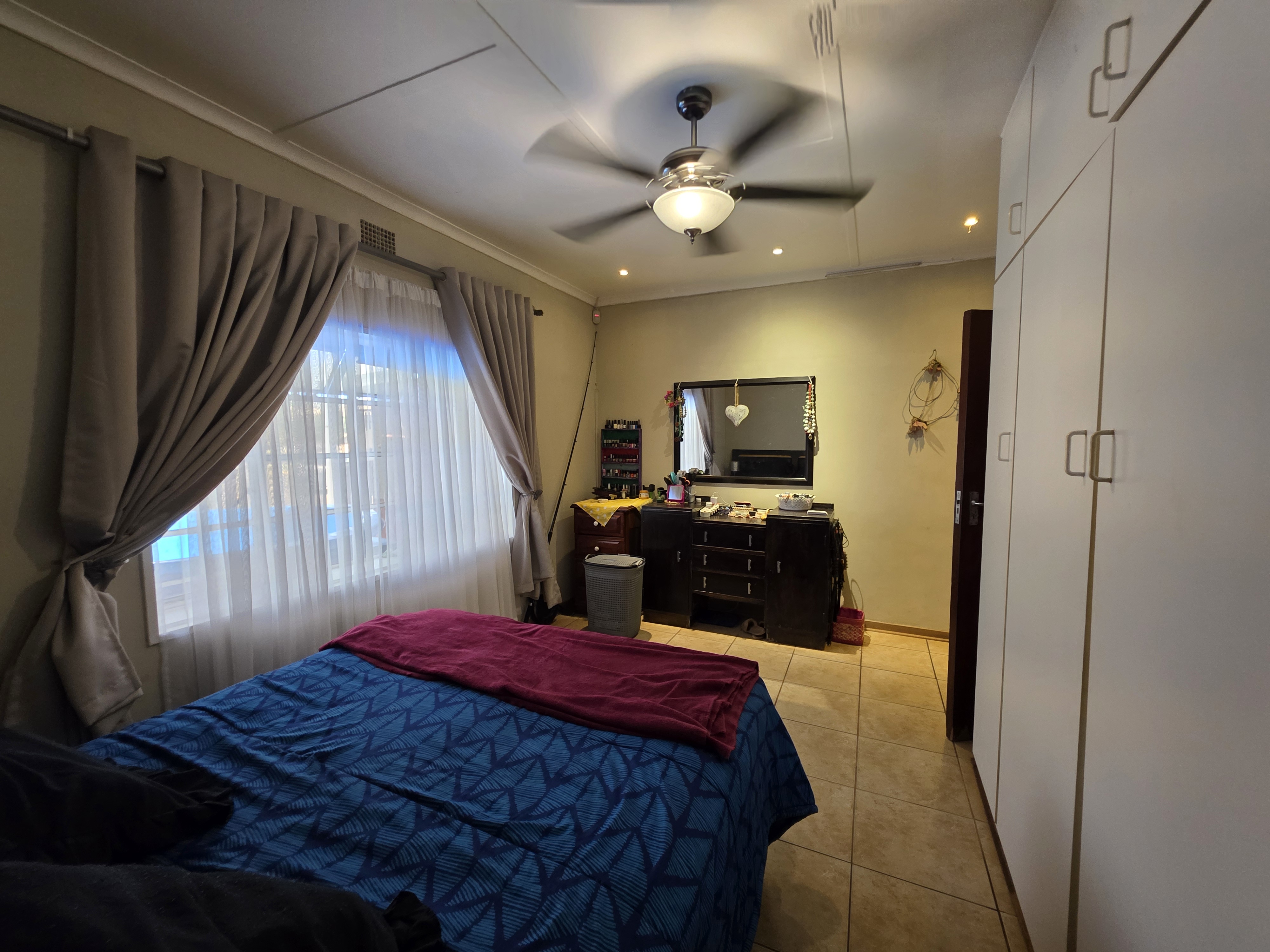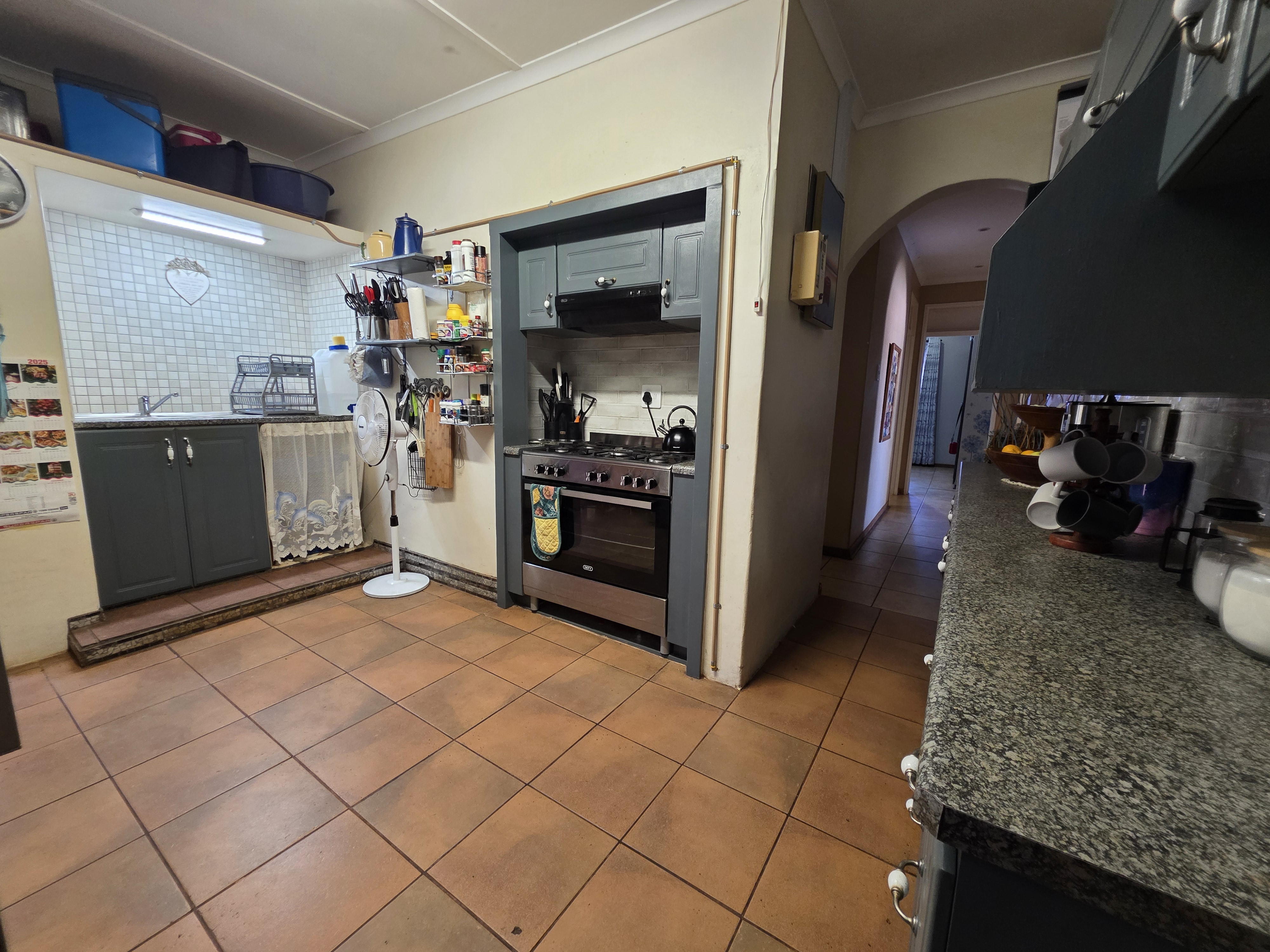 This well-maintained 3-bedroom home is perfectly situated within walking distance of town, offering both convenience and comfort. Each bedroom features built-in cupboards, while the modern bathroom boasts a spacious walk-in shower. The fully fitted kitchen, complete with a gas stove, ensures effortless meal preparation.