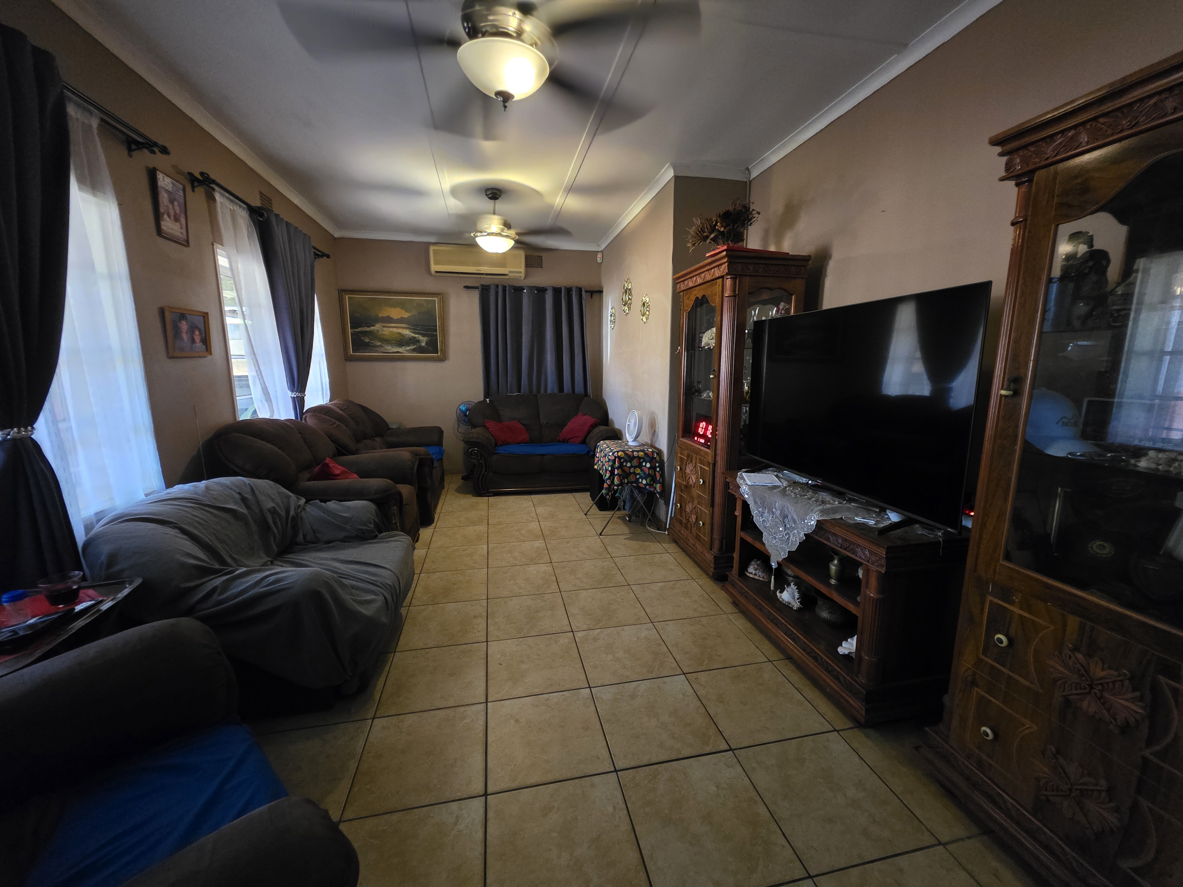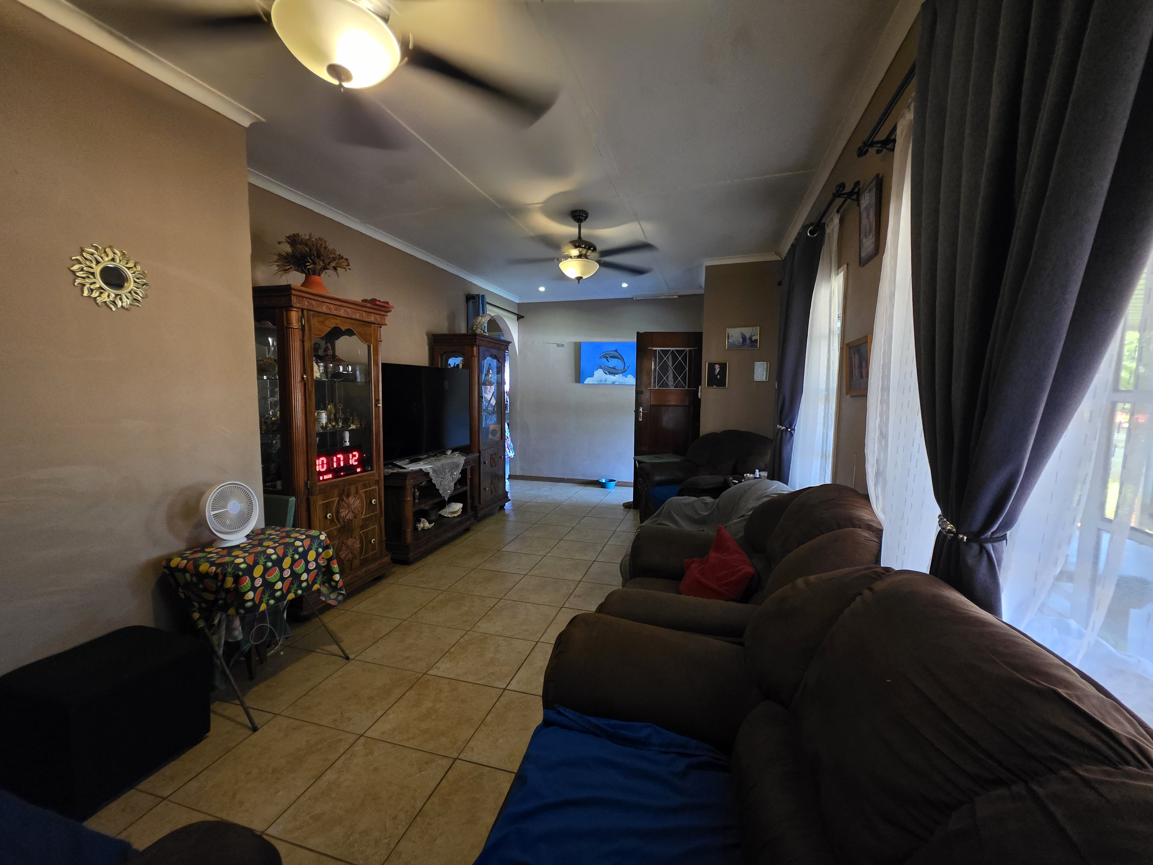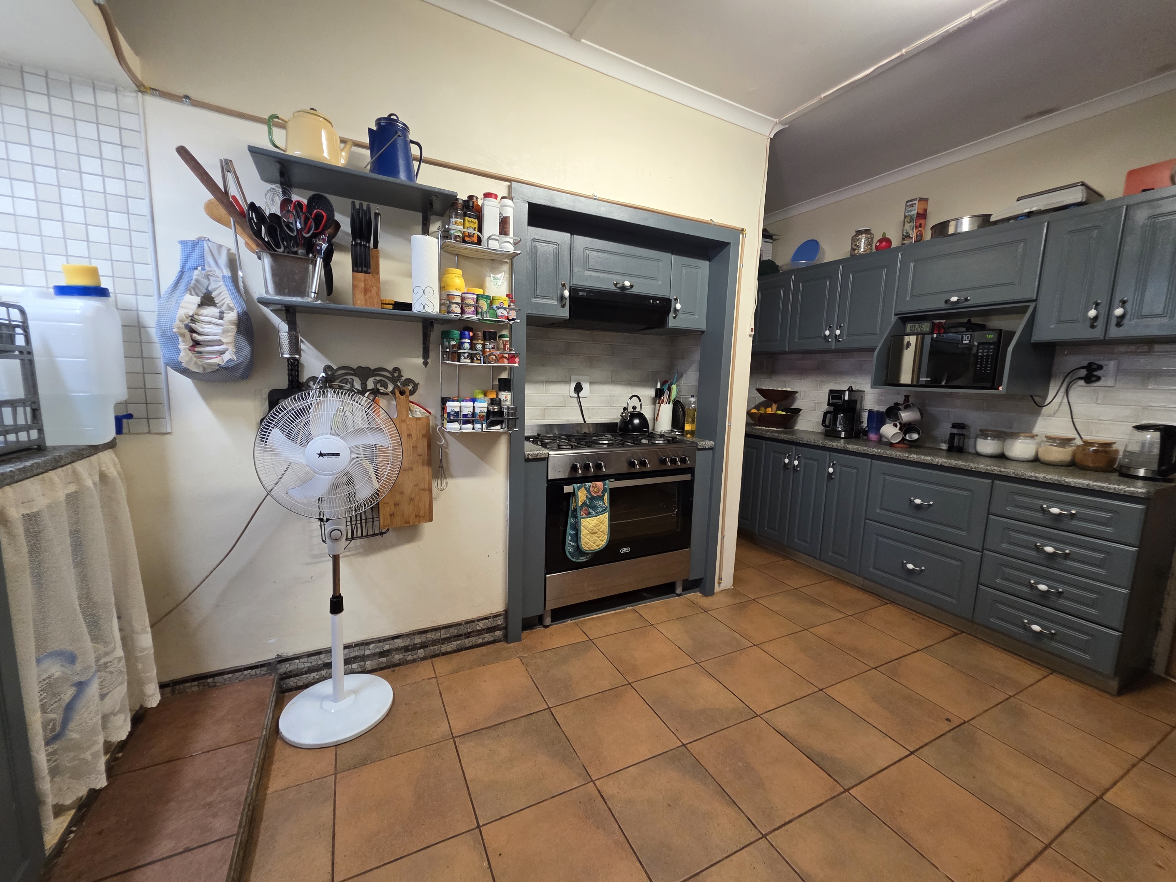 This well-maintained 3-bedroom home is perfectly situated within walking distance of town, offering both convenience and comfort. Each bedroom features built-in cupboards, while the modern bathroom boasts a spacious walk-in shower. The fully fitted kitchen, complete with a gas stove, ensures effortless meal preparation.
