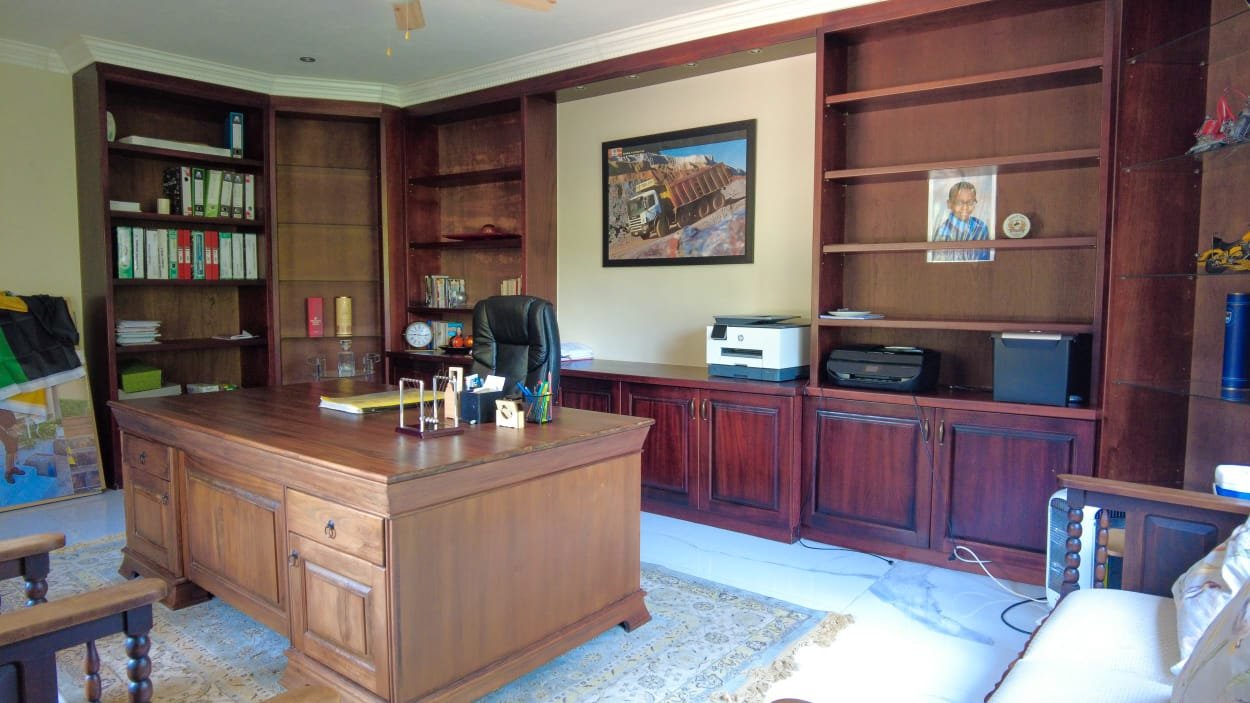 This home has a built In theatre room. It has a beautiful office decked in built in wooden cupboards.