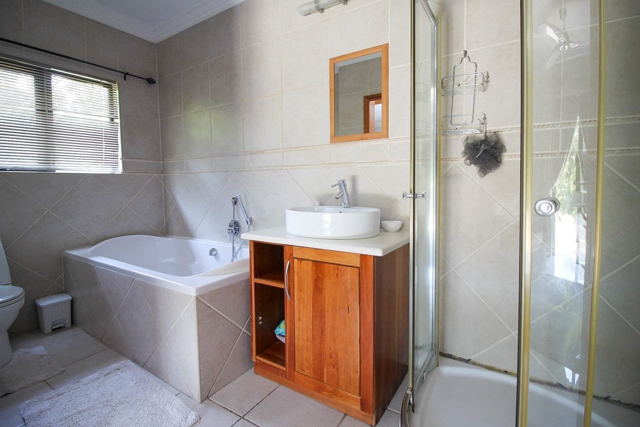 It features 4 en-suite bedrooms, a guest toilet, a wardrobe/storage room, a domestic room, a 1-bedroom flatlet, and a 2-bedroom cottage. The spacious garage accommodates approximately 4 cars. The open-plan kitchen boasts state-of-the-art finishes, gas stoves, and a wine cellar.