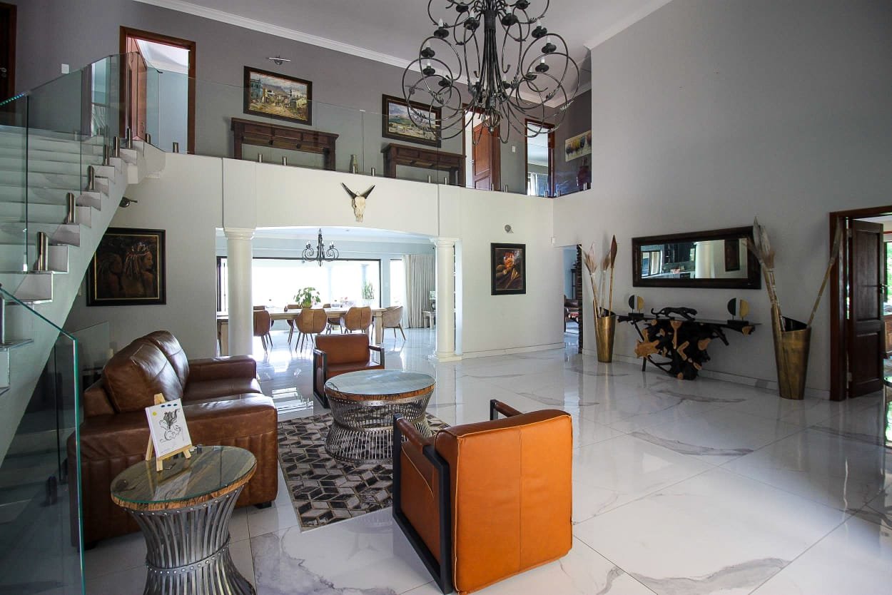 This luxurious home in the prestigious Noordsig Estate offers top-tier security with 24-hour guards and breathtaking views.