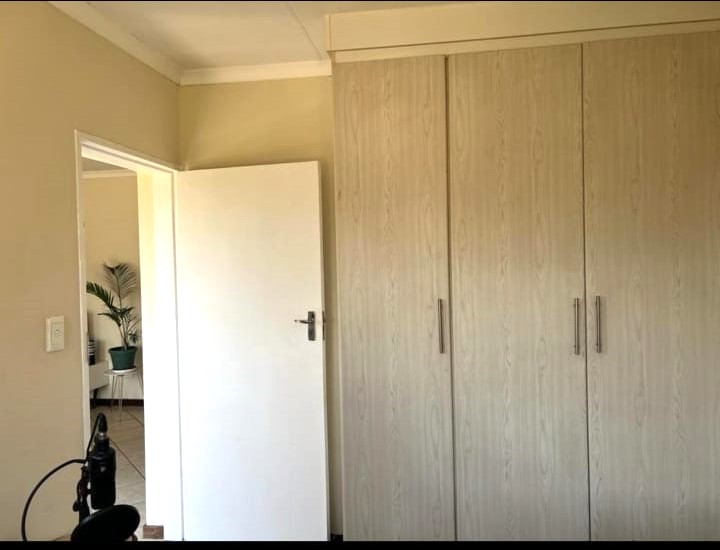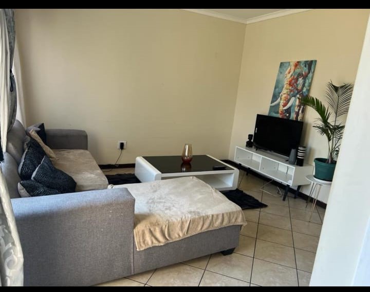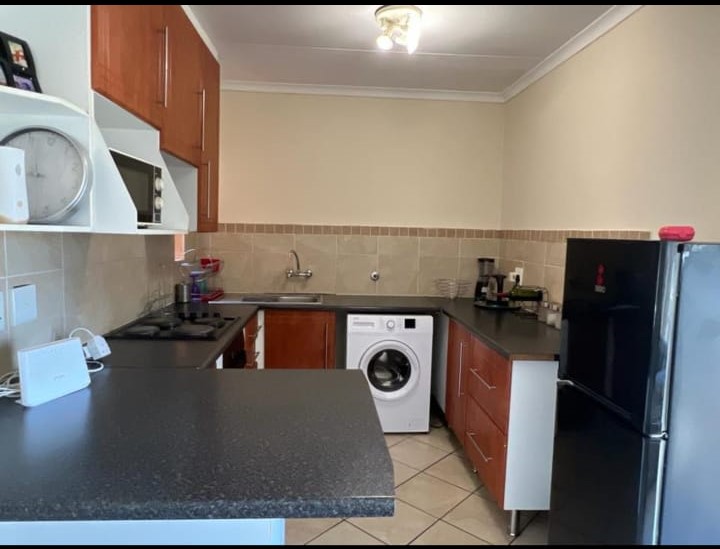 COME HOME TO A COSY APARTMENT, IDEAL FOR THE WORKING CLASS, LOCK UP AND GO OR A START-UP HOME. SAFE AND SECURE 2 BEDS, 1 FULL BATHROOM WITH OPEN PLAN LOUNGE AND KITCHEN WITH SLIDING DOOR ON THE 1ST FLOOR. THE APARTMENT IS VERY CENTRALLY SITUATED CLOSE TO ALL AMENITIES AND THE HIGHWAY TO PRETORIA OR JOHANNESBURG. SAFE PARKING FOR YOUR CAR. AMPLE GROUND FOR KIDS TO PLAY. PRE-AID ELECTRICITY. CALL ME FOR A PRIVATE VIEWING
