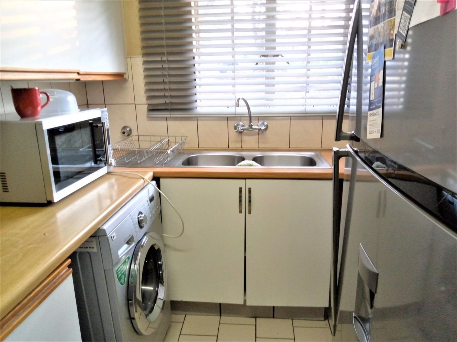 This 2 bed 1 bath unit with a long time reliable neat tenant offers value to potential investors. It will also suit a young couple, a small family or a young executive/professional as a lock up and go. The kitchen has lot of cabinetry, blinds, double sink, electric stove and electric oven plus extractor hood. There is space for a washing machine/dishwasher. The kitchen leads to an open plan dining and the lounge which opens up to the patio in front of a garden. There are 2 bedrooms with built in cupboards that share the full bathroom which has a toilet, a basin , a bath tub and a shower. The covered parking is directly opposite the unit. The complex is not pet friendly.