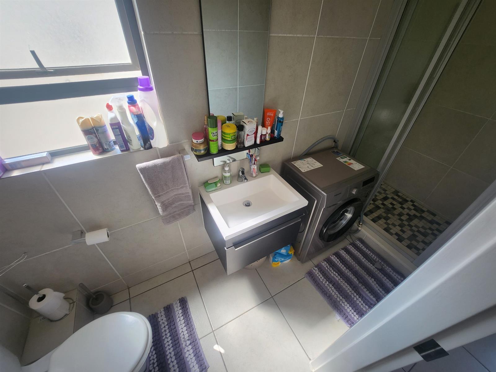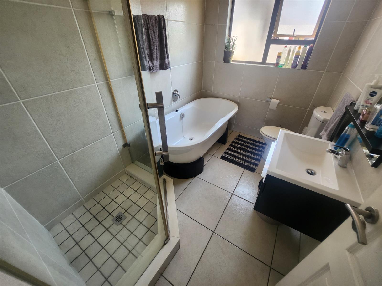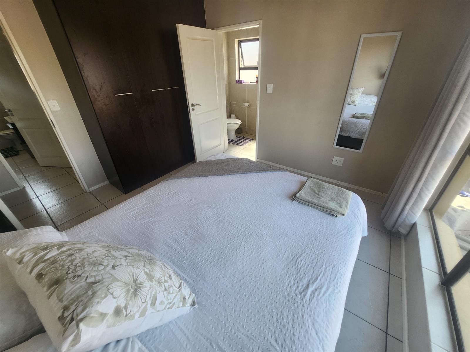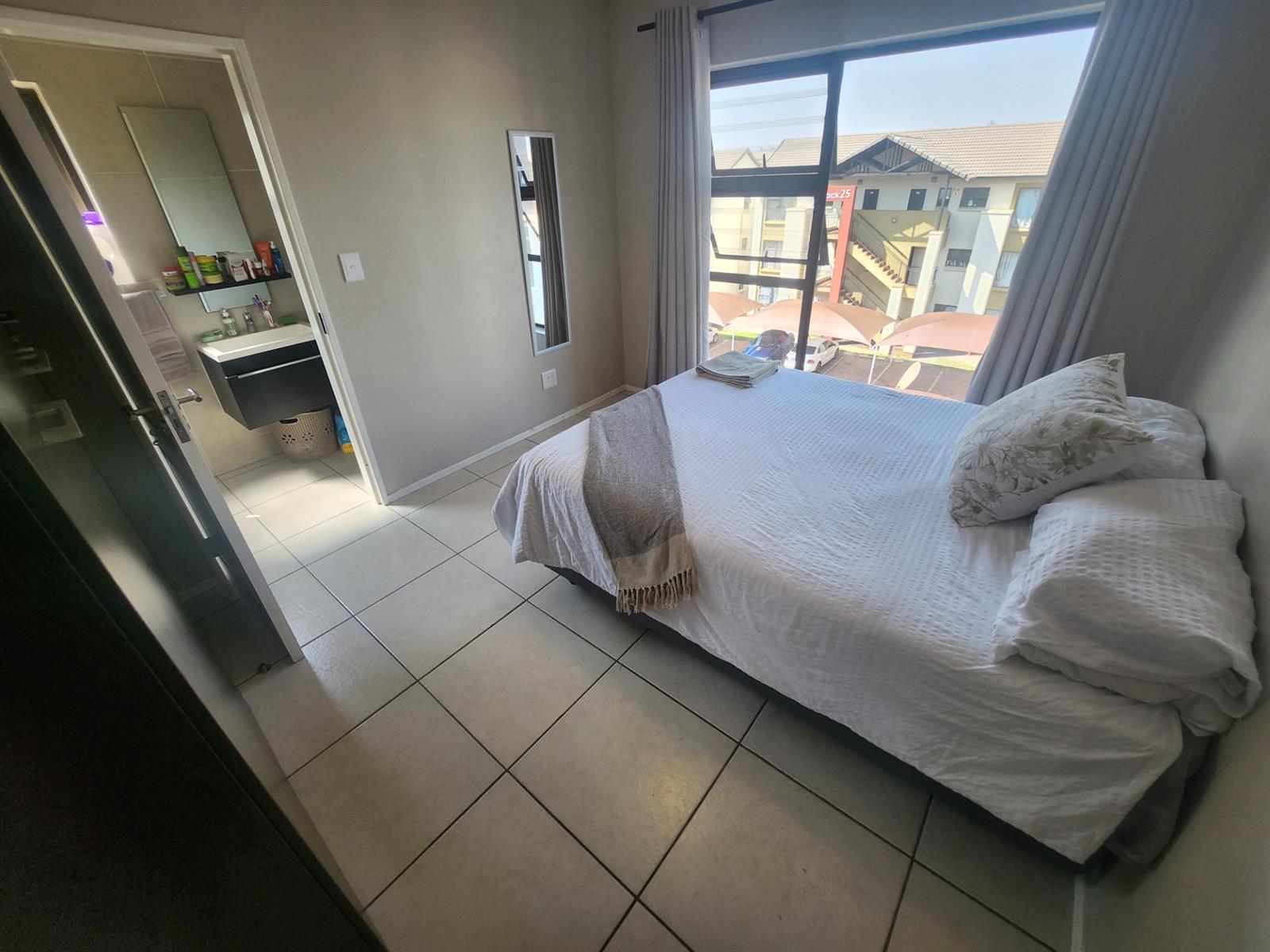 The generously sized master bedroom offers comfort and privacy, complete with built-in cupboards and a modern en-suite bathroom with shower. The second bedroom fits a queen-sized bed and is serviced by a beautifully finished full bathroom with both a bath and shower.
