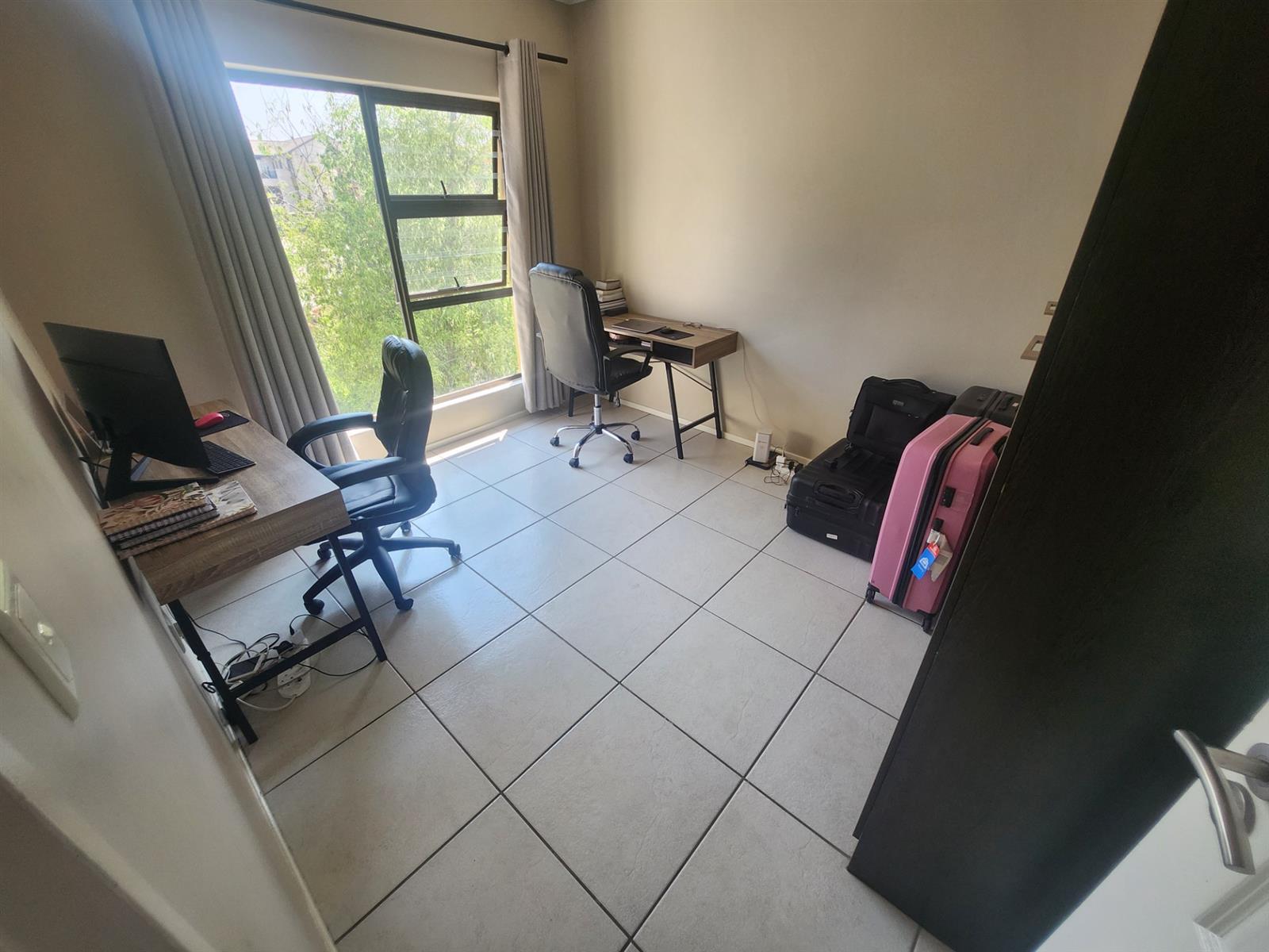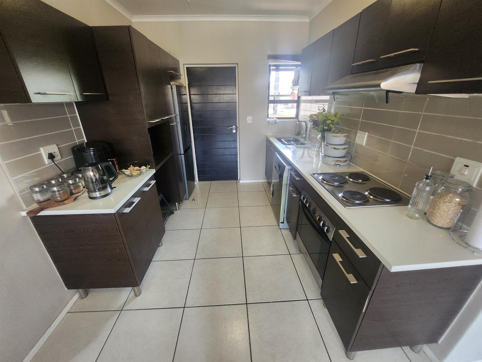 Tiled throughout and bathed in natural light, the home features a sleek open-plan kitchen fitted with Caesarstone countertops, ample cupboard space, and room for an appliance plus fridge. A second wet appliance can be accommodated in the main bathroom, making everyday living a breeze.