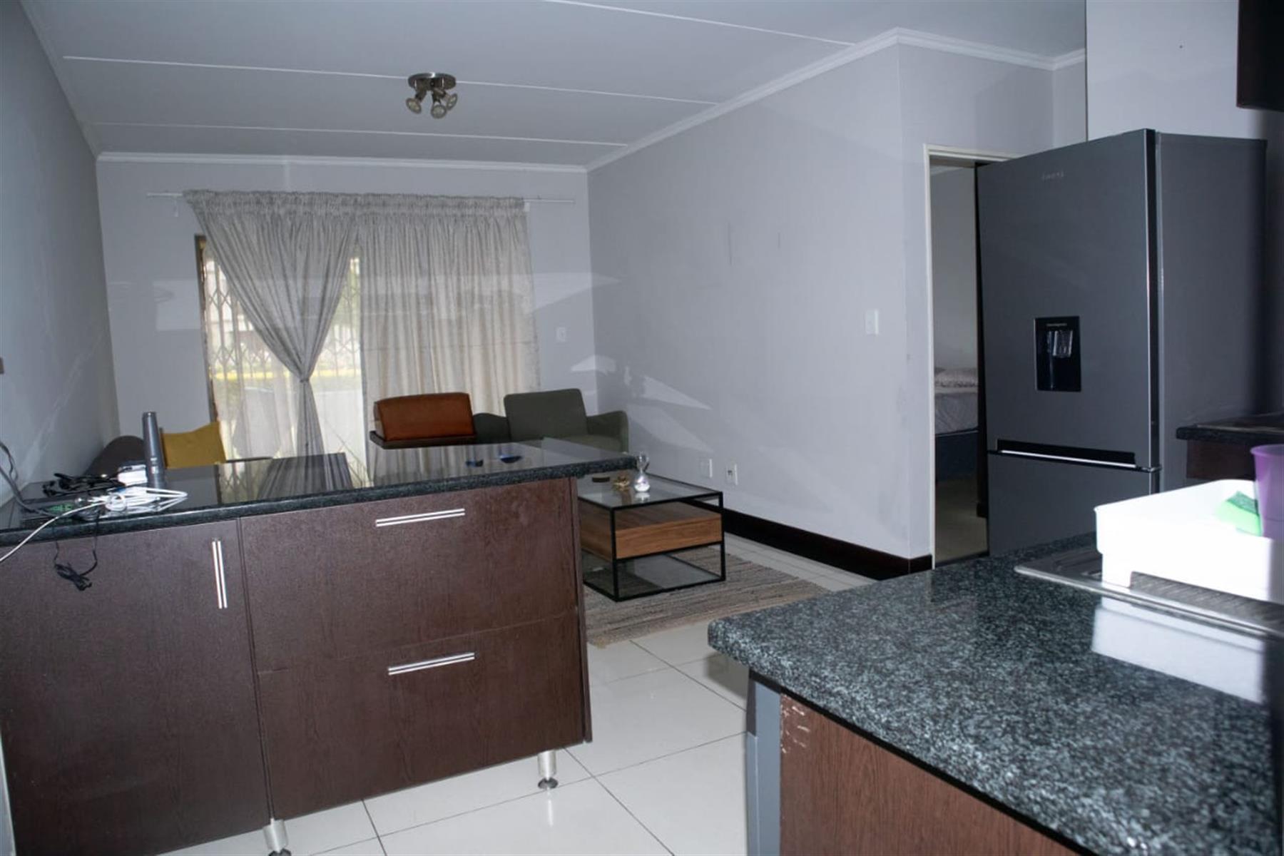 Discover contemporary living in this spacious Ground-floor 1-bedroom apartment, ideal for first-time buyers, small families, or investors seeking excellent value in a secure and well-managed estate. This stylish home features an open-plan living and dining area that flows effortlessly into a private patio with a garden view — perfect for relaxing or entertaining. The modern kitchen is fitted with granite countertops, a glass hob, under-counter oven, and a breakfast nook, offering both functionality and elegance.