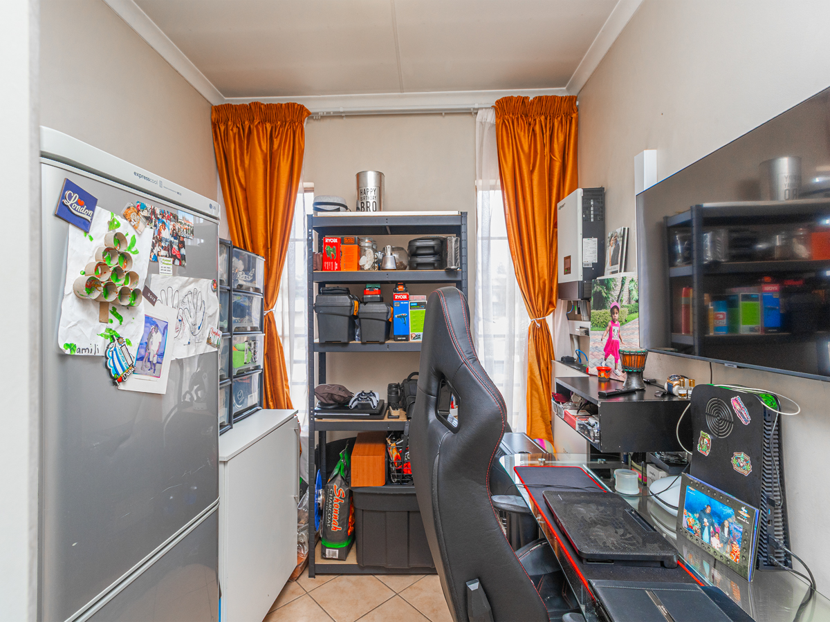The open-plan lounge and kitchen create a bright, inviting space where you can cook, relax, or entertain with ease. The kitchen comes fitted with a gas stove, making mealtimes simple even during load-shedding, and the inverter system ensures your lights and essentials stay on when you need them most.