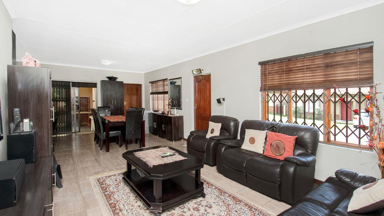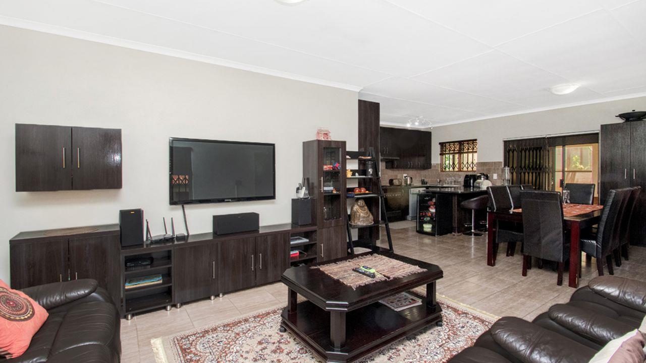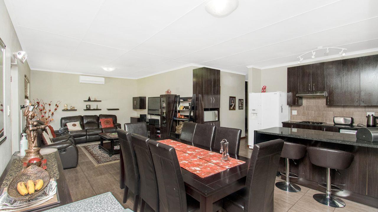 This property is a full title property, nestled in a safe and secure estate, with 24/hrs. security and access control. This stunning home offers modern open-plan living, featuring a spacious kitchen, dining area, and lounge, perfect for family living and entertaining.