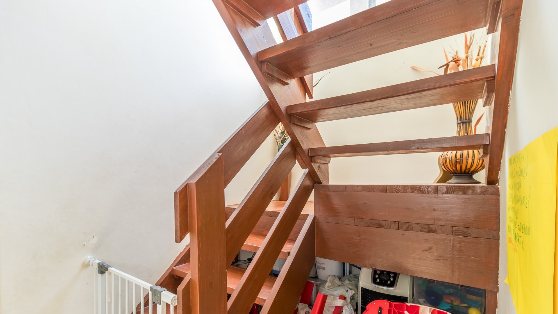 This house boast 3 bedrooms, the main bedroom has an en-suite bathroom, which is located upstairs along with the second bedroom, and the third bedroom on the ground floor.