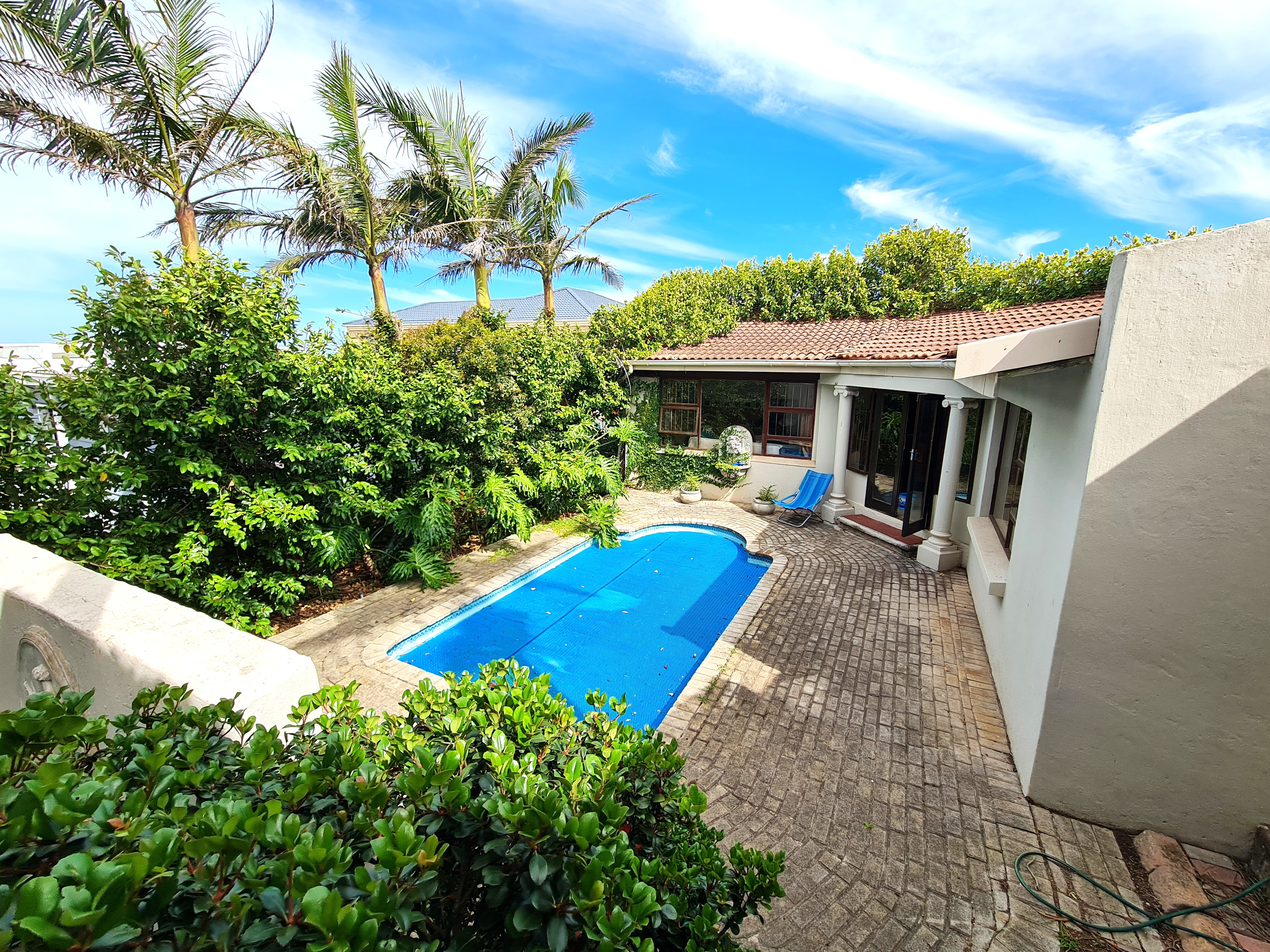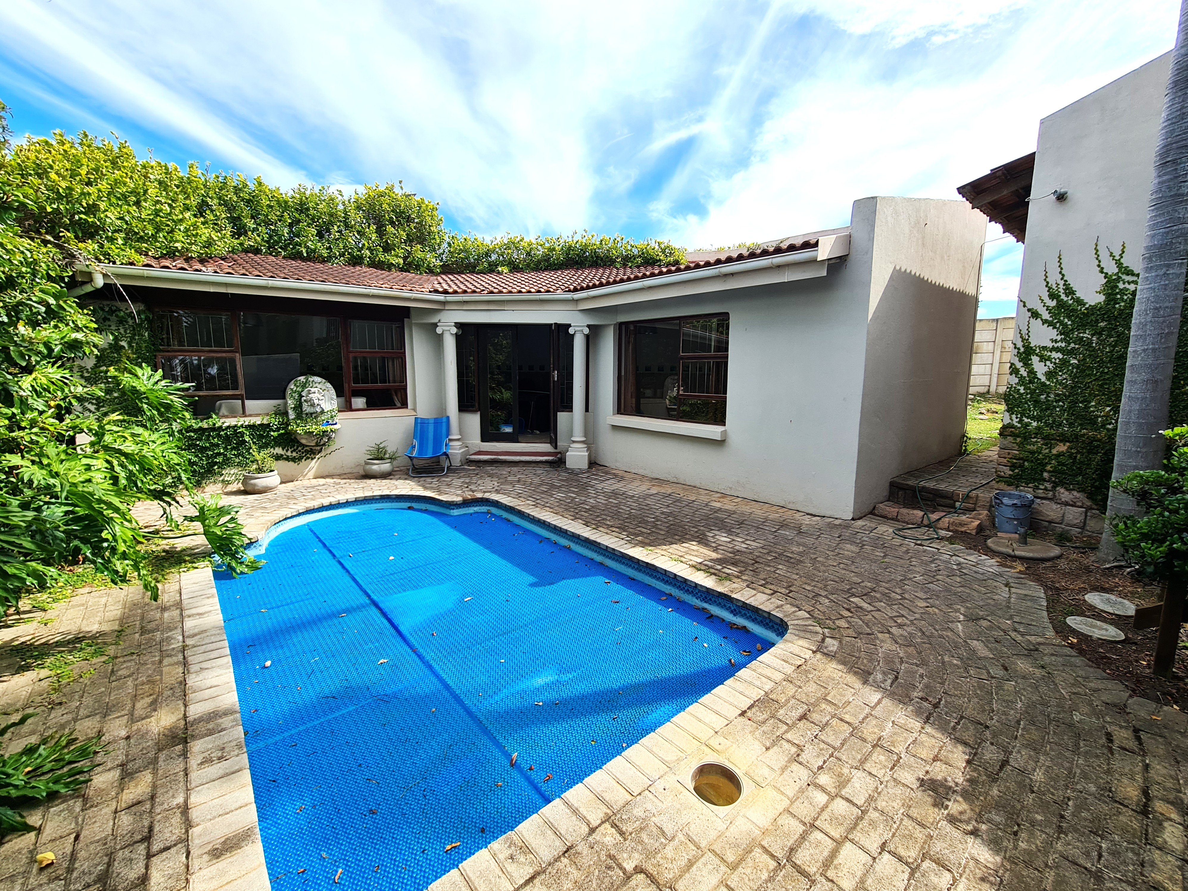 A swimming pool with pool house, separate flatlet, triple garages, and parking for extra vehicles.